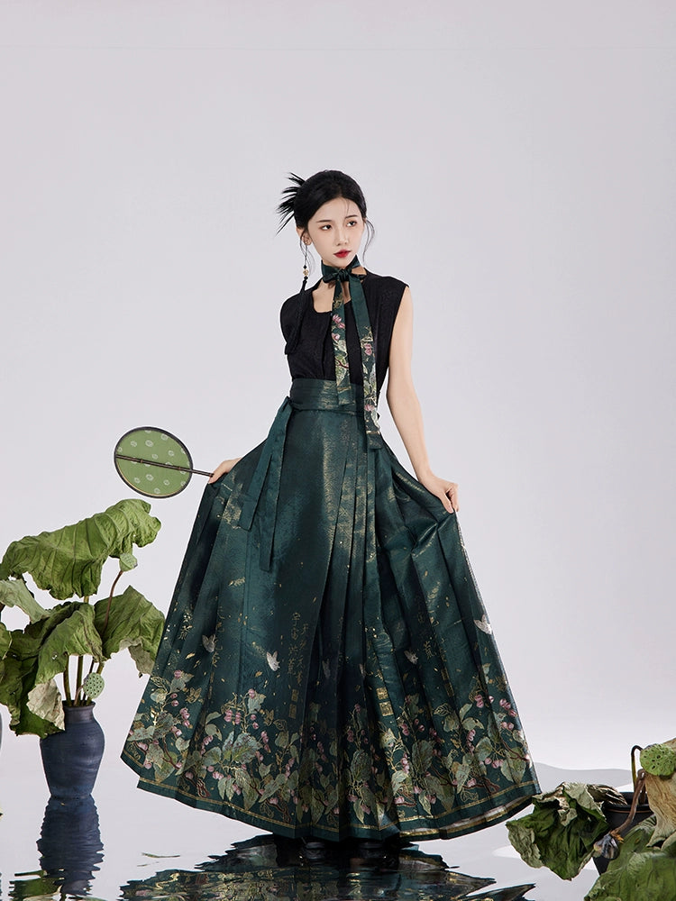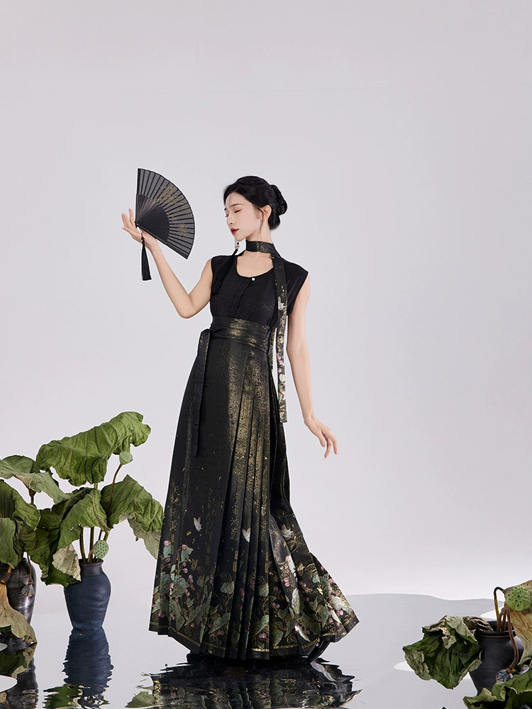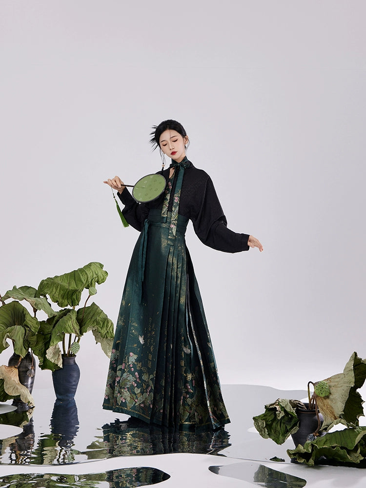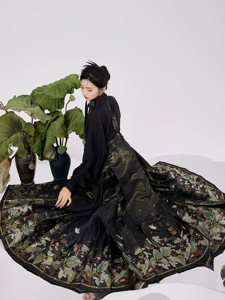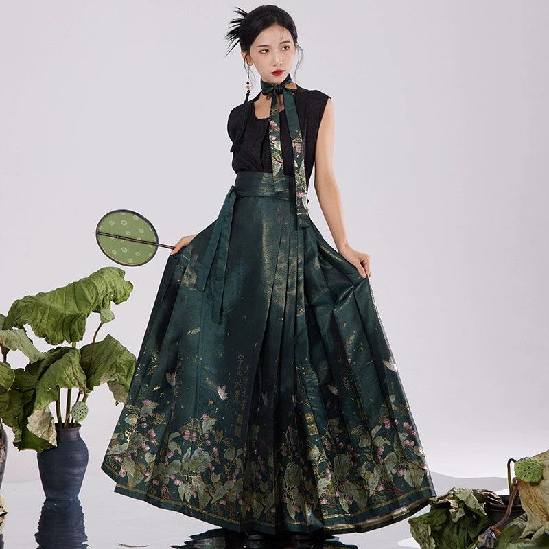 Underskirt: Upper Underskirt And Lower Skirt, Leading To The Right Collar. As The Main Form Of Hanfu, The Details Of The Underskirt Have Been Changing. Some Have A Deep Cross-Collar To The Armpits, Very Wide Sleeve Edges, The Base Of The Sleeves Is Wider Than The Cuffs, And A Waistline; Some Have A Shallow Cross-Collar, With The Base Of The Sleeves And The Width Of The Cuffs Being The Same. , Straight Sleeves With Narrow Sleeve Edges. In Addition, There Are Chest-Length Underskirts, Which Are A Style Of Underskirts Based On The Position Of The Tie. The Skirt And Lace Are Tied Above The Chest. The Hem Is Drooping And Elegant. It Can Be Divided Into Double-Breasted And Cross-Collared Styles, With The Majority Of The Skirts Being Double-Breasted.