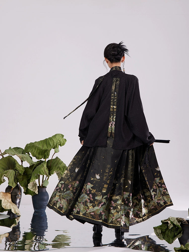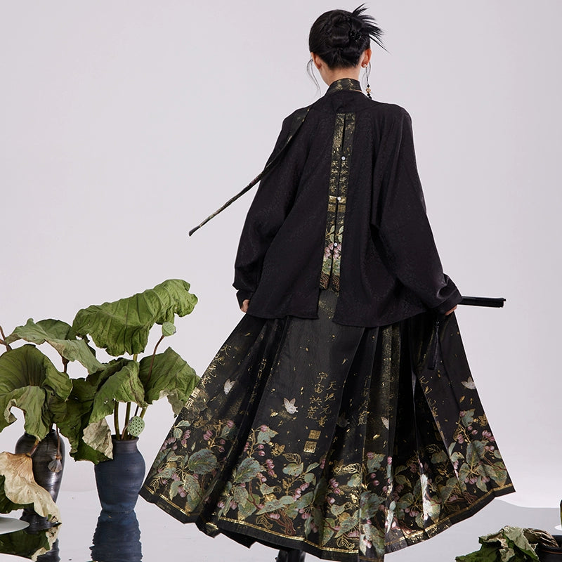 Jacket Skirt (Shirt Skirt): A Jacket With A Skirt Underneath, A Long-Sleeved Jacket With A Cross-Collar And Right Gusset. Most Of The Clothes Have Pipa Sleeves That Close The Cuffs. The Lower Skirt Is Usually Paired With A Horse-Face Pleated Skirt Or An Ordinary Pleated Skirt.