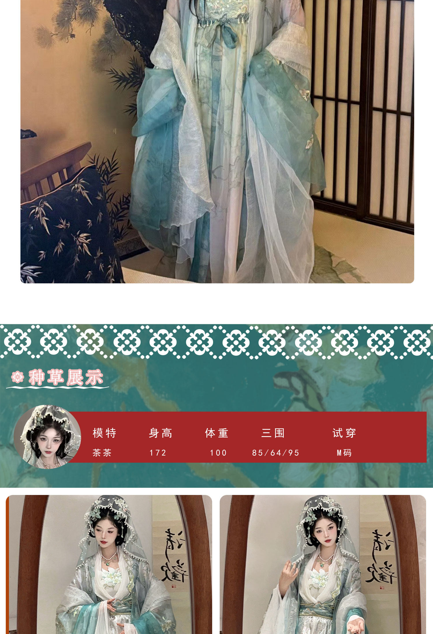 Hanfu is a handmade product, not a mass-produced product in a garment factory. In theory, there are no two completely identical Hanfu. The product details page only shows the shape of this Hanfu, especially the embroidery on the Hanfu. It is impossible for tailors to make it 100% the same. Consumers who cannot accept this please do not buy it