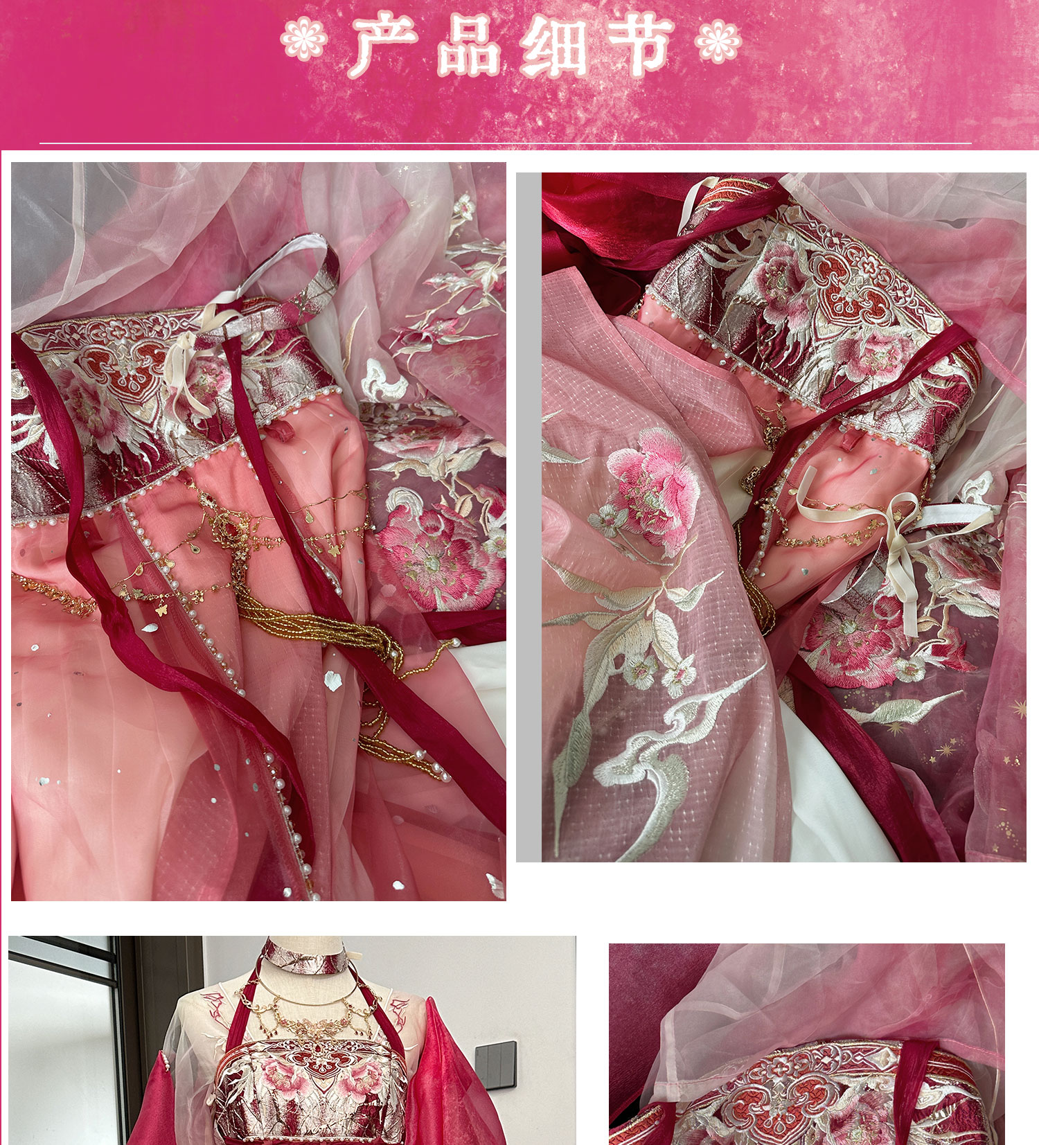 Hanfu is a handmade product, not a mass-produced product in a garment factory. In theory, there are no two completely identical Hanfu. The product details page only shows the shape of this Hanfu, especially the embroidery on the Hanfu. It is impossible for tailors to make it 100% the same. Consumers who cannot accept this please do not buy it