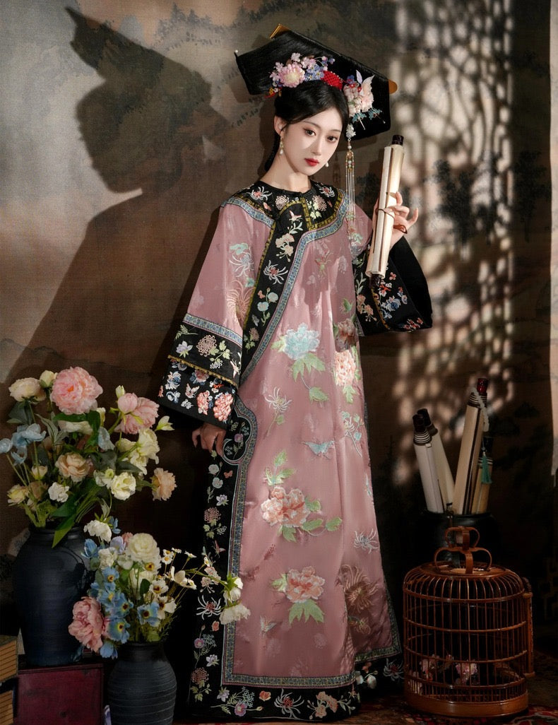 細部まで王女の優雅さを醸し出す、魅惑的な清朝スタイルの漢服ドレス。清朝時代の満州族文化の独特の魅力にインスピレーションを得たこのドレスは、あなたを時を超えた旅へと誘い、歴史の魅力を体験させます。高品質のポリエステル生地で作られたこのドレスは、軽量で快適で通気性があり、春夏の着用に最適です。