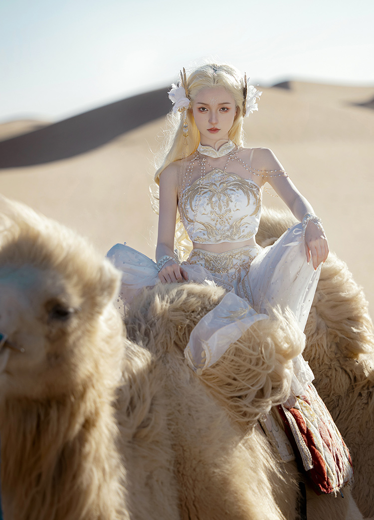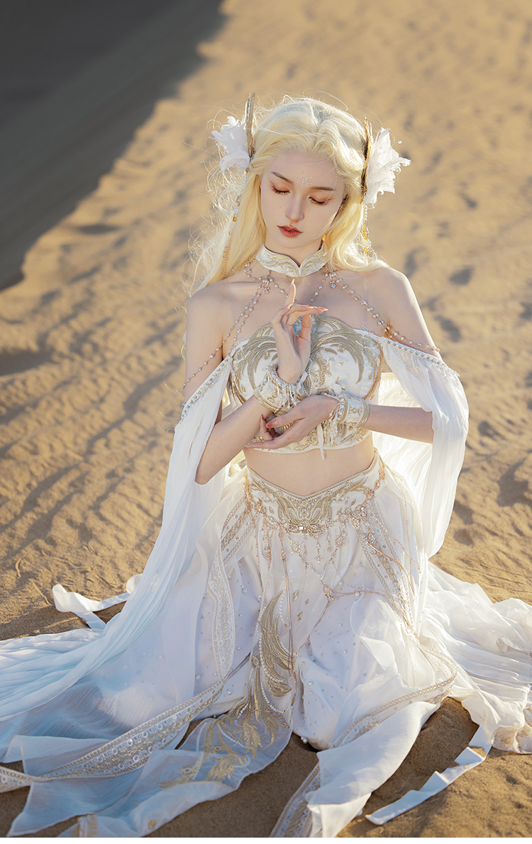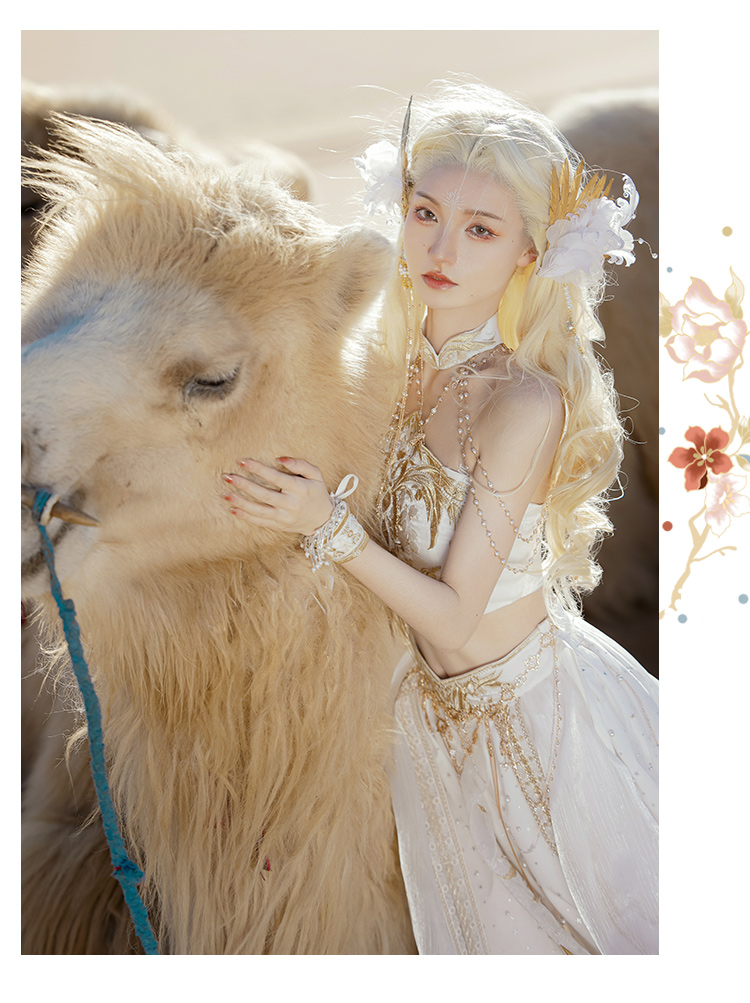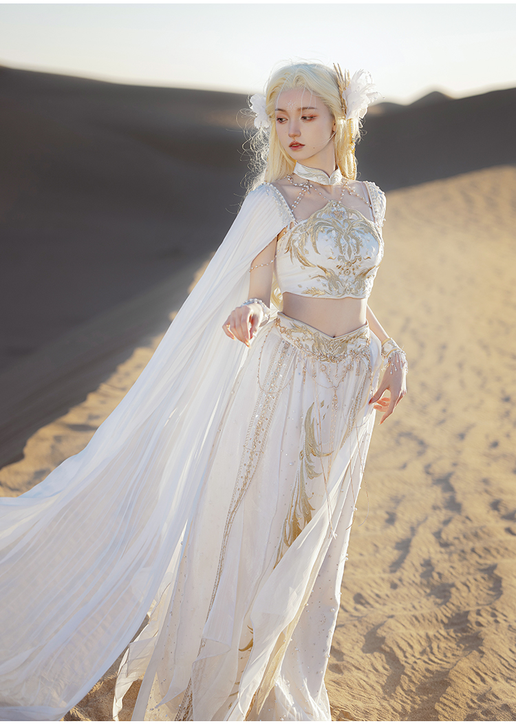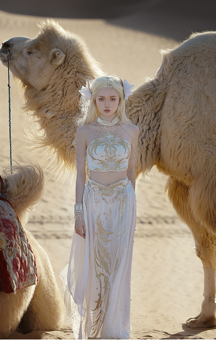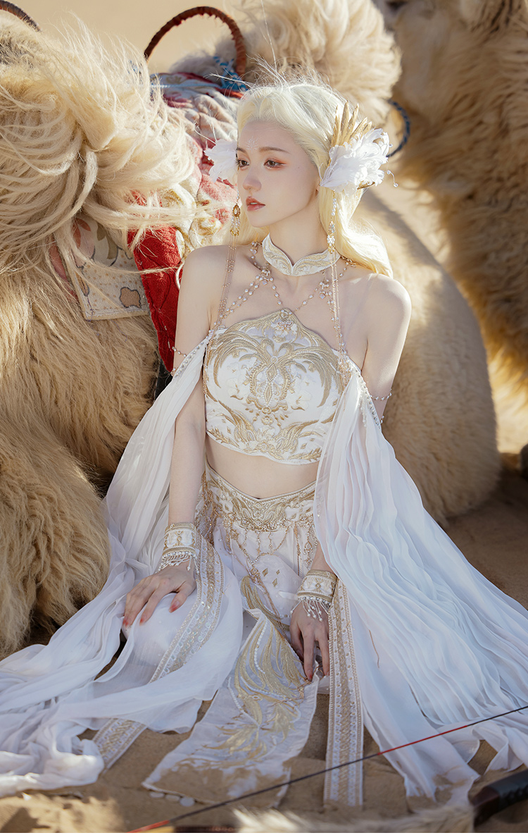 Step into the enchanting world of the ancient Silk Road and experience the fusion of Eastern and Western cultures with our Original Exotic Series Embroidered Dunhuang Flying Apsaras Western Style Hanfu Set. This exquisite ensemble captures the spirit of traditional and innovative design, inspired by the graceful flying apsaras depicted in Dunhuang murals.