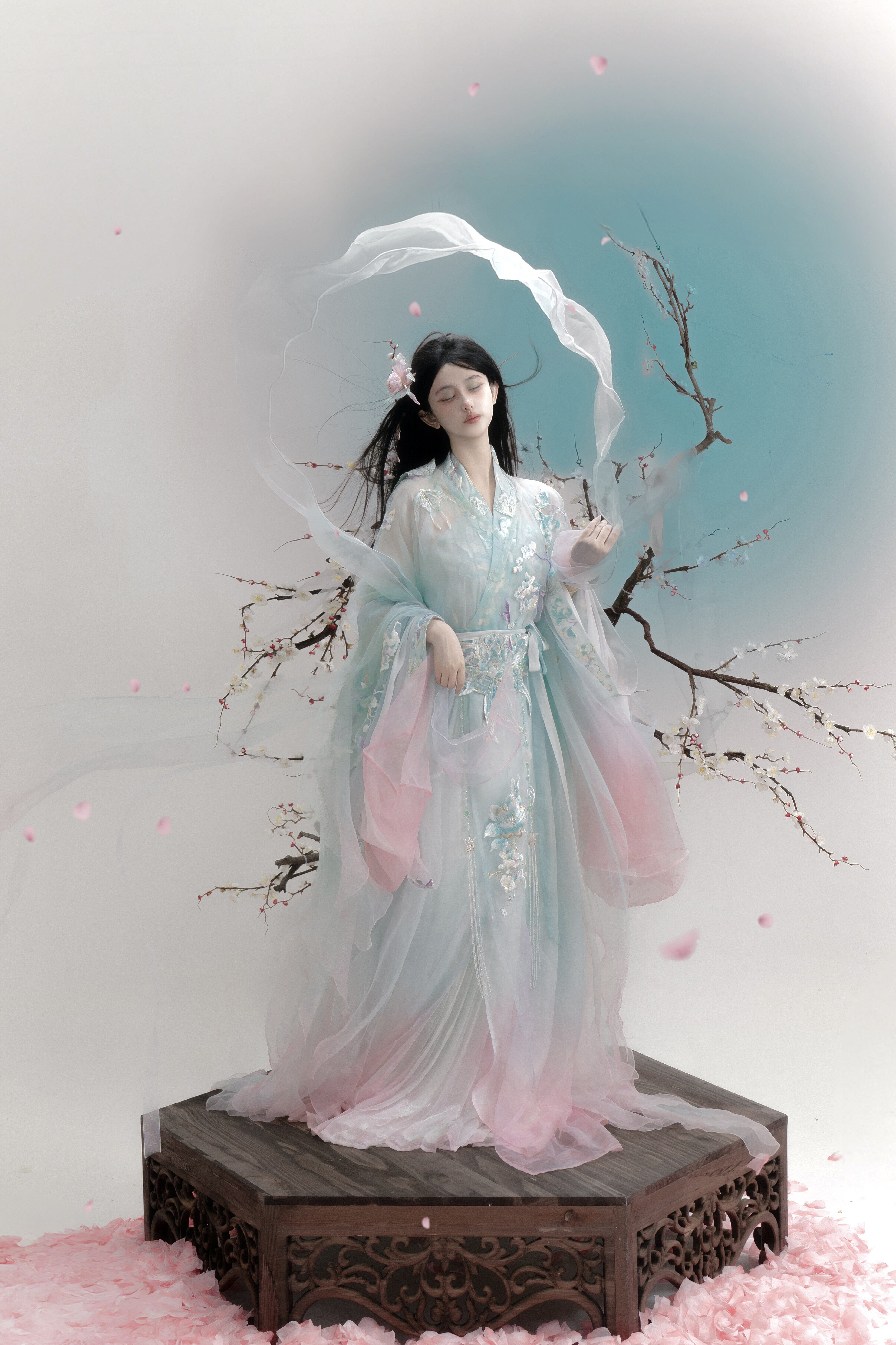 Embroidered Hanfu Refers To A Kind Of Clothing That Is Made On The Basis Of Traditional Hanfu Using High-End Craftsmanship And Heavy Embroidery Techniques. This Kind Of Hanfu Not Only Pays Attention To The Fineness And Complexity Of Embroidery, But Also Emphasizes The Overall Sense Of Design And Art.