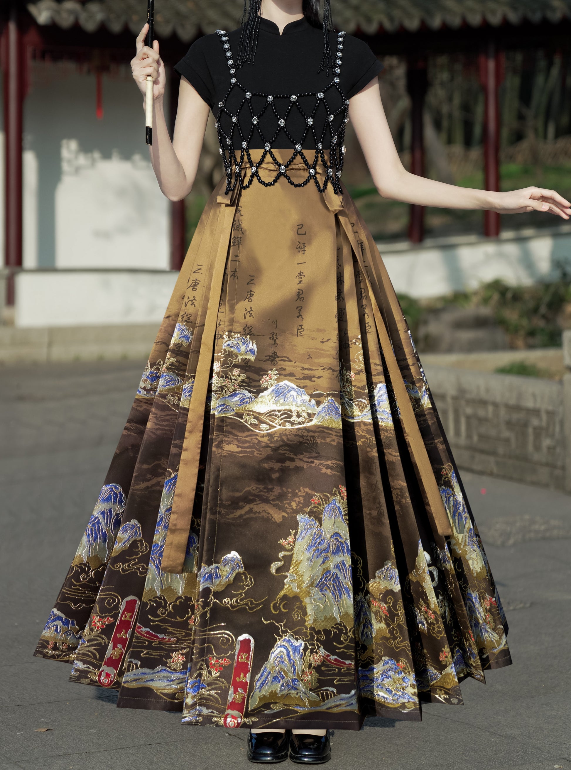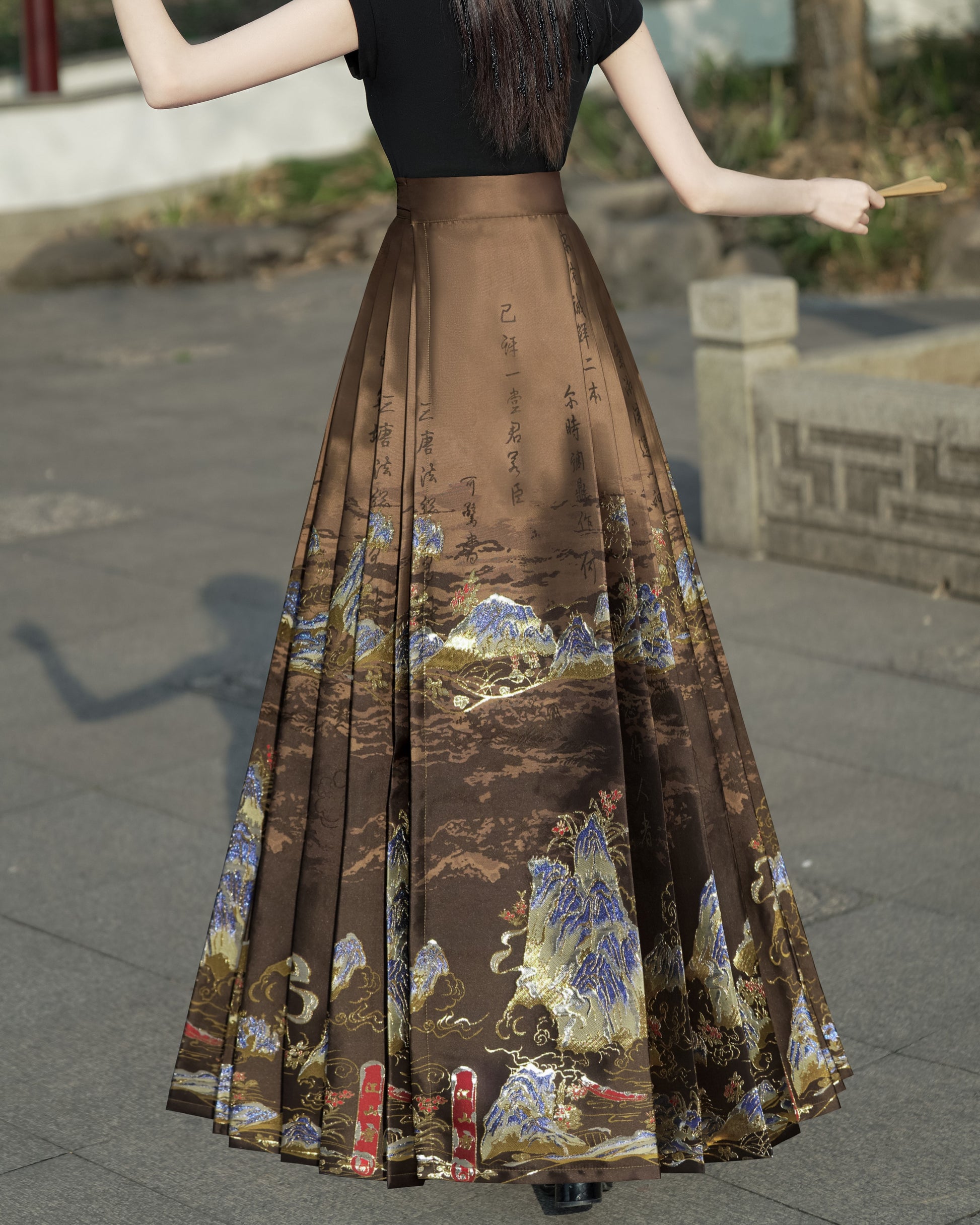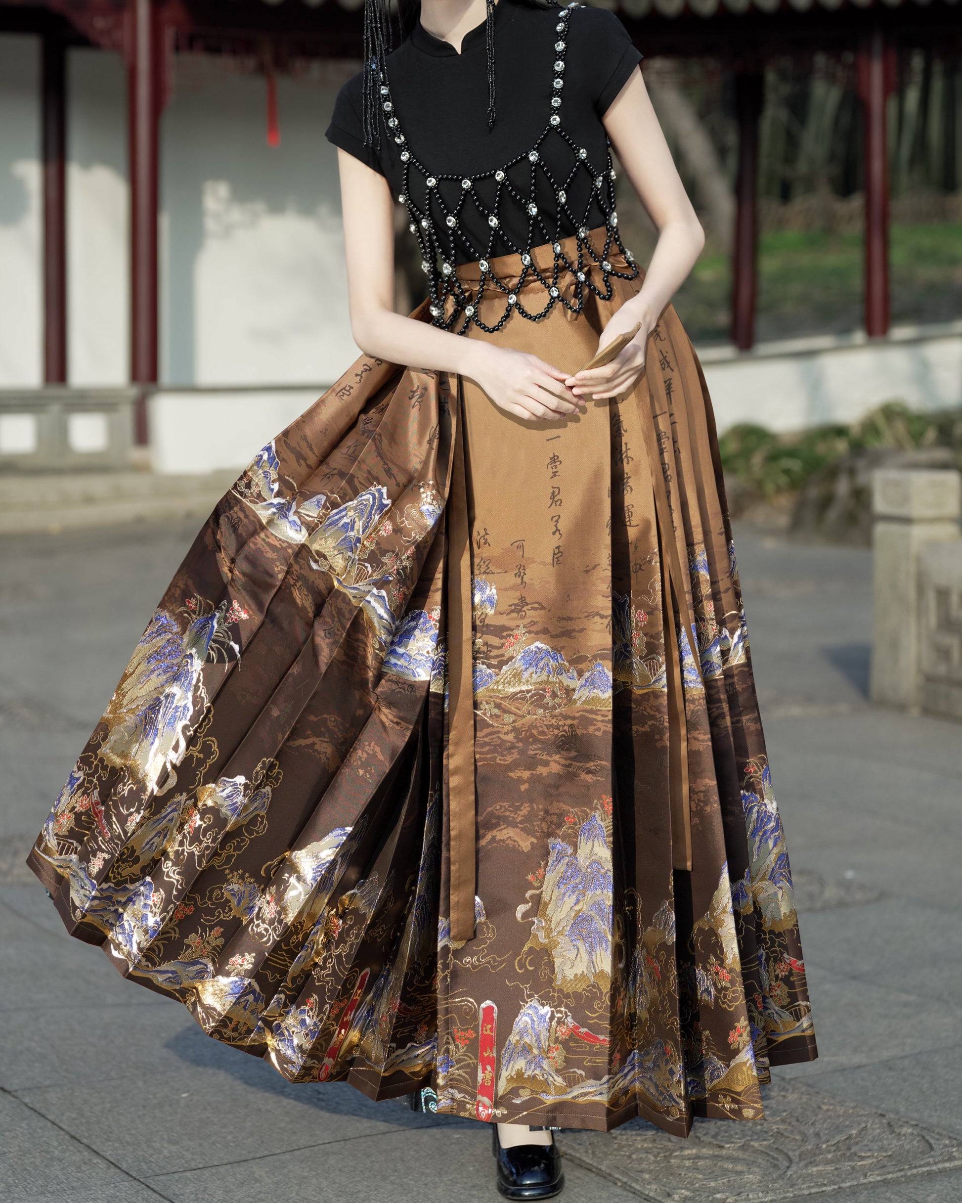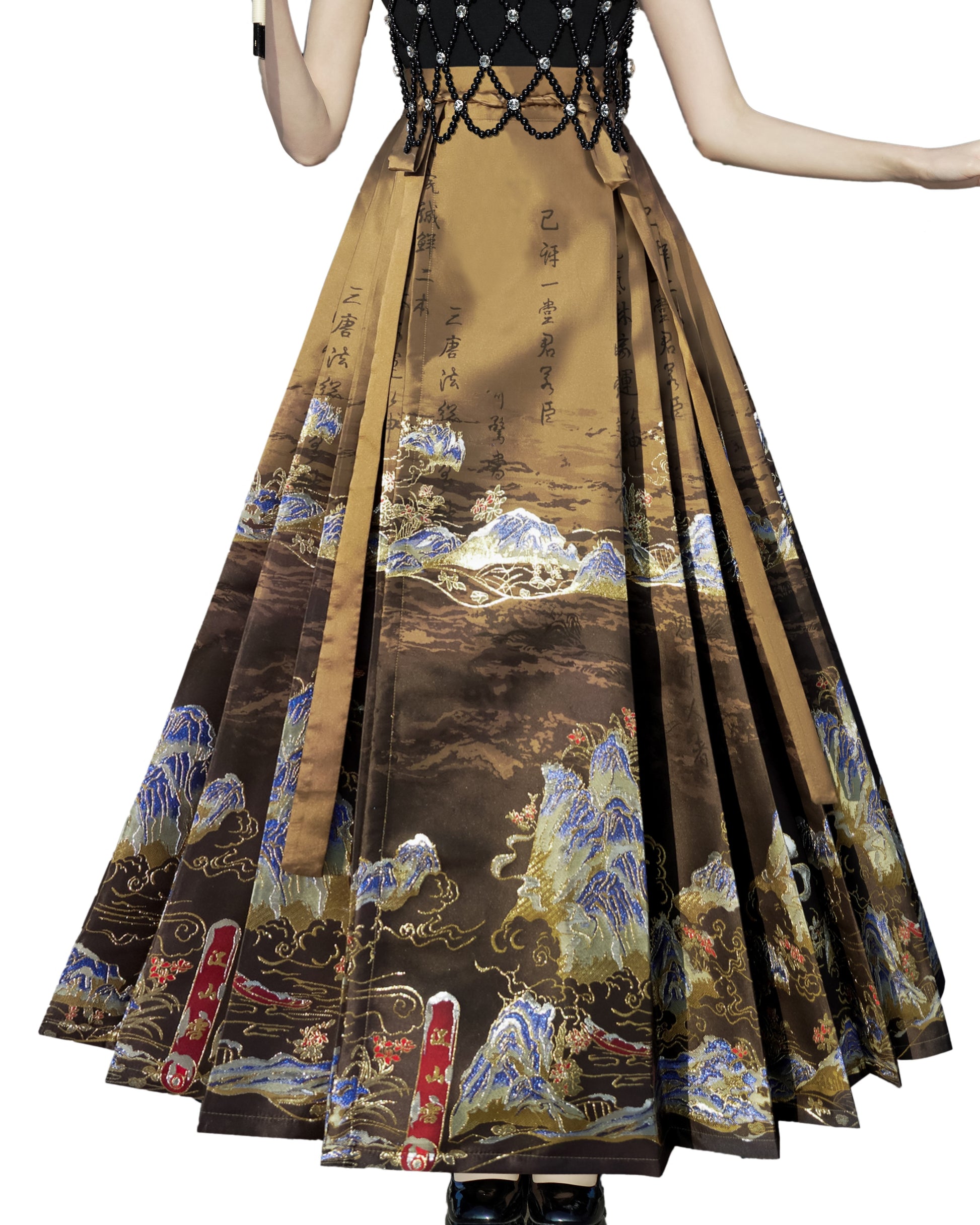Horse Face High Waist Pleated Hanfu Qipao Cheongsam Dress Skirt, MaMianQun gifts for women 2024 #12138snow