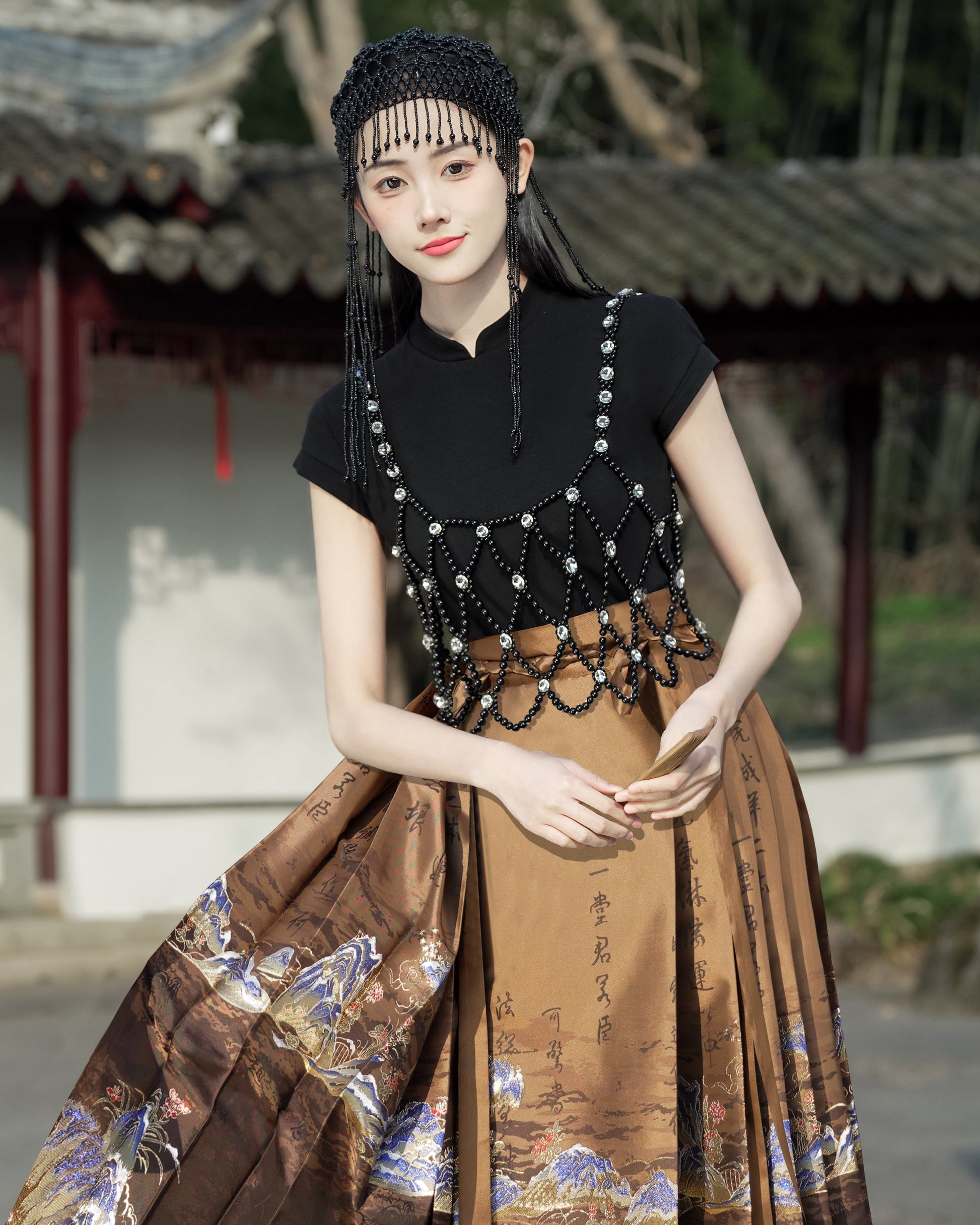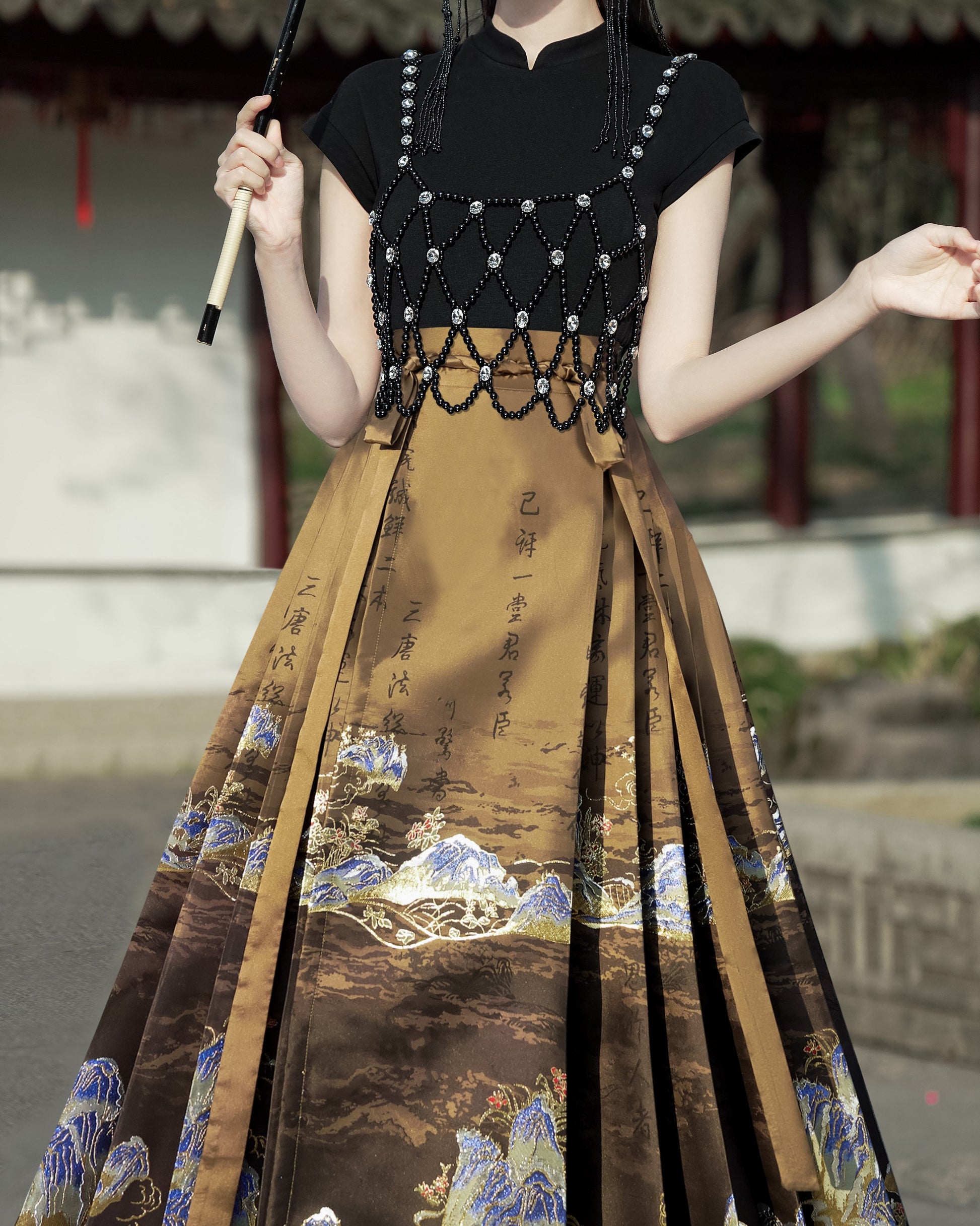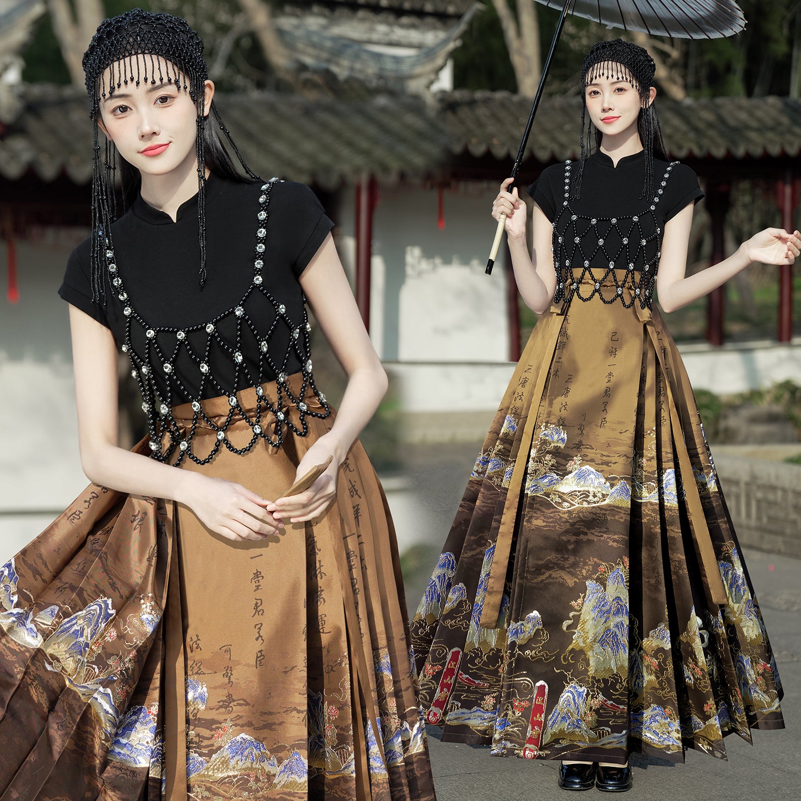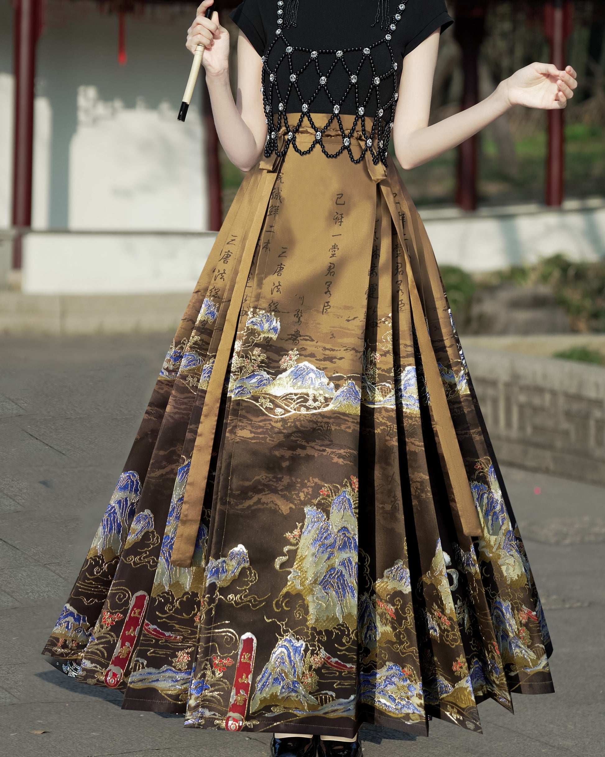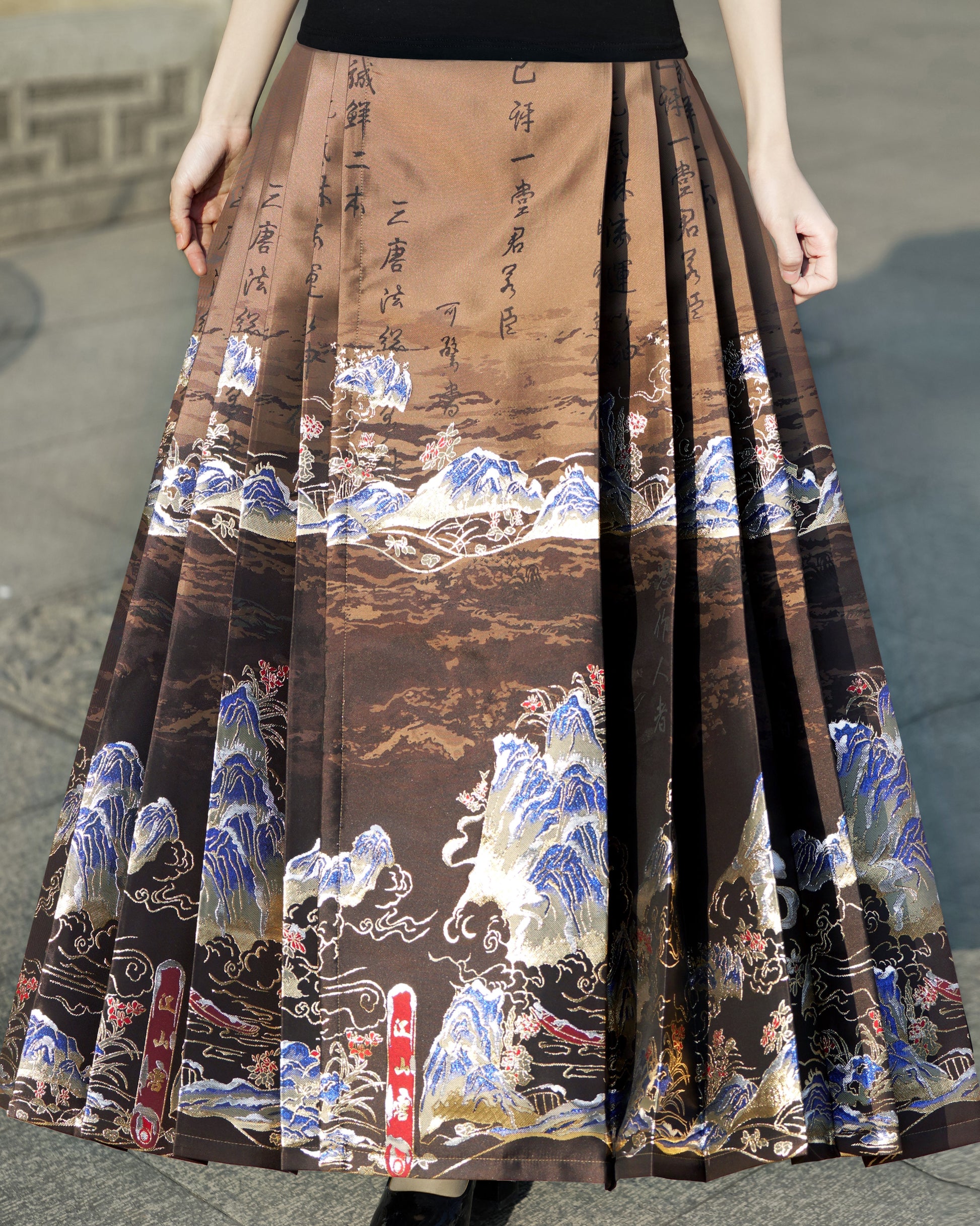 Horse Face High Waist Pleated Hanfu Qipao Cheongsam Dress Skirt, MaMianQun gifts for women 2024 #12138snow