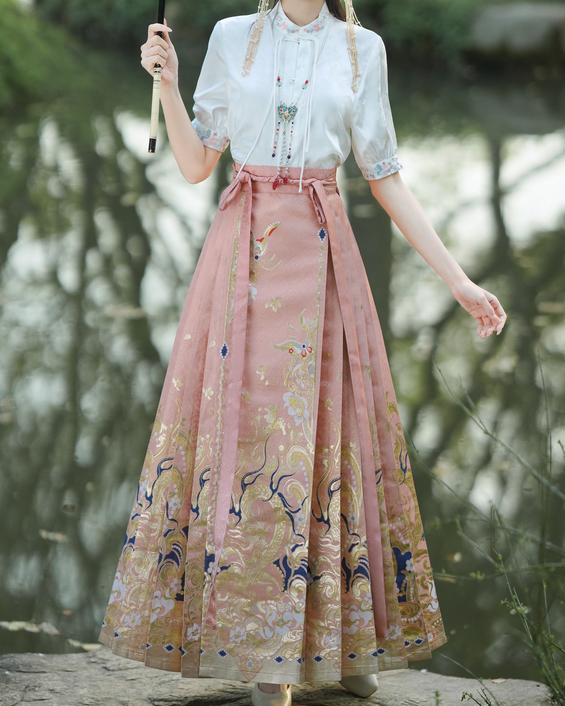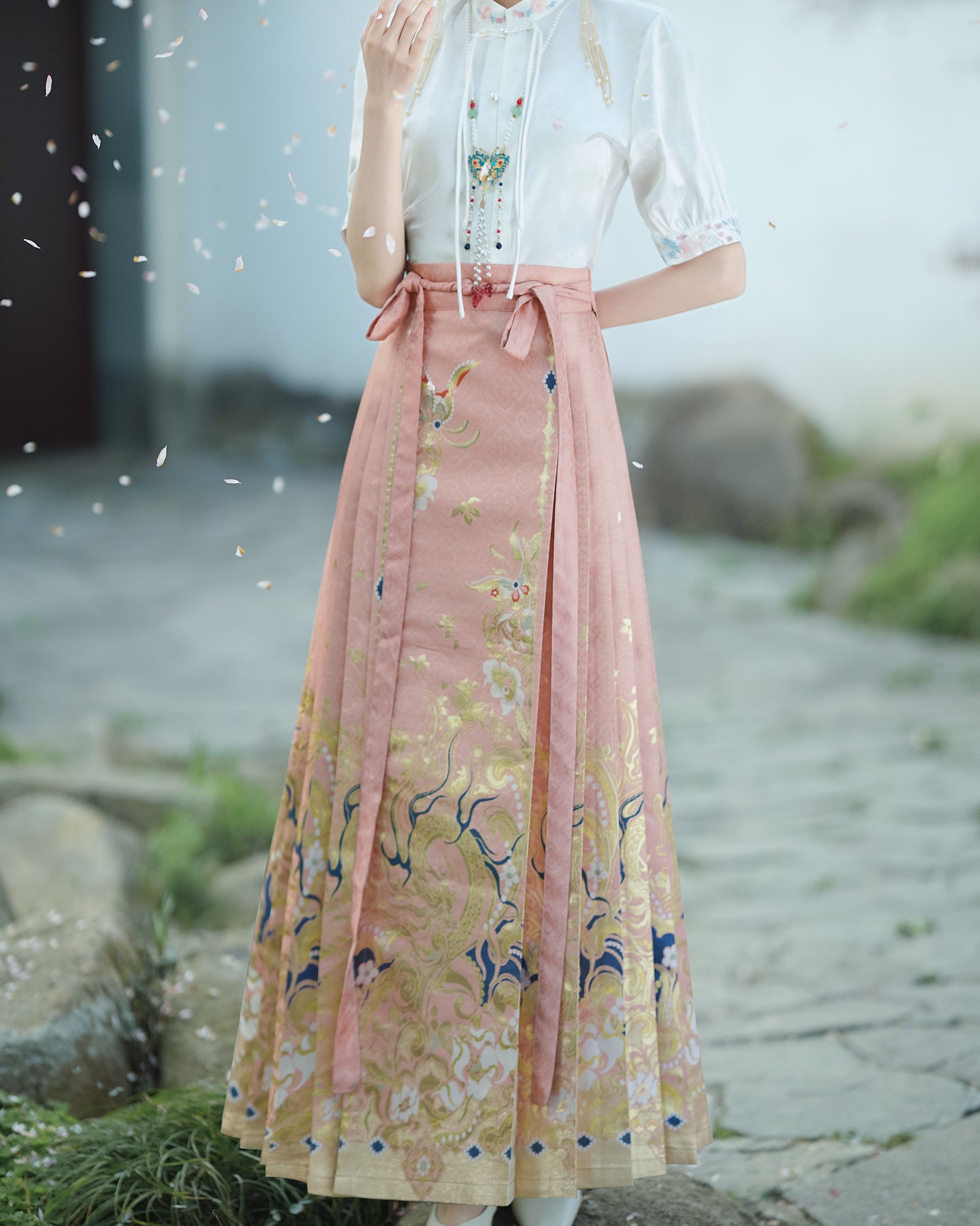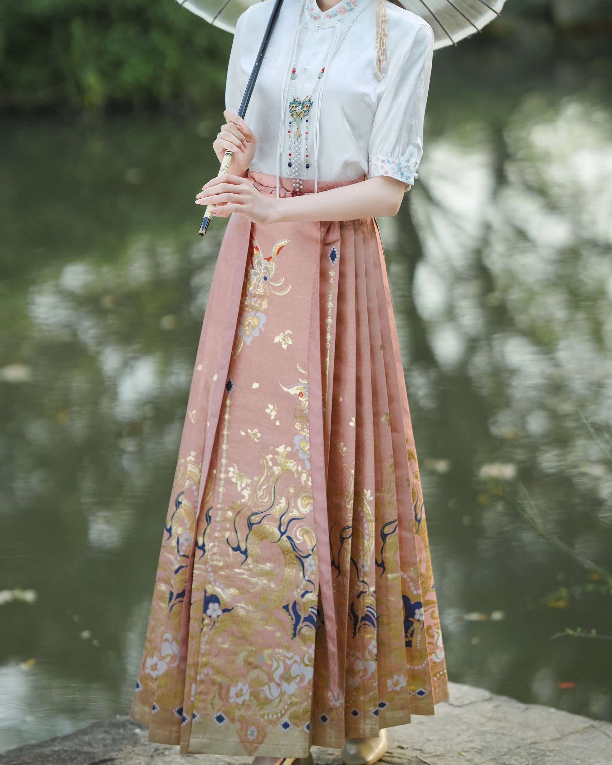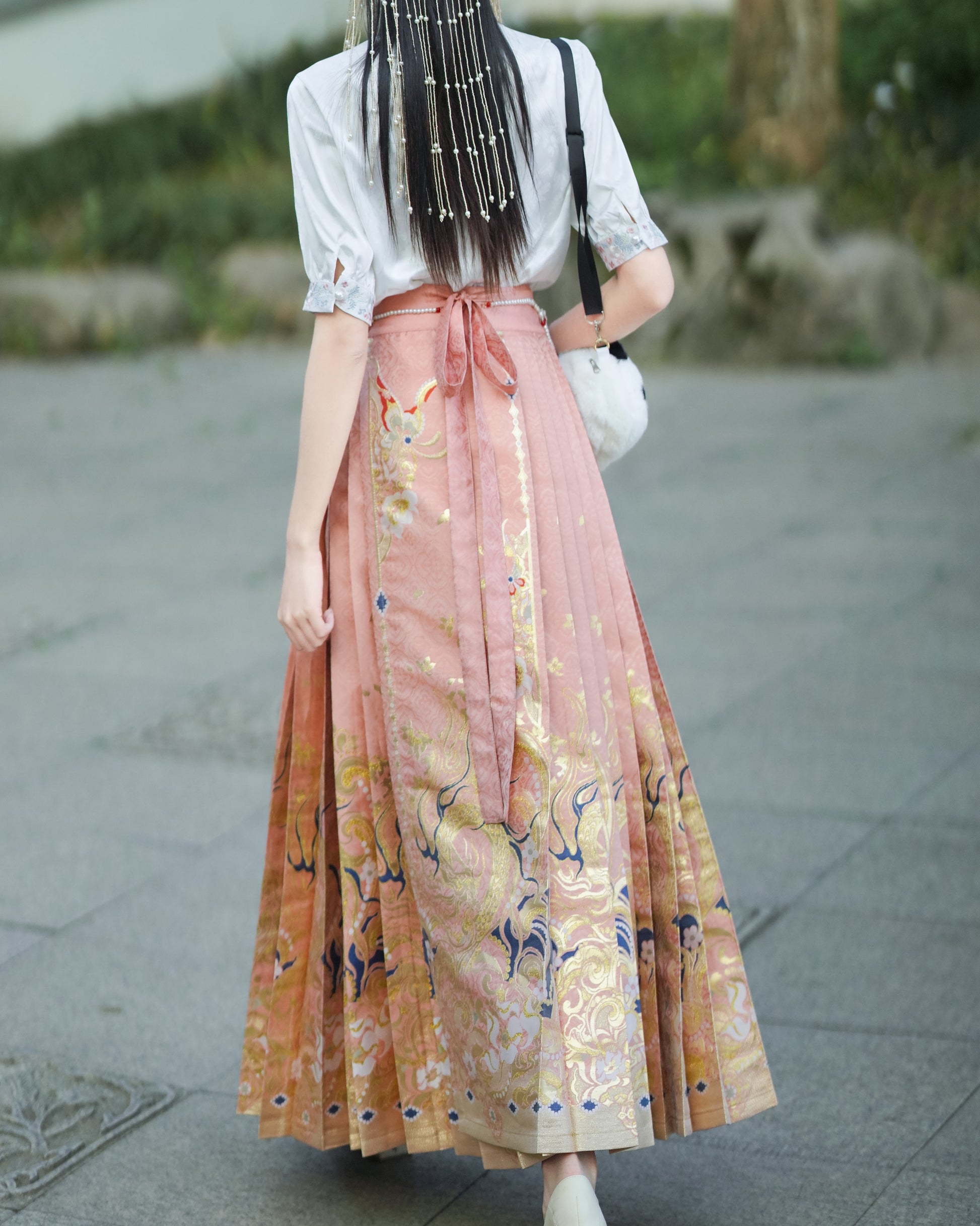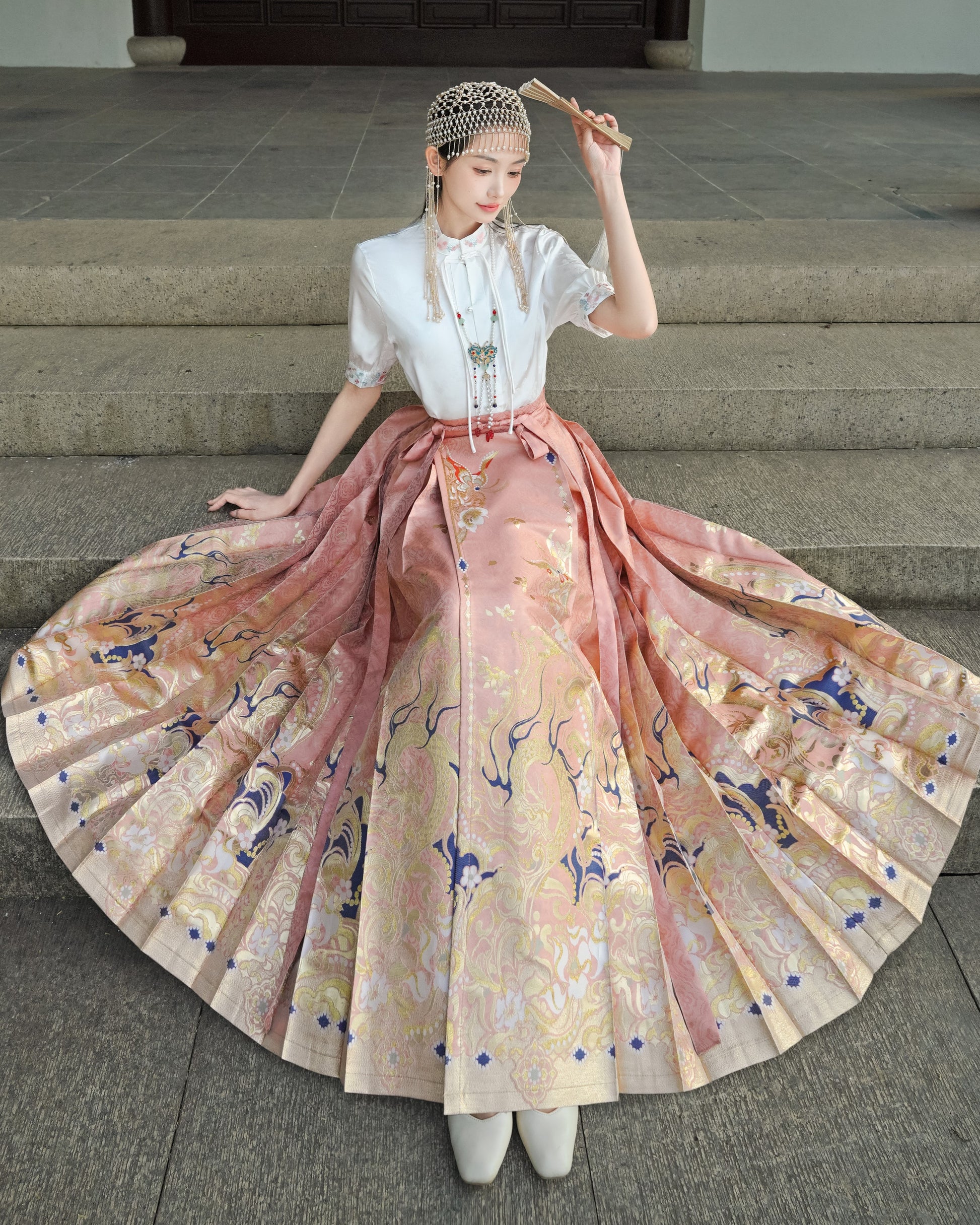 Horse Face High Waist Pleated Hanfu Qipao Cheongsam Dress Skirt, MaMianQun gifts for women 2024 #12186
