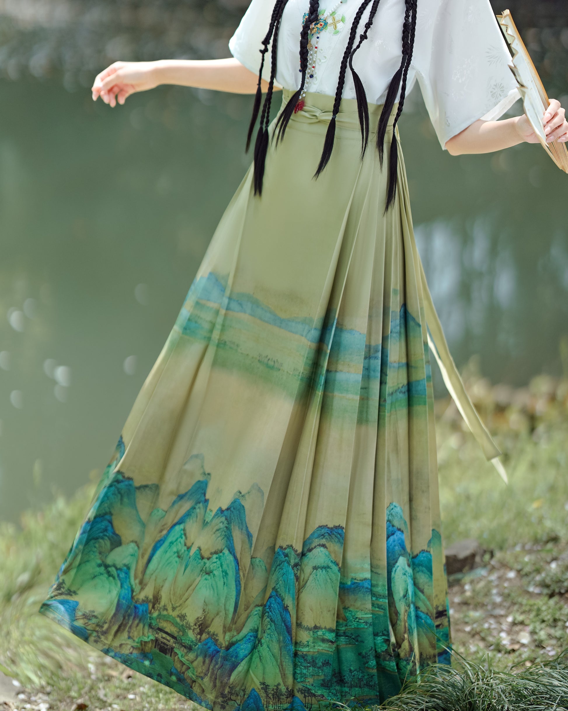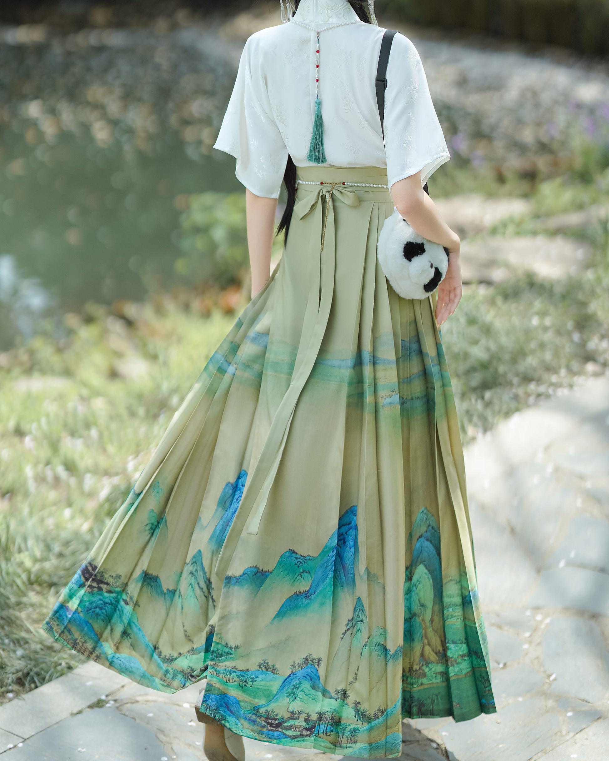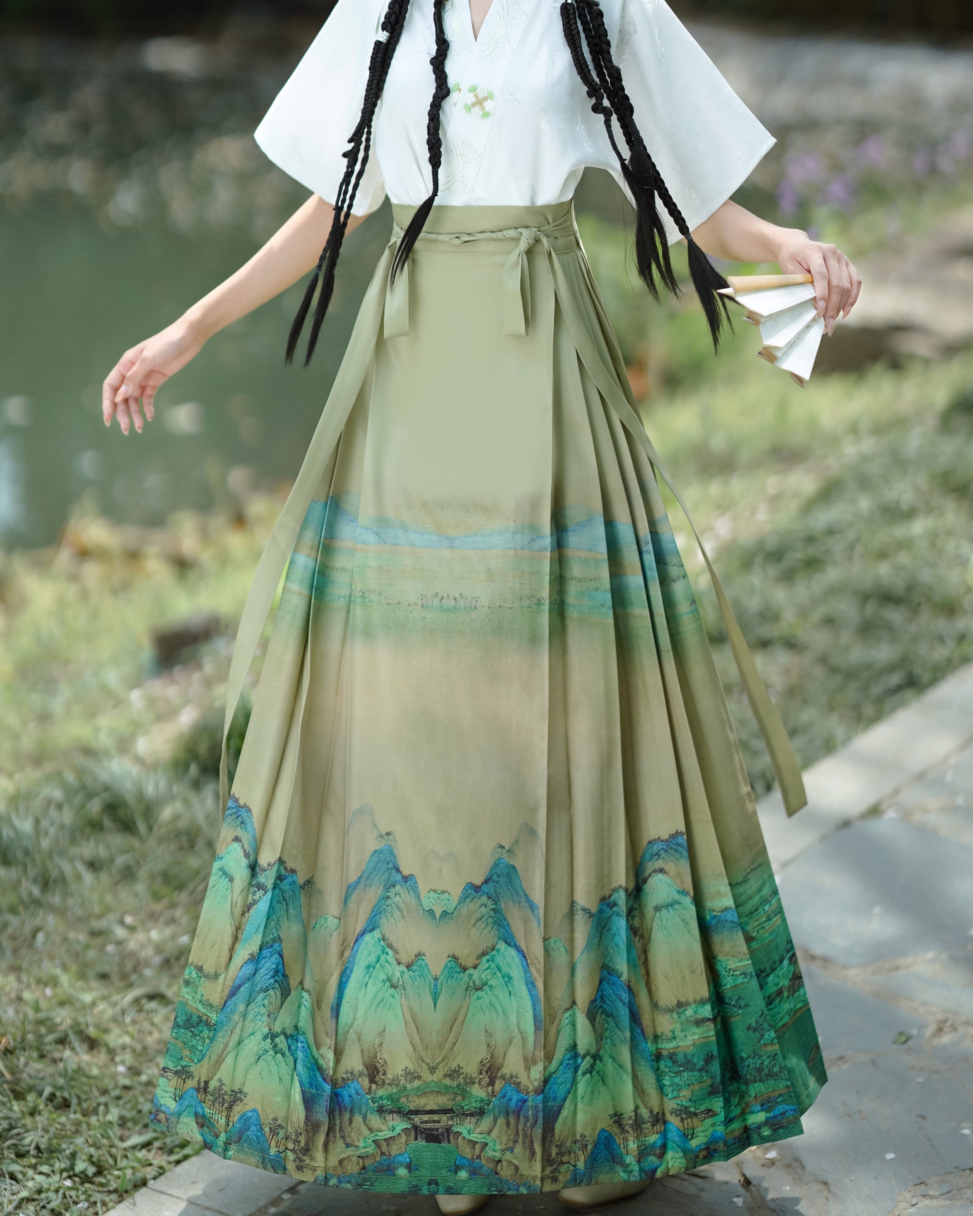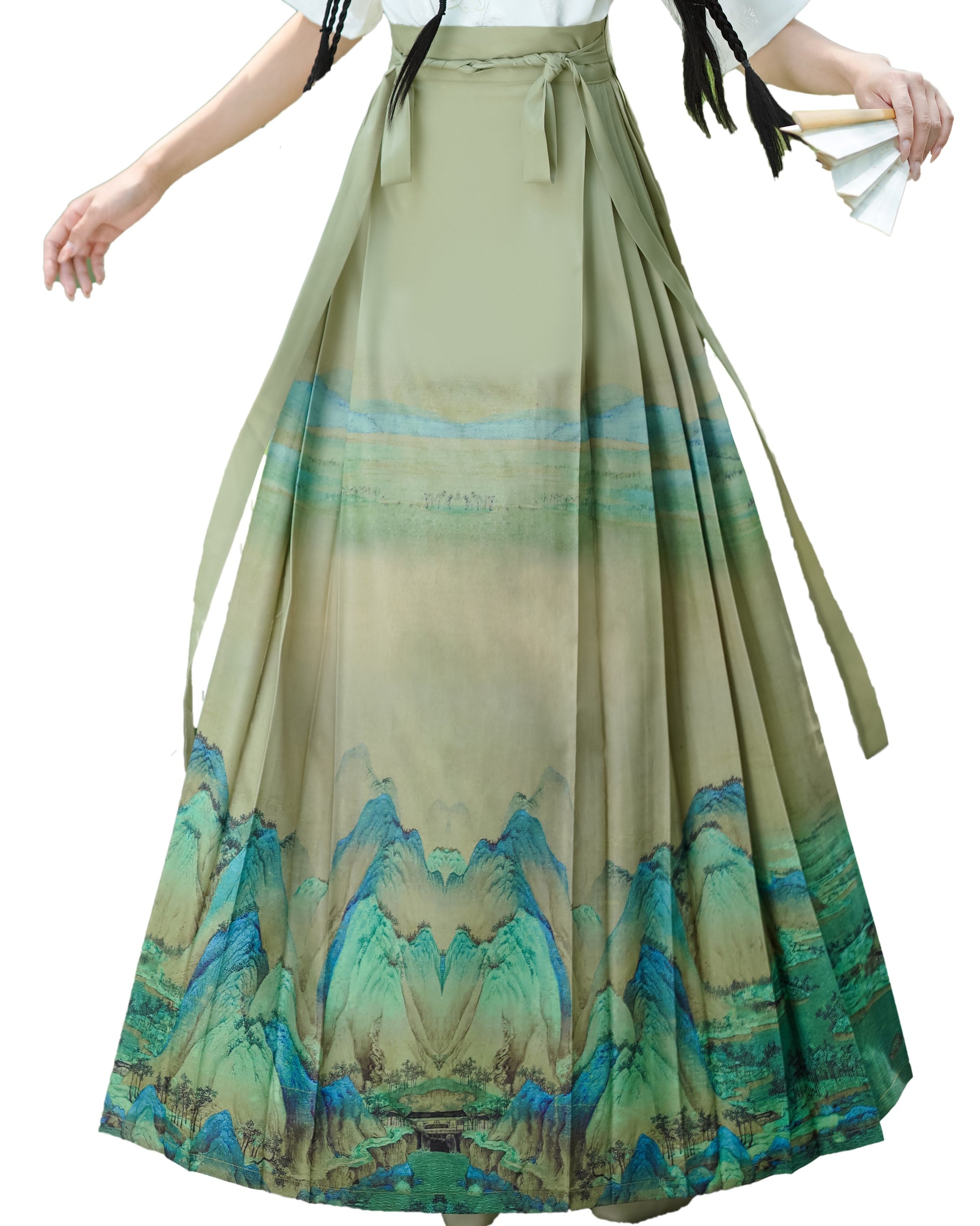 Horse Face High Waist Pleated Hanfu Qipao Cheongsam Dress Skirt, MaMianQun gifts for women 2024 #2333