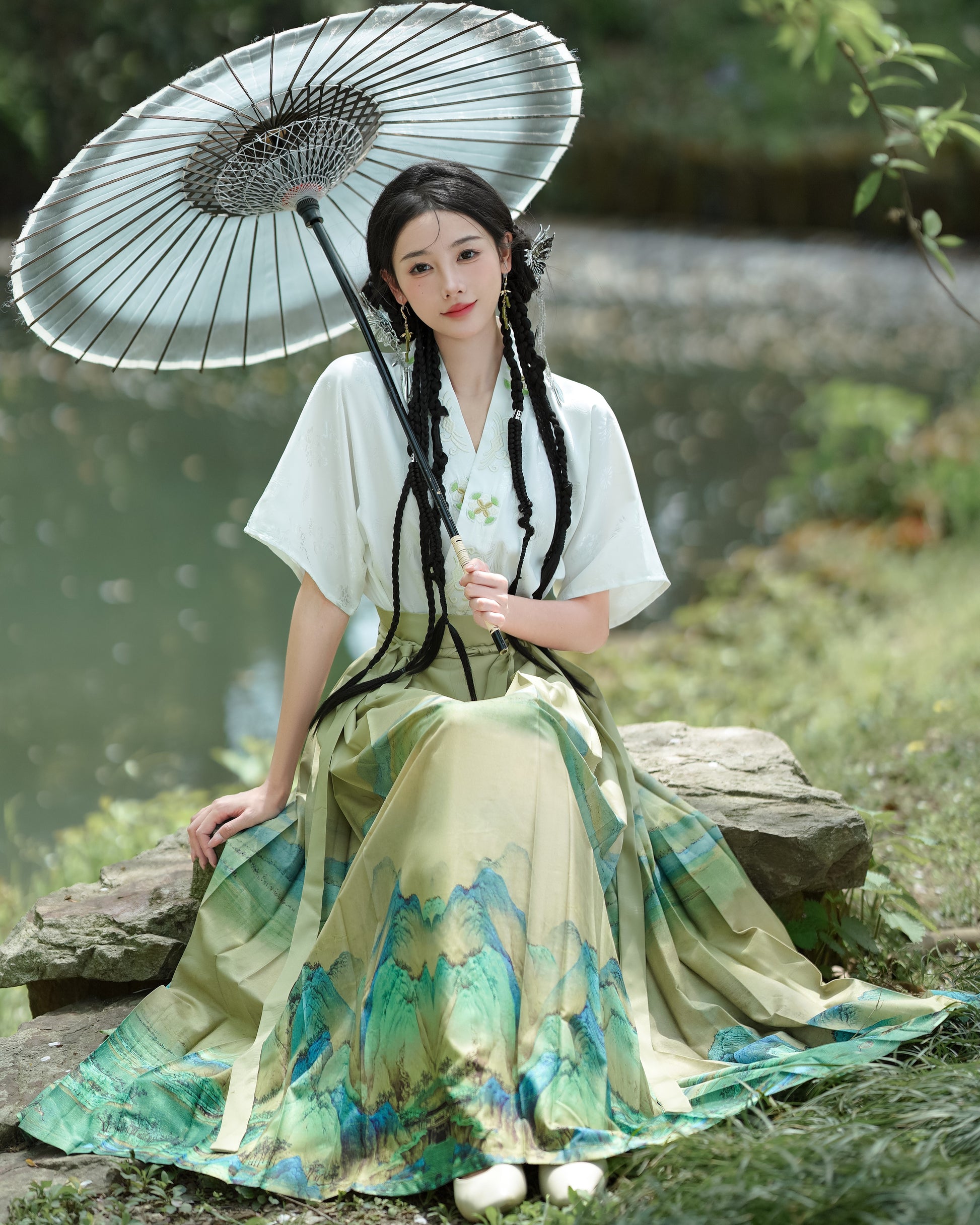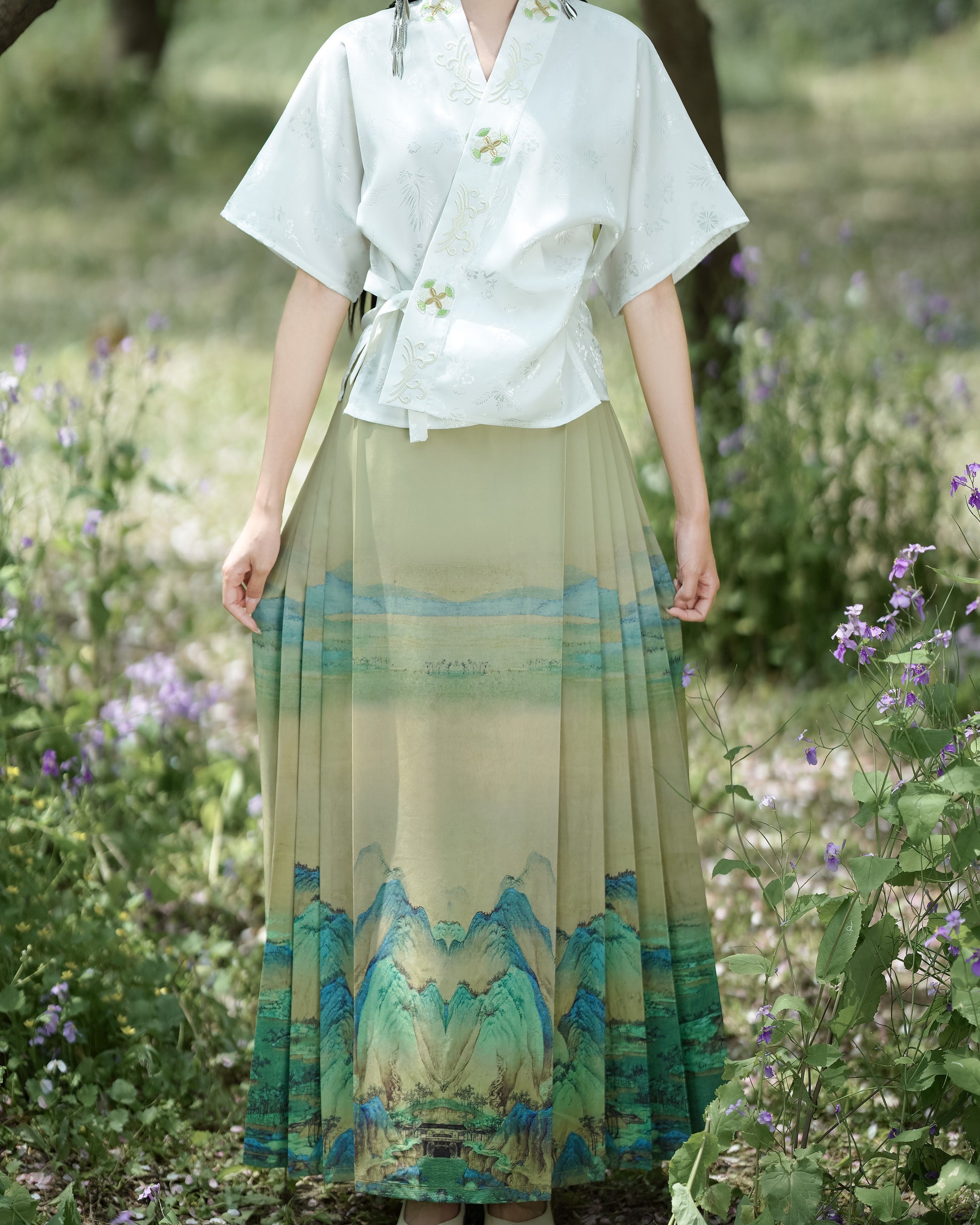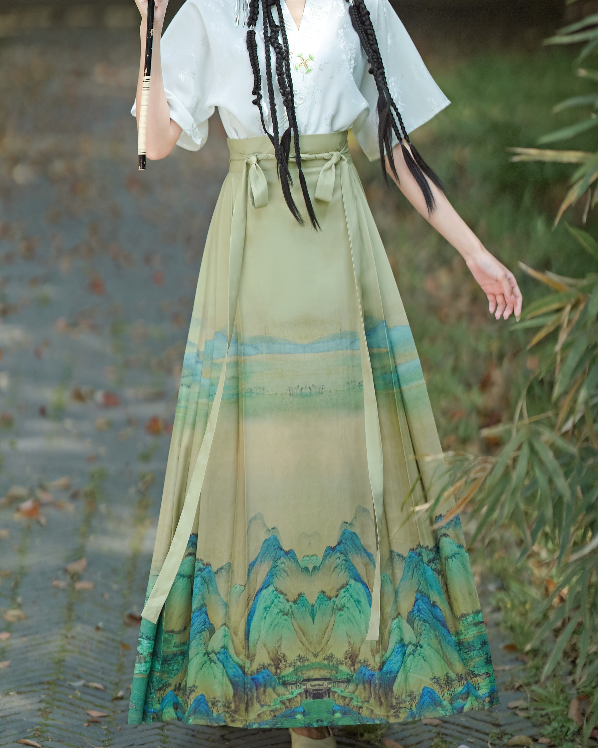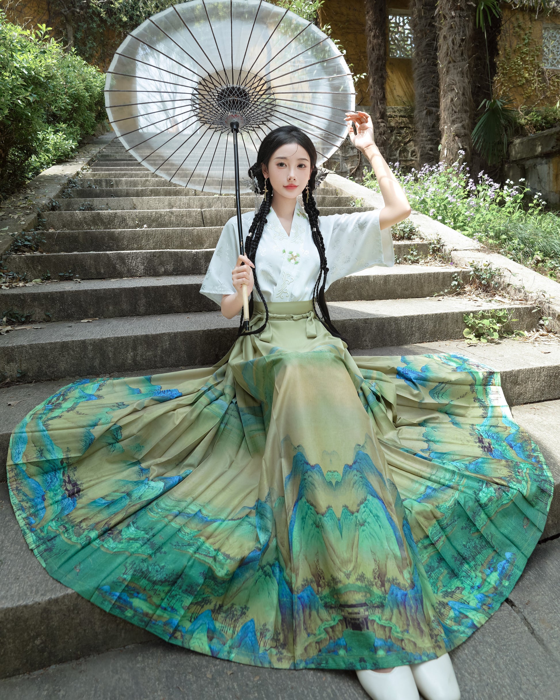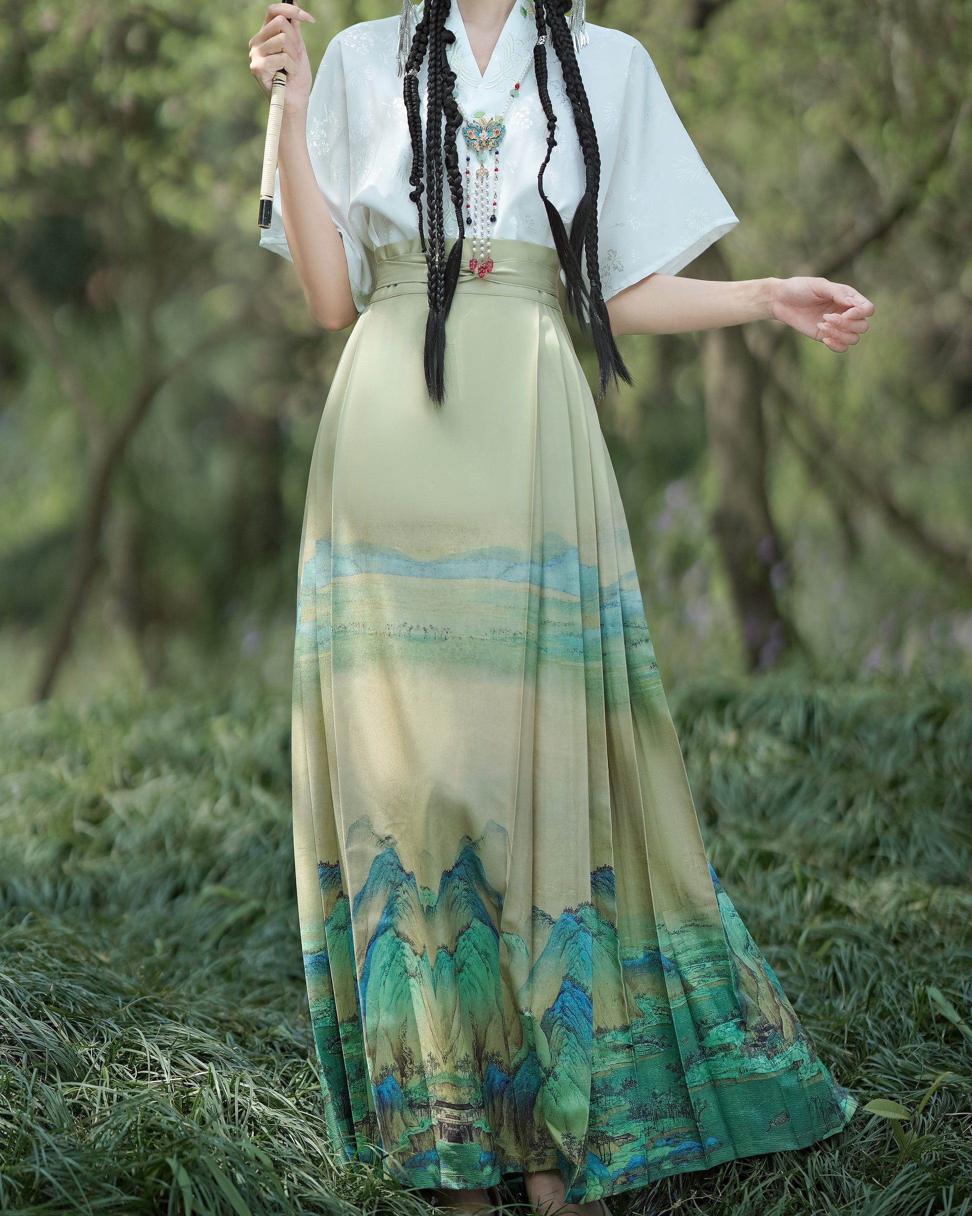 Horse Face High Waist Pleated Hanfu Qipao Cheongsam Dress Skirt, MaMianQun gifts for women 2024 #2333