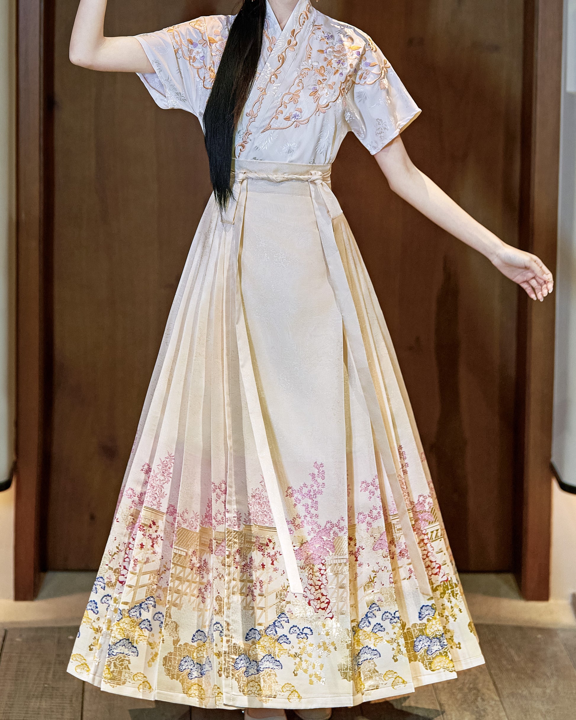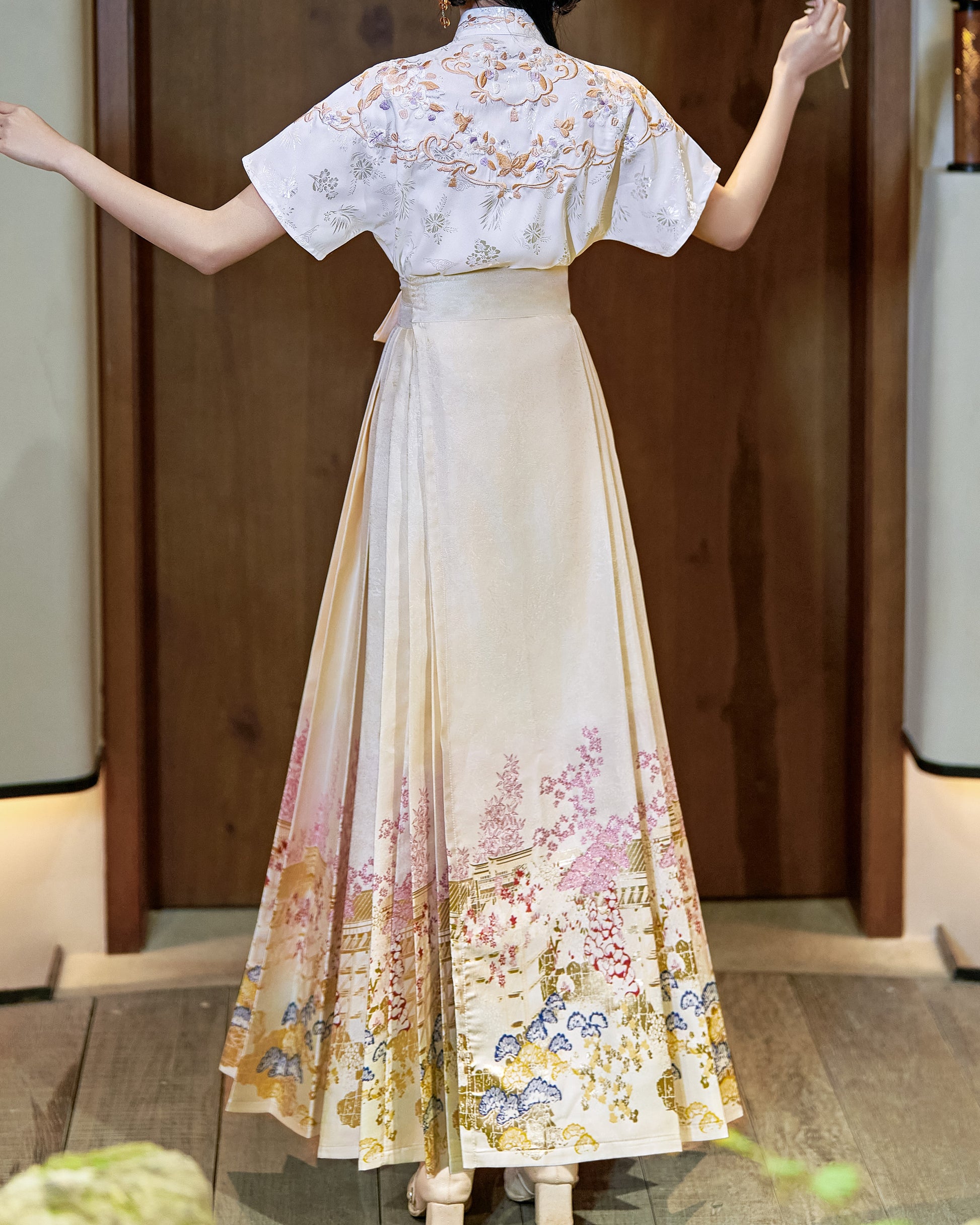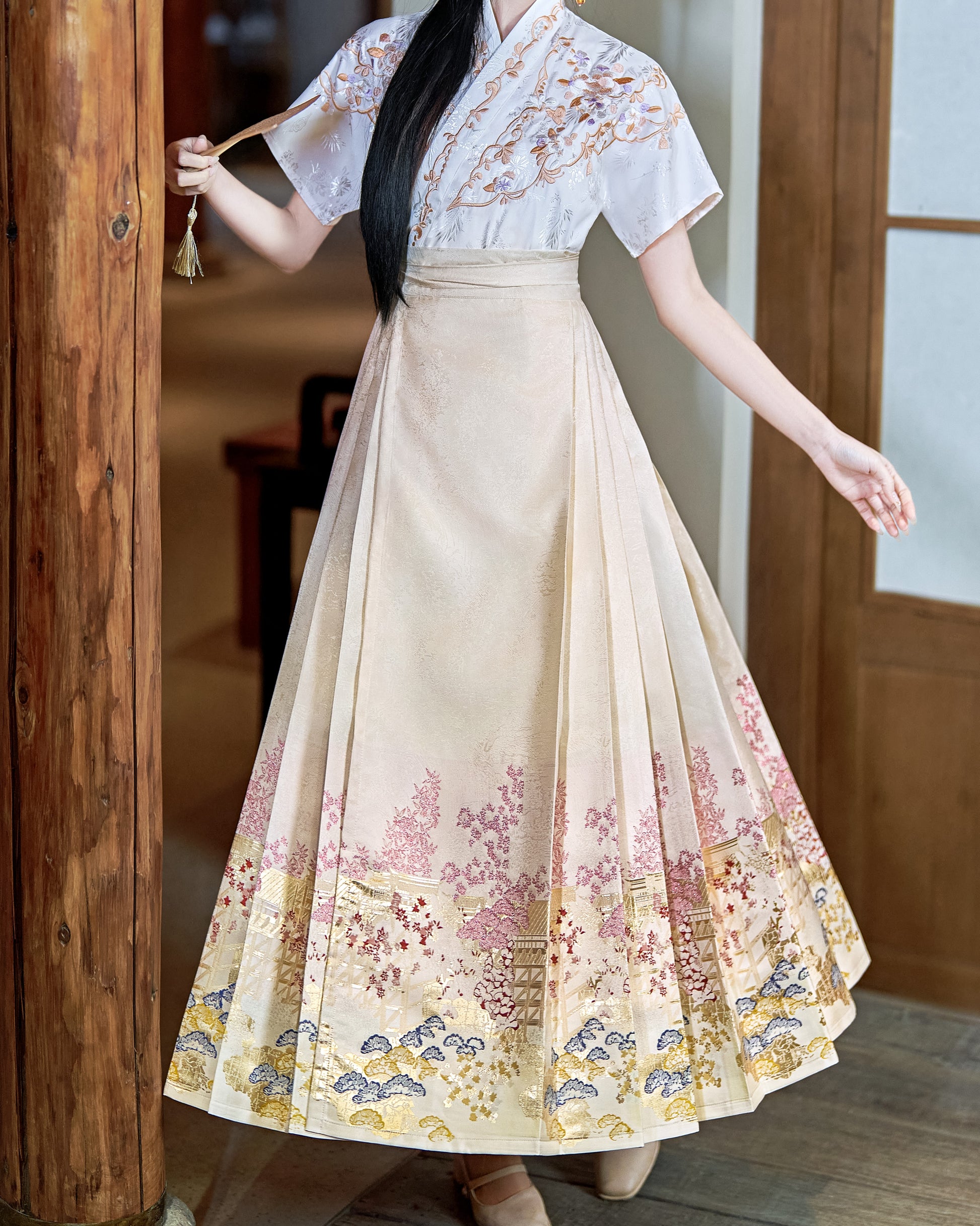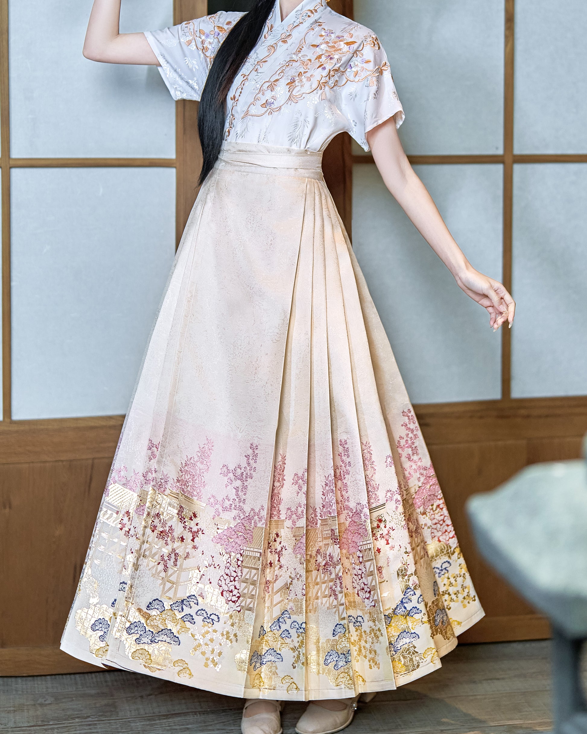 Horse Face High Waist Pleated Hanfu Qipao Cheongsam Dress Skirt, MaMianQun gifts for women 2024 #2719