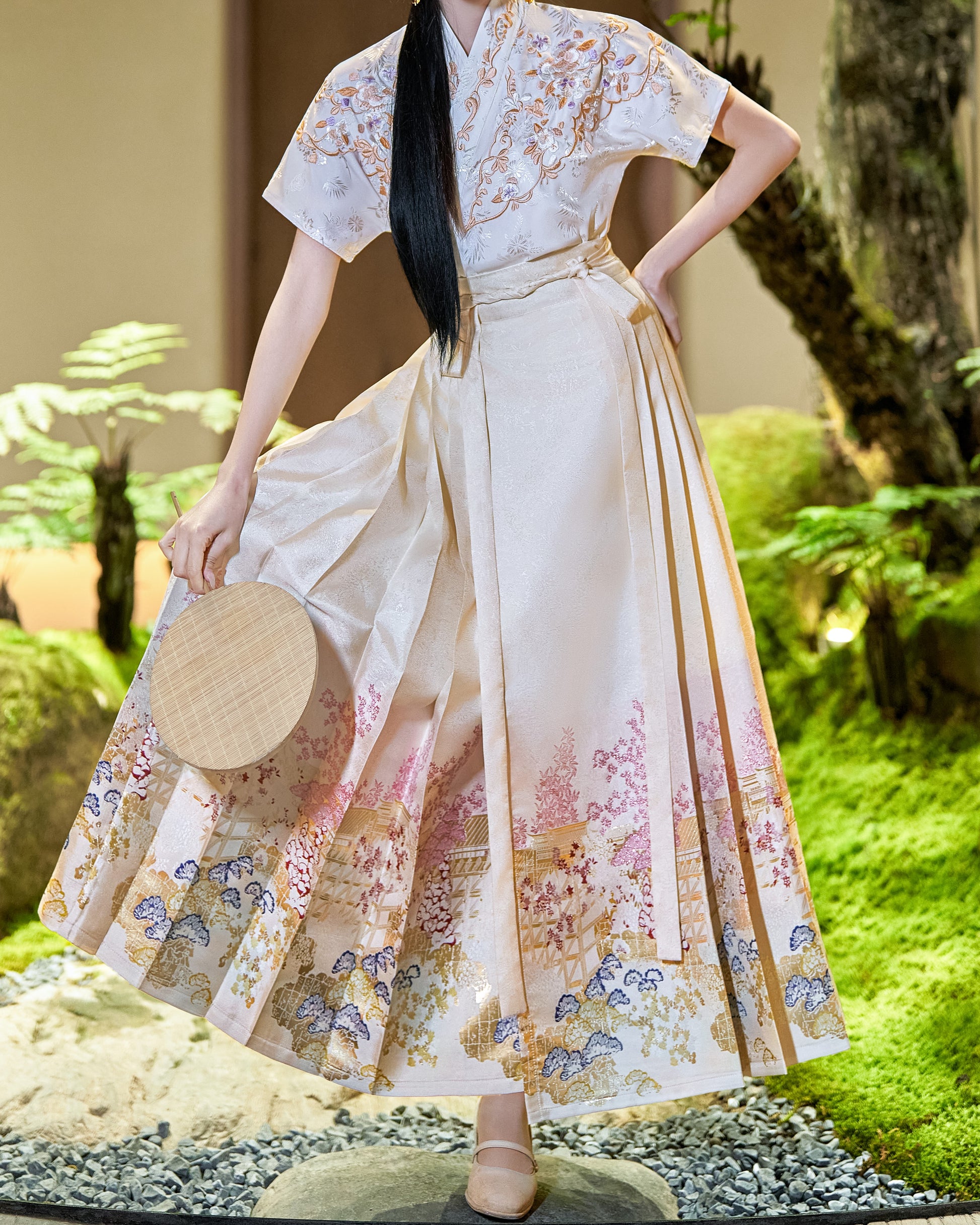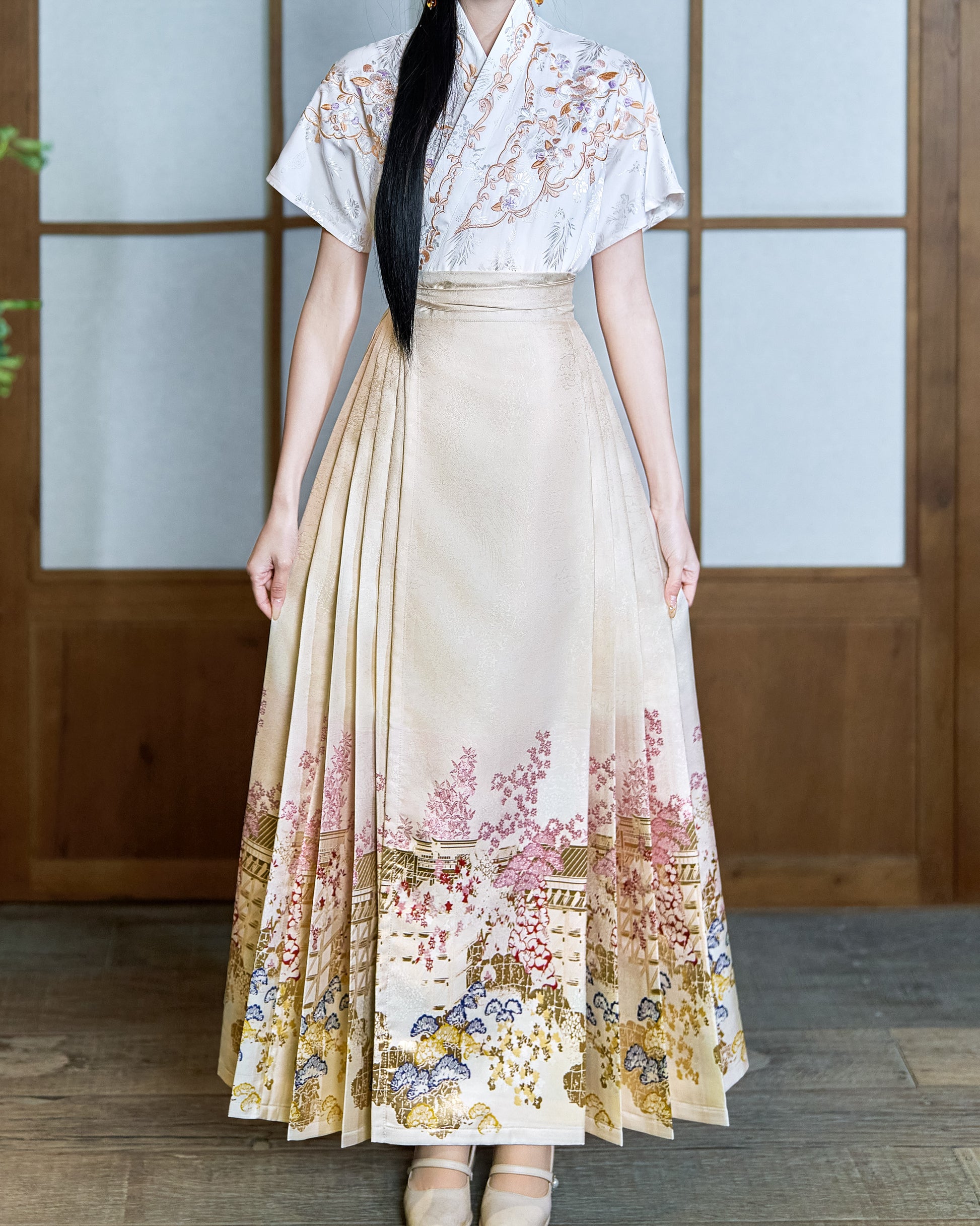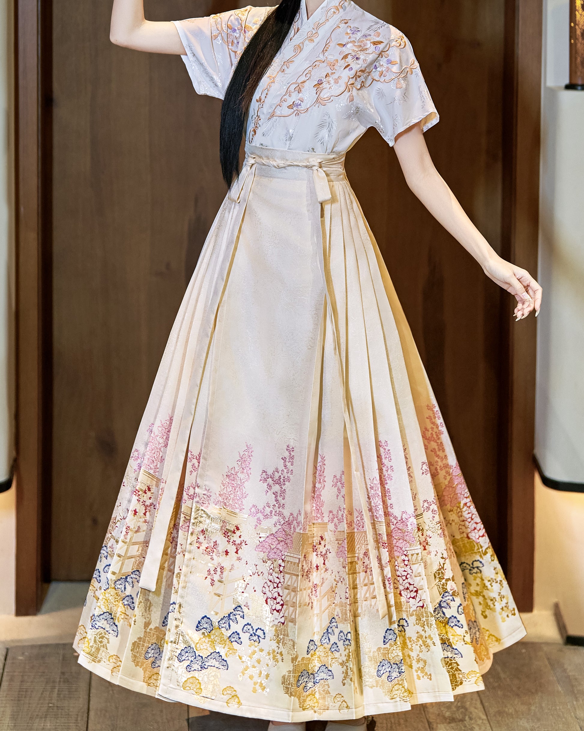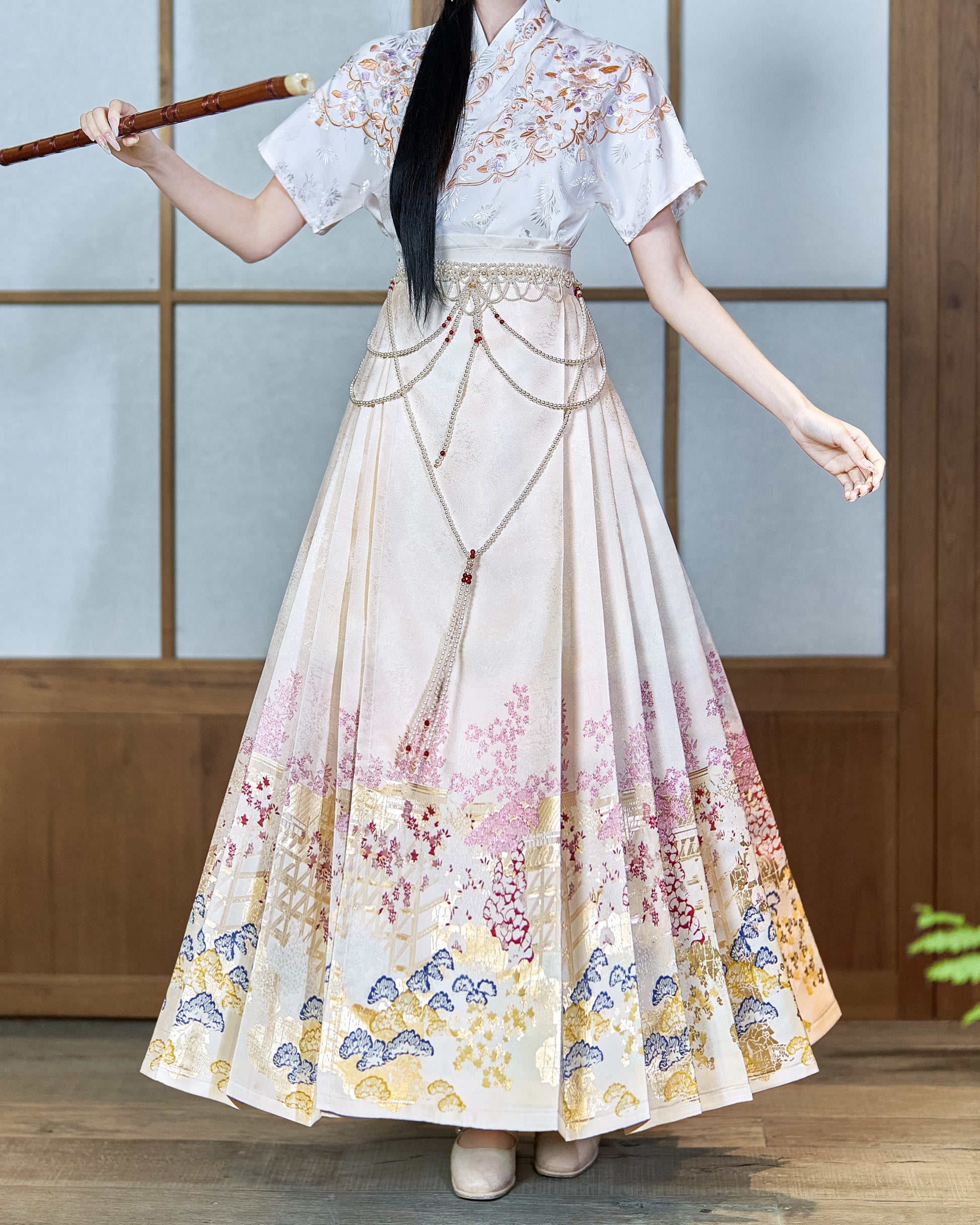 Horse Face High Waist Pleated Hanfu Qipao Cheongsam Dress Skirt, MaMianQun gifts for women 2024 #2719