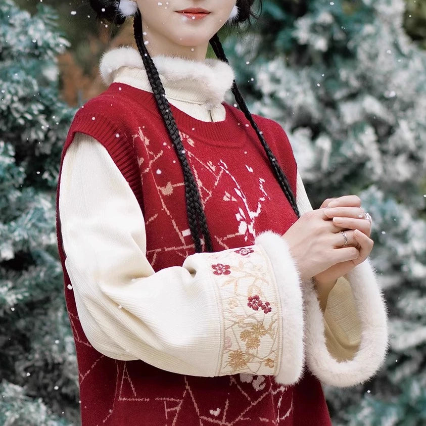 Lookbook Series Ethnic Winter Hanfu Bisque Hong Mei
