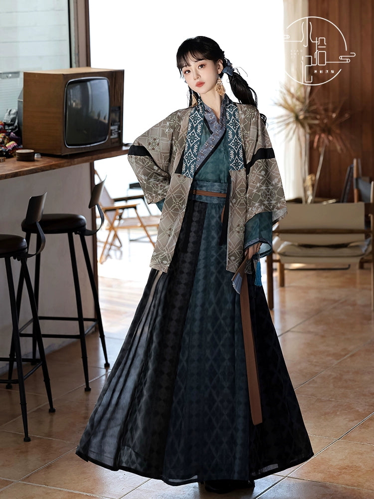 In terms of styling, Hanfu offers diverse looks. For instance, a short tunic paired with a wide, flowing skirt in pastel or gradient hues can create a romantic and graceful ensemble. Alternatively, a straight-cut, full-length robe in solemn colors like black or blue, complemented by a wide belt and simple accessories like hairpins and jade pendants, exudes a classic elegance. For a more casual vibe, a round-necked shirt with wide sleeves can be matched with trousers or a skirt, accessorized with contemporary jewelry and hairbands for a unique blend of tradition and modernity.