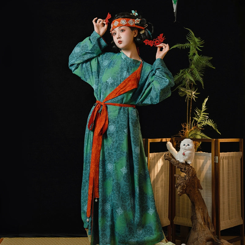 Hanfu, the traditional attire of the Han Chinese people, boasts a rich historical and cultural heritage along with unique aesthetic values. Characterized by its crossed collars, right-overlapping fronts, and tied belts, Hanfu exudes an elegant and flowing charm. It comes in various forms, including tops and skirts, one-piece robes, and tunic dresses, catering to both formal and casual occasions.