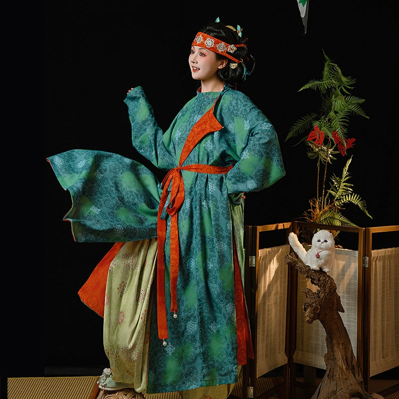 In terms of styling, Hanfu offers diverse looks. For instance, a short tunic paired with a wide, flowing skirt in pastel or gradient hues can create a romantic and graceful ensemble. Alternatively, a straight-cut, full-length robe in solemn colors like black or blue, complemented by a wide belt and simple accessories like hairpins and jade pendants, exudes a classic elegance. For a more casual vibe, a round-necked shirt with wide sleeves can be matched with trousers or a skirt, accessorized with contemporary jewelry and hairbands for a unique blend of tradition and modernity.