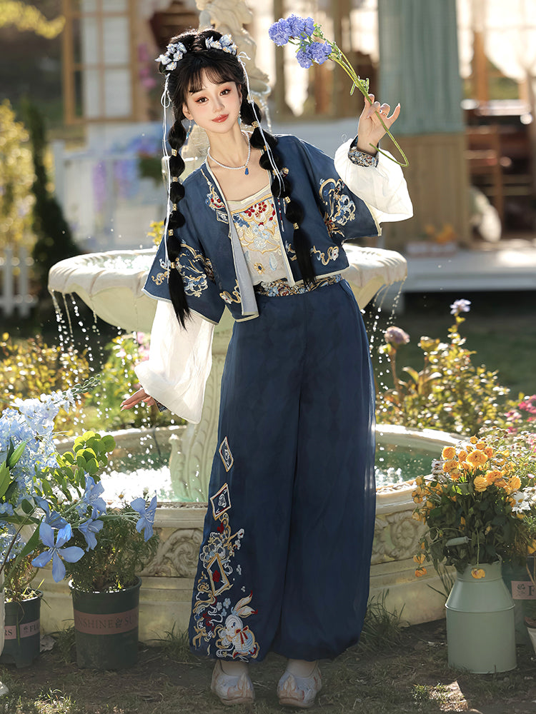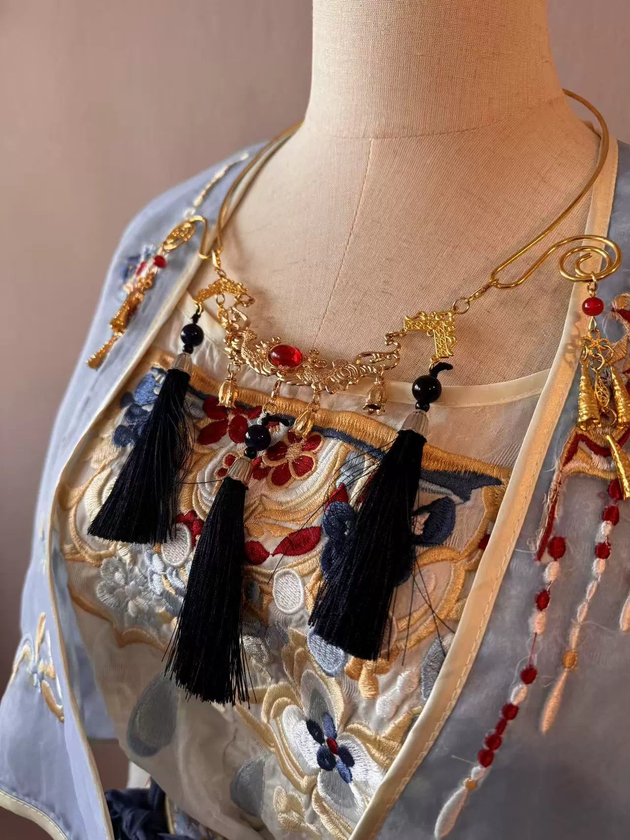 In terms of styling, Hanfu offers diverse looks. For instance, a short tunic paired with a wide, flowing skirt in pastel or gradient hues can create a romantic and graceful ensemble. Alternatively, a straight-cut, full-length robe in solemn colors like black or blue, complemented by a wide belt and simple accessories like hairpins and jade pendants, exudes a classic elegance. For a more casual vibe, a round-necked shirt with wide sleeves can be matched with trousers or a skirt, accessorized with contemporary jewelry and hairbands for a unique blend of tradition and modernity.