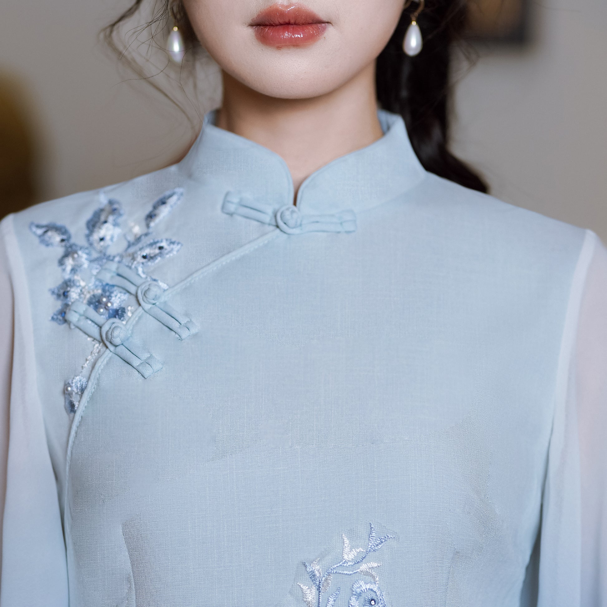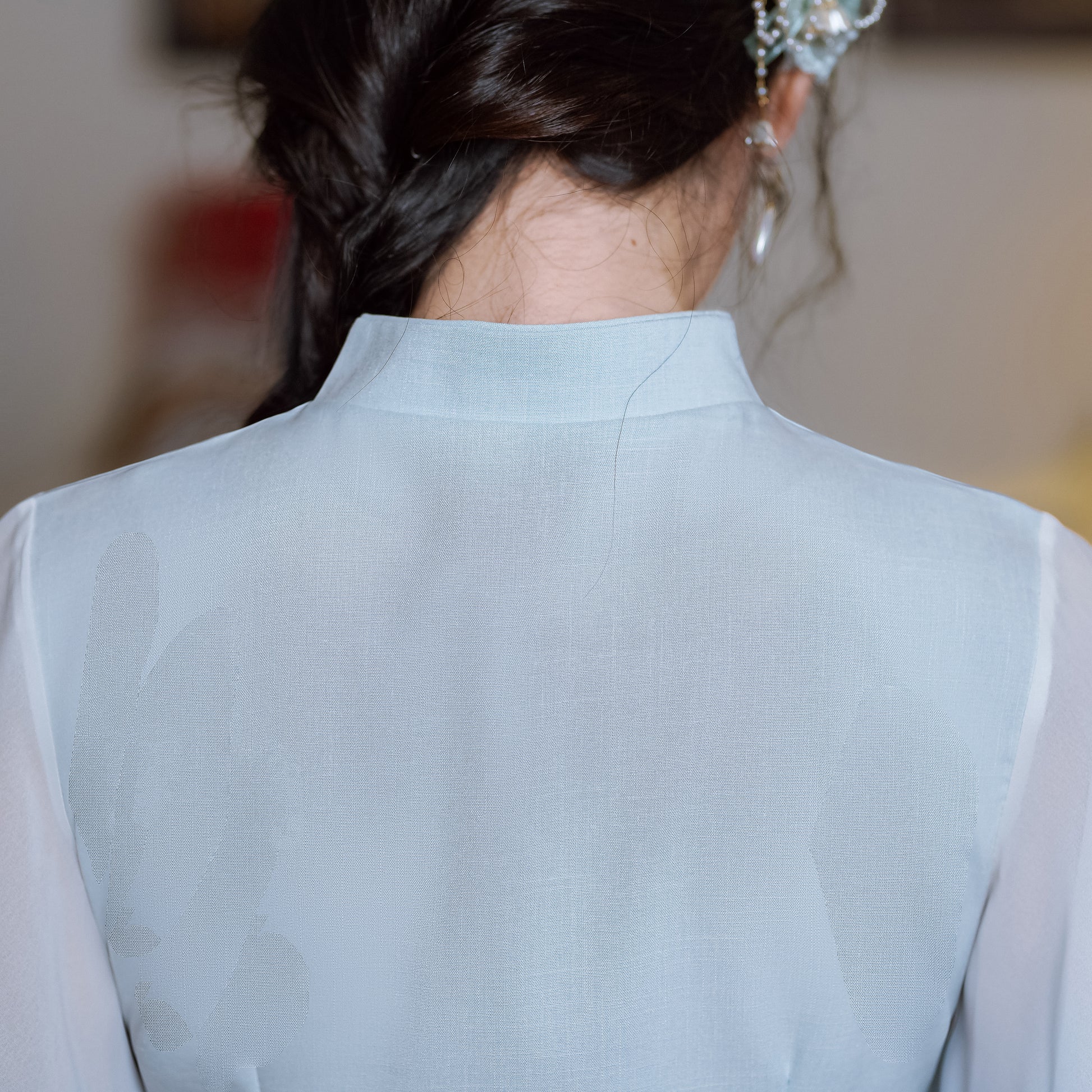 Hanfu, the traditional attire of the Han Chinese people, boasts a rich historical and cultural heritage along with unique aesthetic values. Characterized by its crossed collars, right-overlapping fronts, and tied belts, Hanfu exudes an elegant and flowing charm. It comes in various forms, including tops and skirts, one-piece robes, and tunic dresses, catering to both formal and casual occasions.