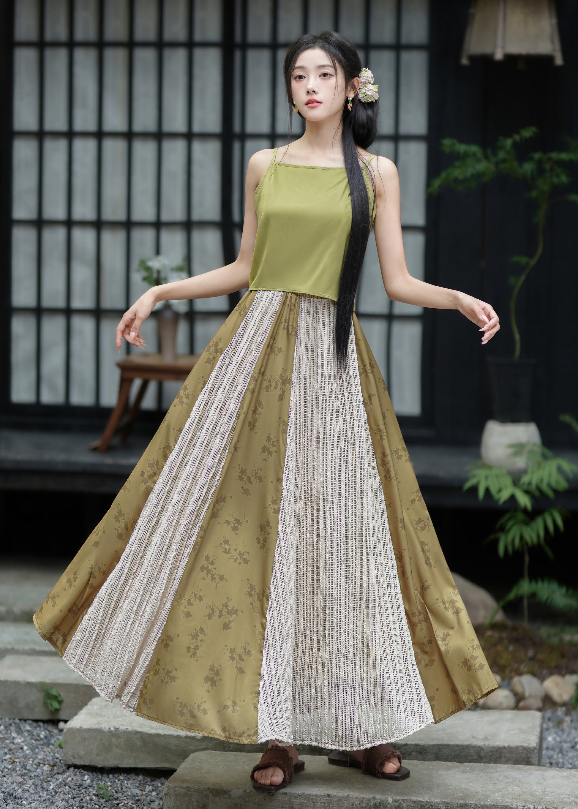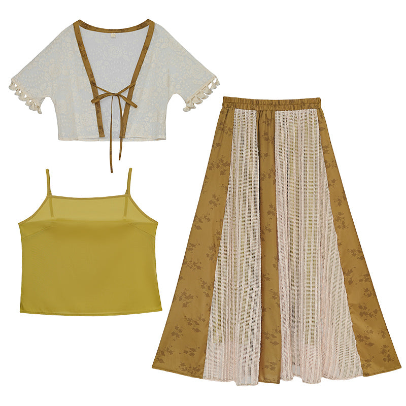Hanfu, the traditional attire of the Han Chinese people, boasts a rich historical and cultural heritage along with unique aesthetic values. Characterized by its crossed collars, right-overlapping fronts, and tied belts, Hanfu exudes an elegant and flowing charm. It comes in various forms, including tops and skirts, one-piece robes, and tunic dresses, catering to both formal and casual occasions.