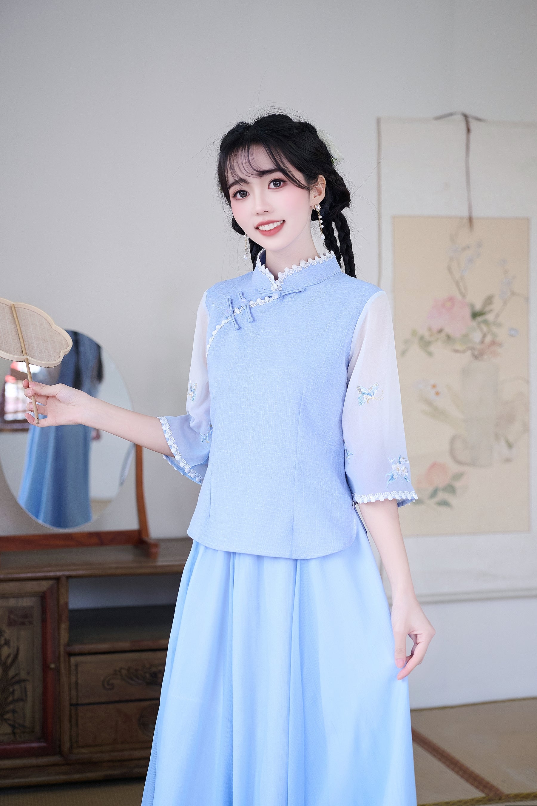 Hanfu, the traditional attire of the Han Chinese people, boasts a rich historical and cultural heritage along with unique aesthetic values. Characterized by its crossed collars, right-overlapping fronts, and tied belts, Hanfu exudes an elegant and flowing charm. It comes in various forms, including tops and skirts, one-piece robes, and tunic dresses, catering to both formal and casual occasions.
