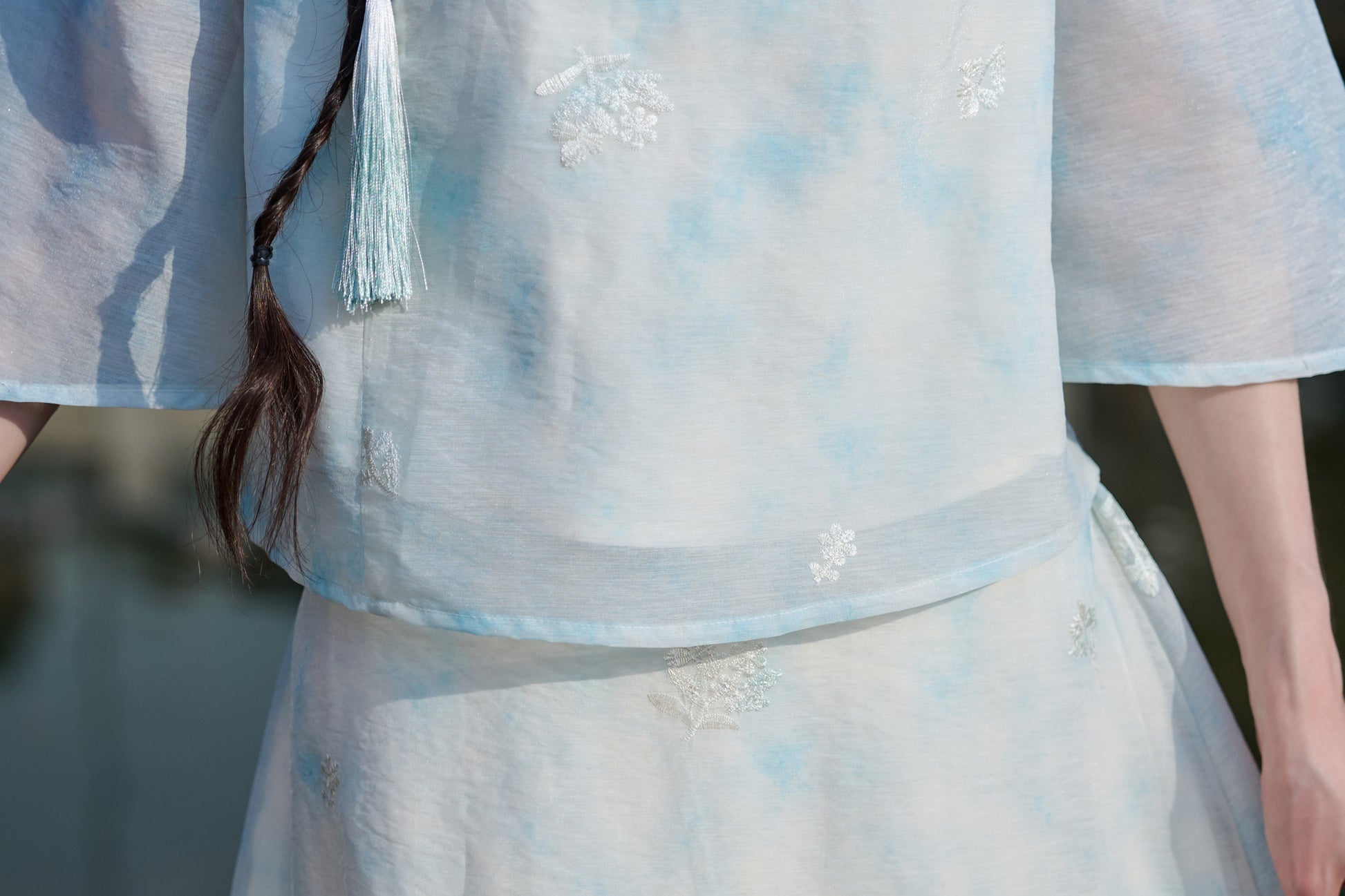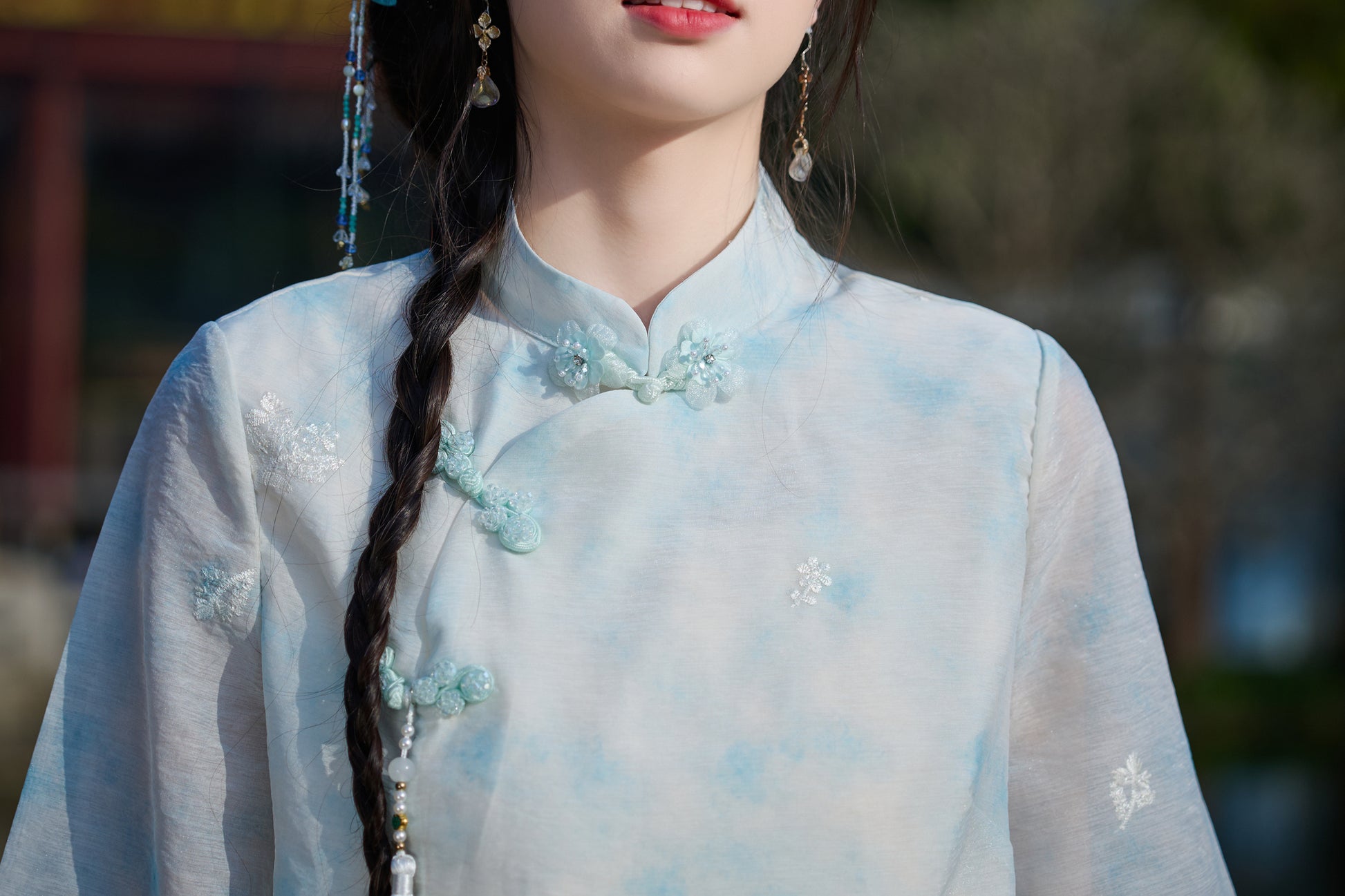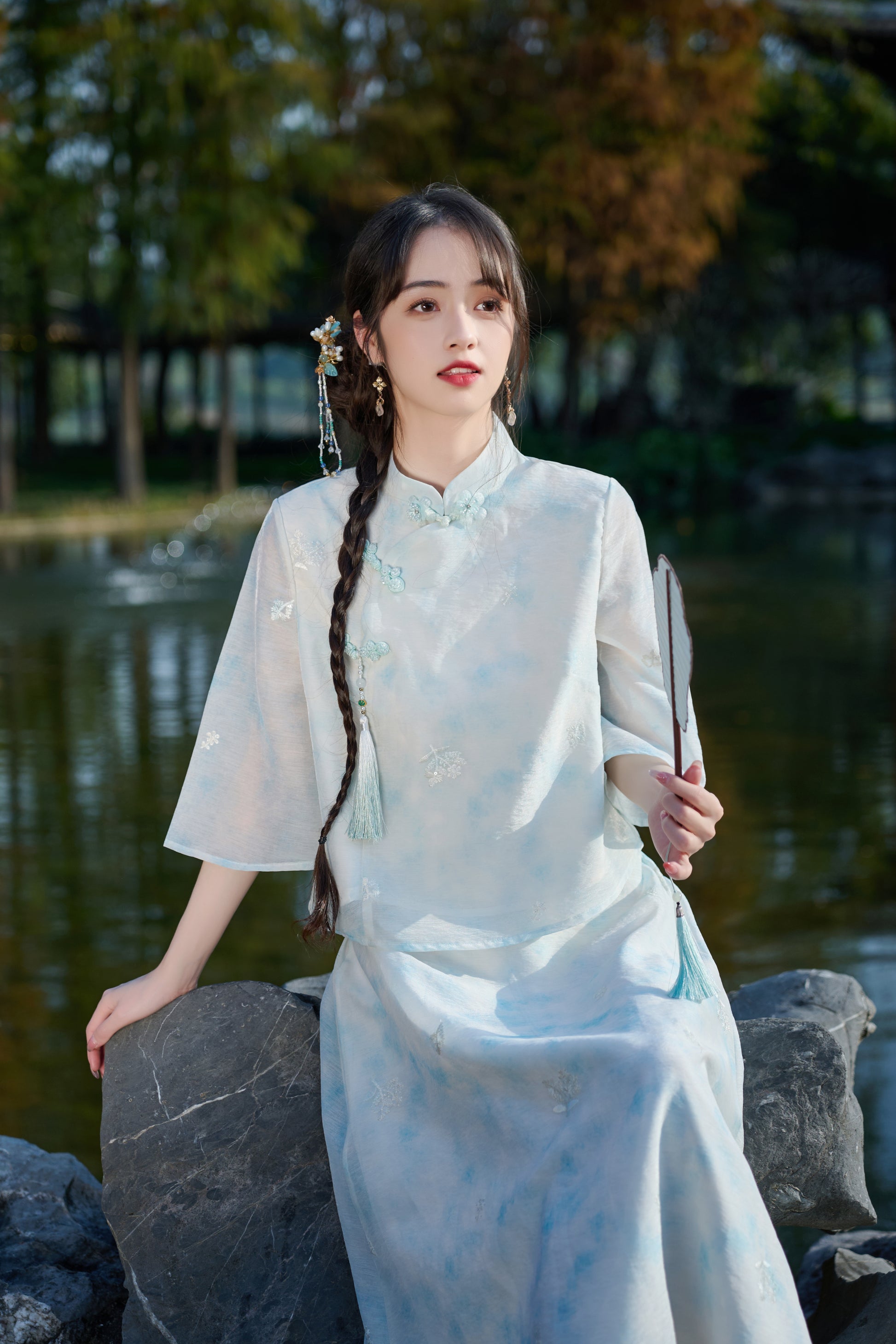 Hanfu, the traditional attire of the Han Chinese people, boasts a rich historical and cultural heritage along with unique aesthetic values. Characterized by its crossed collars, right-overlapping fronts, and tied belts, Hanfu exudes an elegant and flowing charm. It comes in various forms, including tops and skirts, one-piece robes, and tunic dresses, catering to both formal and casual occasions.