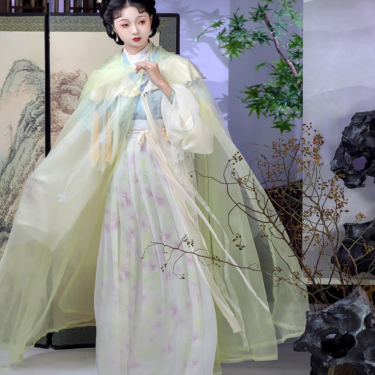 Hanfu, the traditional attire of the Han Chinese people, boasts a rich historical and cultural heritage along with unique aesthetic values. Characterized by its crossed collars, right-overlapping fronts, and tied belts, Hanfu exudes an elegant and flowing charm. It comes in various forms, including tops and skirts, one-piece robes, and tunic dresses, catering to both formal and casual occasions.