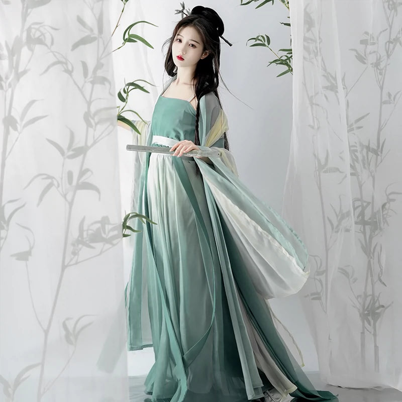 Five-piece set(Inner Large Sleeves + Outer Large Sleeves + Suspenders + Skirt + Shawl)