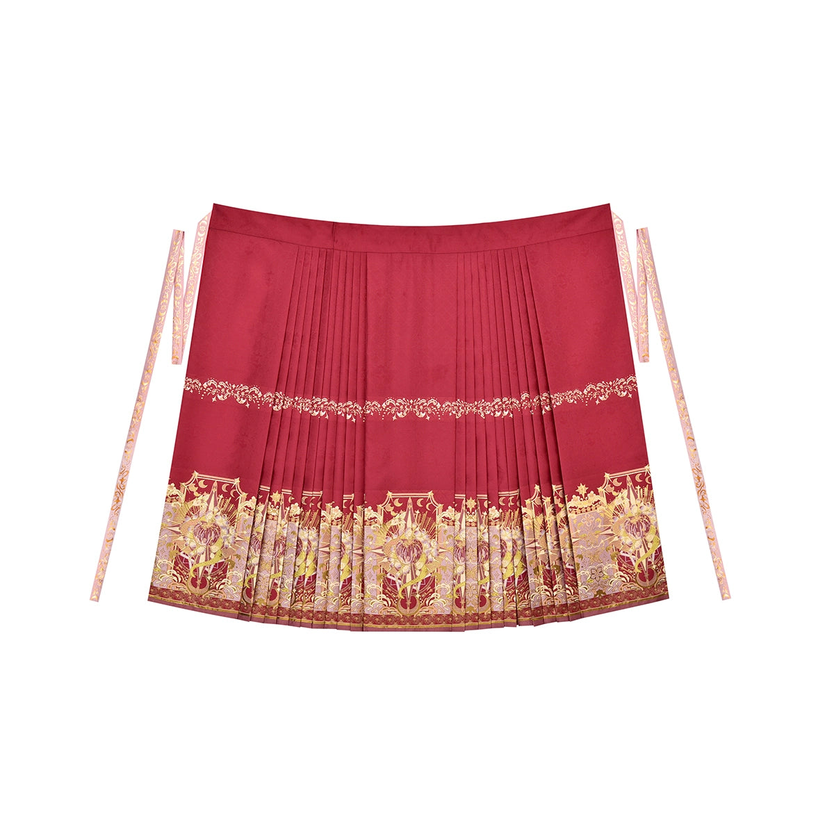 Cherry Pink Cross Collar Jacket + Apple Red Horse Face Skirt + Cloud Shoulder + Accessories