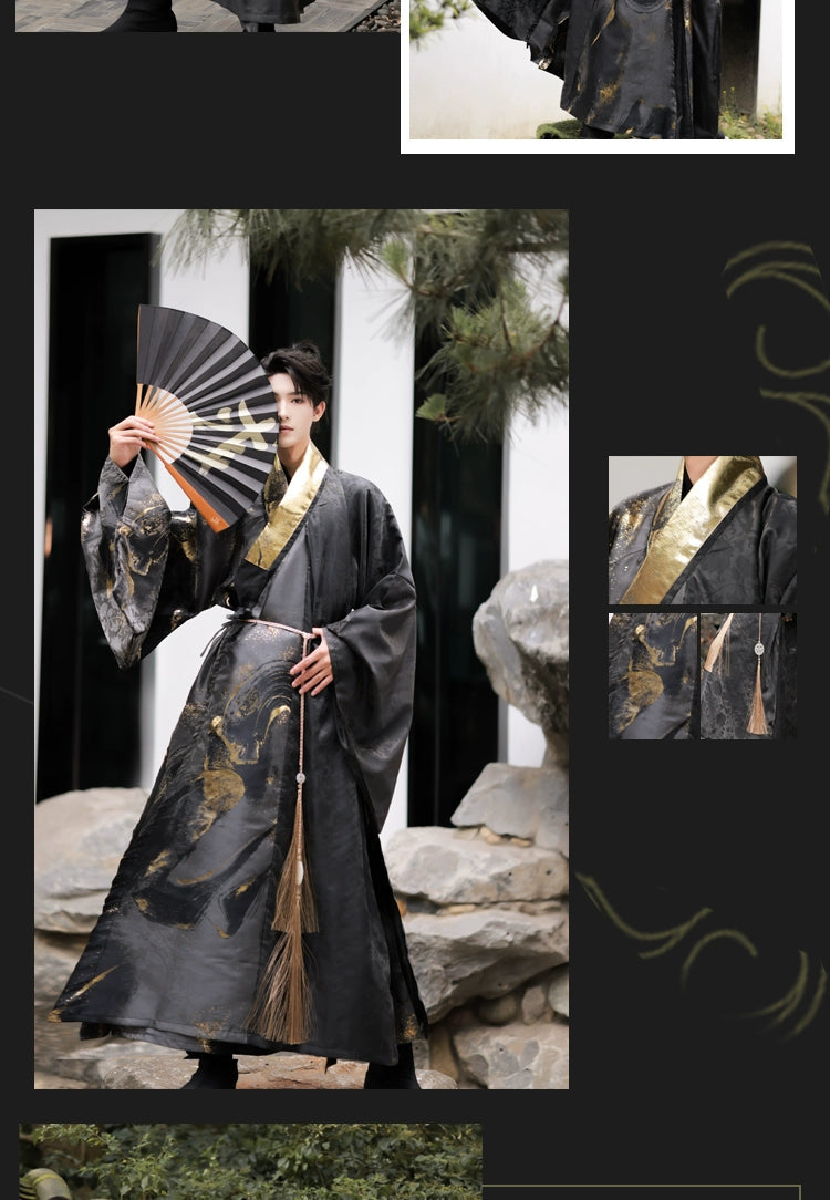 明王朝オリジナル ユニセックス ダオ ローブ: インク スプラッシュで力強さを与える黒 - 春/秋の明王朝にインスピレーション