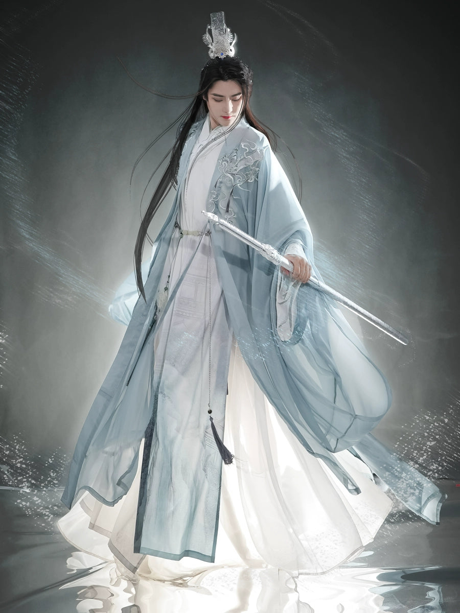 Men'S Hanfu Often Adopts Wide Robes And Sleeves. This Design Not Only Conforms To The Aesthetic Concept Of Ancient Men, But Also Visually Increases The Majesty And Demeanor Of Men. Men'S Hanfu Has A Wide Range Of Color Options, Ranging From Deep Black And Blue To Bright Red And Yellow. Different Colors Represent Different Identities And Statuses, And Also Reflect The Diversity And Personality Of Ancient Men.