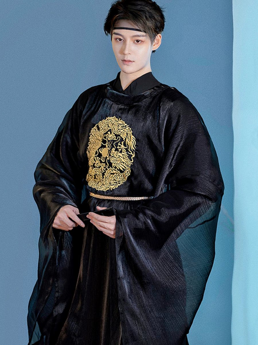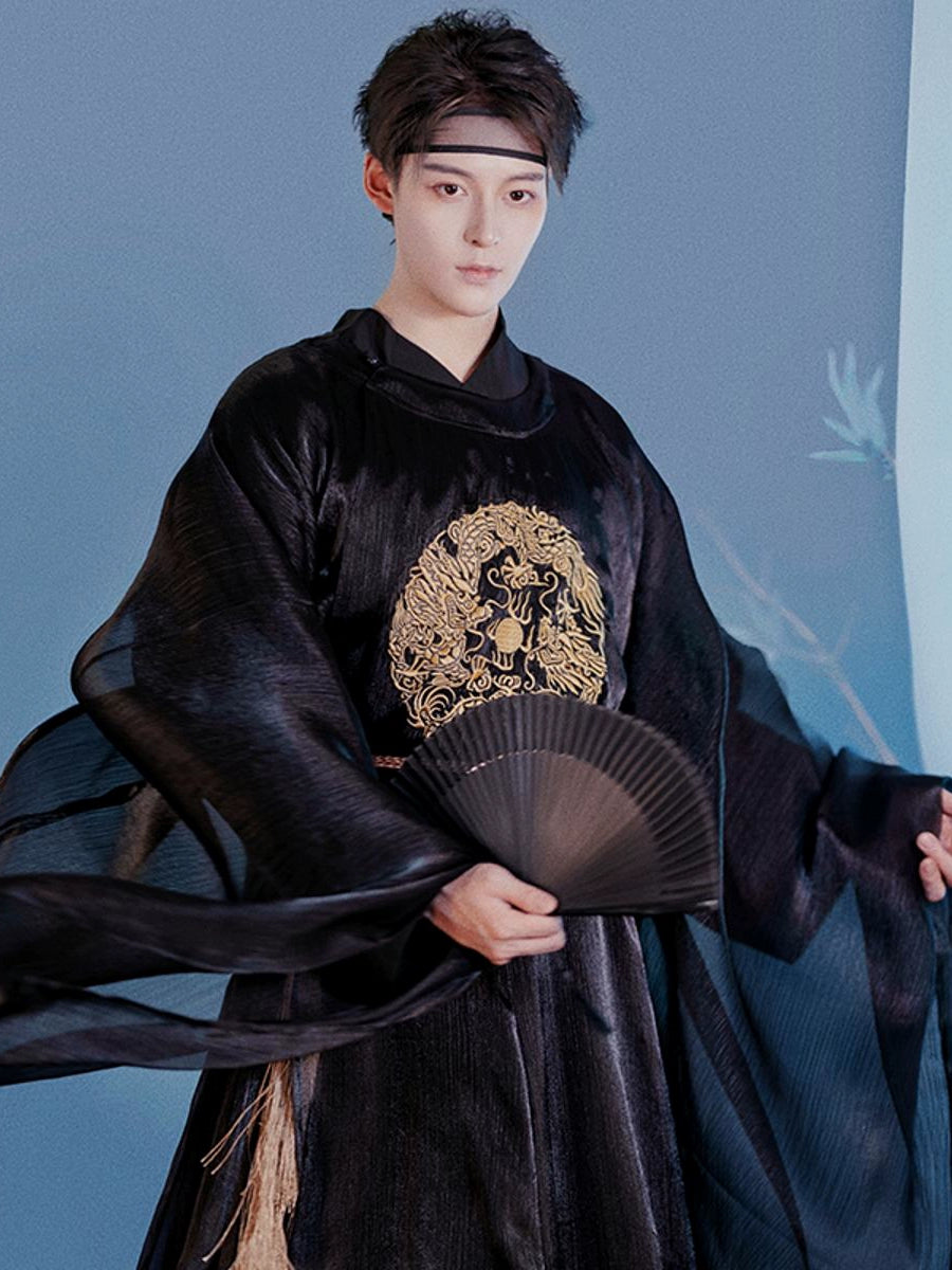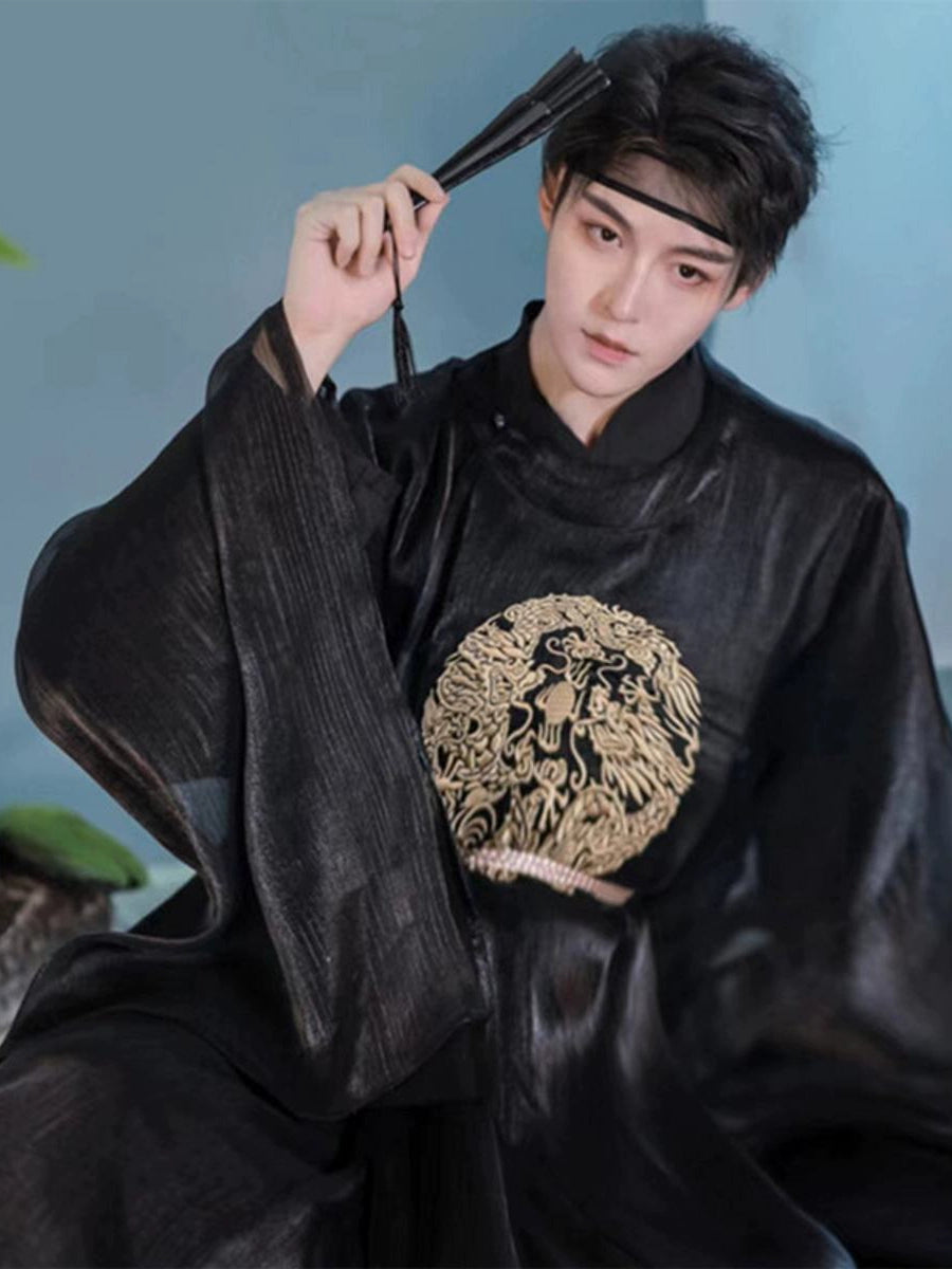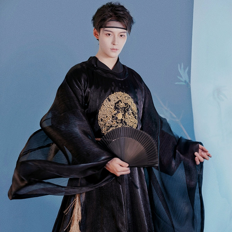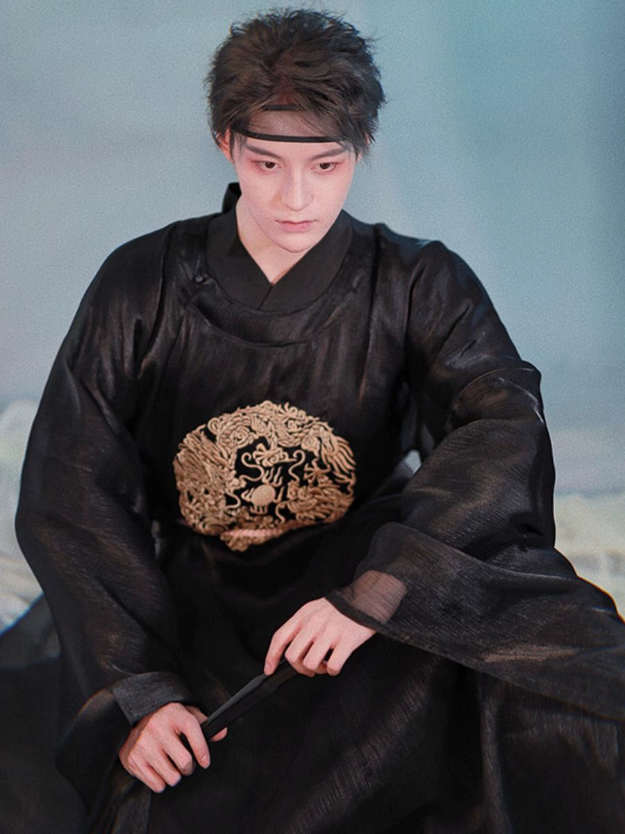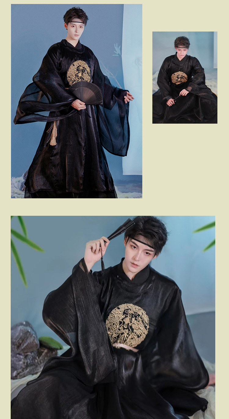 Men'S Hanfu Should Be Well-Fitted, Loose And Comfortable. Generally, The Sleeves Of Men'S Hanfu Should Be Longer Than The Fingertips And The Body Should Be Longer Than The Ankles, With The Upper Of The Shoes Slightly Exposed And Not Dragging On The Ground. The Size Should Be Wide And Fit, Not Too Tight. In Addition, The Tailoring Of Hanfu Should Have Technical Features Such As The Front And Back Center Seams And Sleeve Joints To Reflect Its Unique Production Process And Aesthetic Value.