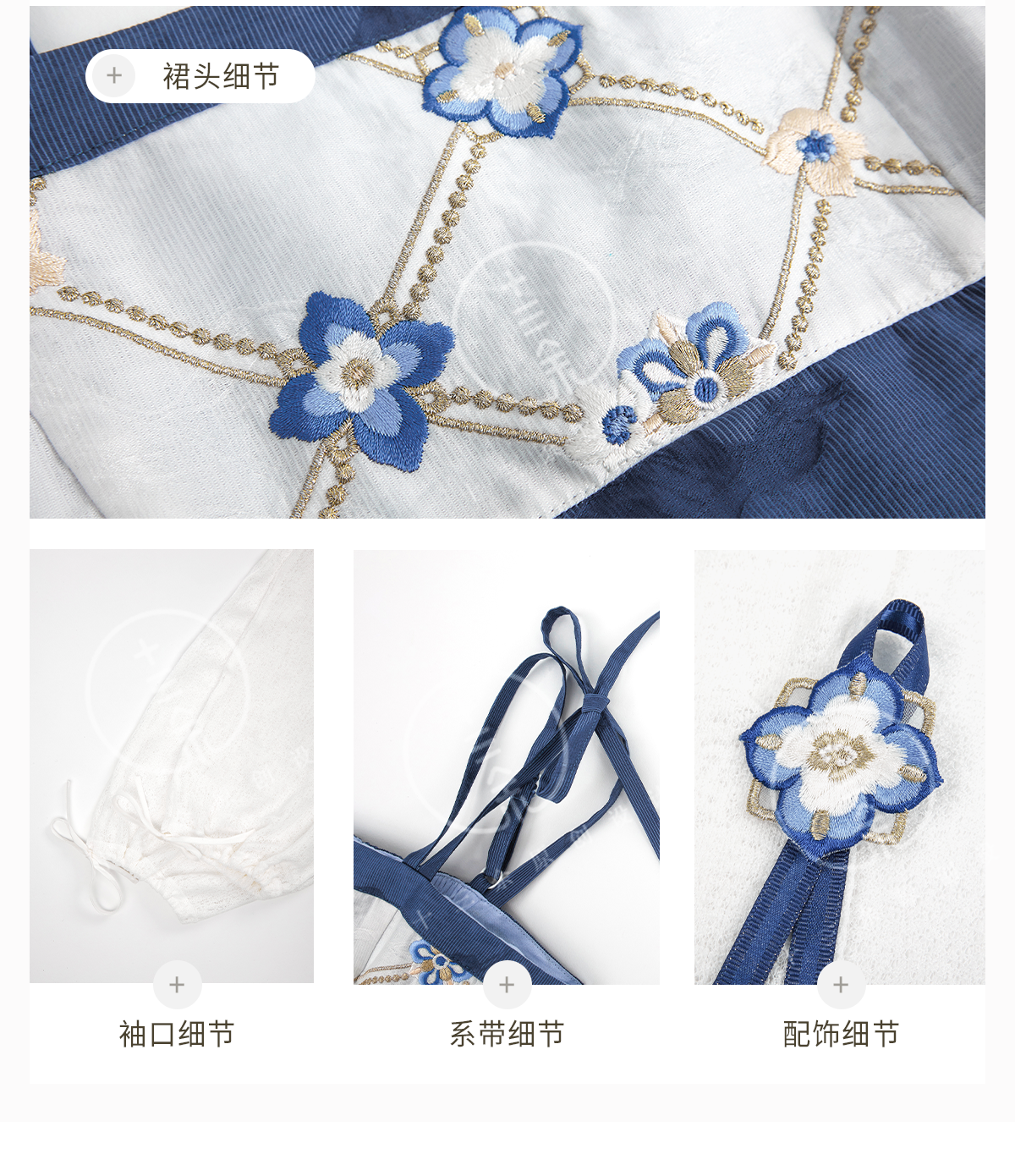 Hanfu is a handmade product, not a mass-produced product in a garment factory. In theory, there are no two completely identical Hanfu. The product details page only shows the shape of this Hanfu, especially the embroidery on the Hanfu. It is impossible for tailors to make it 100% the same. Consumers who cannot accept this please do not buy it