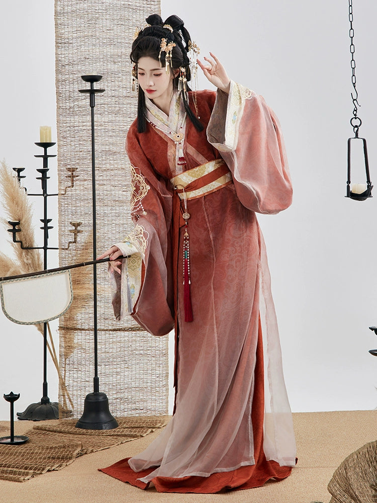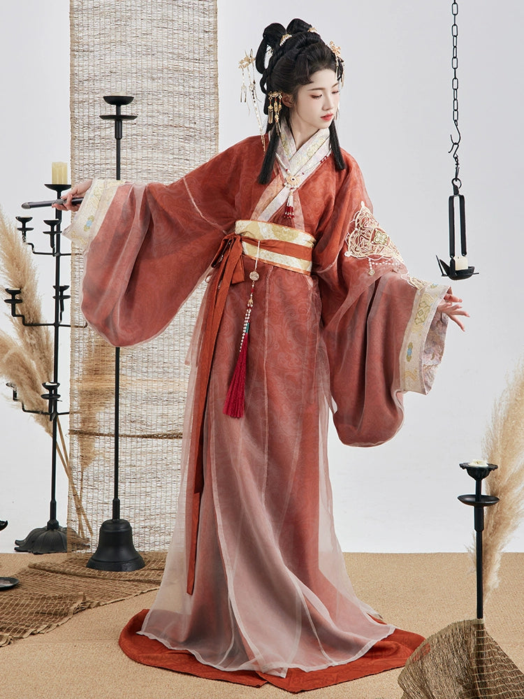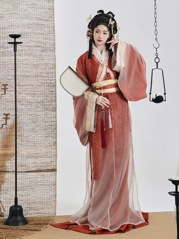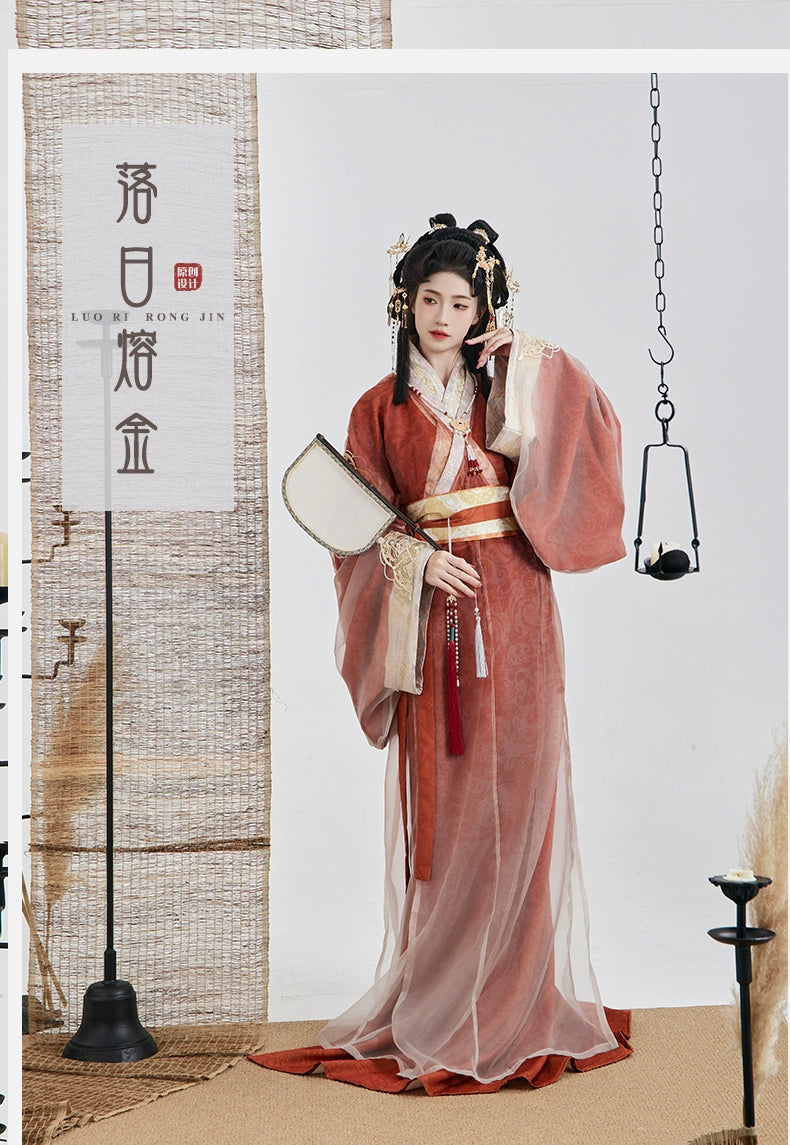 Original Hanfu Women 落日 Warring States robe with a straight hem