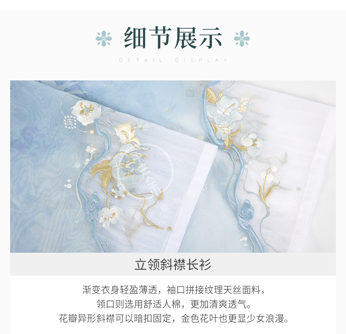 Hanfu is a handmade product, not a mass-produced product in a garment factory. In theory, there are no two completely identical Hanfu. The product details page only shows the shape of this Hanfu, especially the embroidery on the Hanfu. It is impossible for tailors to make it 100% the same. Consumers who cannot accept this please do not buy it