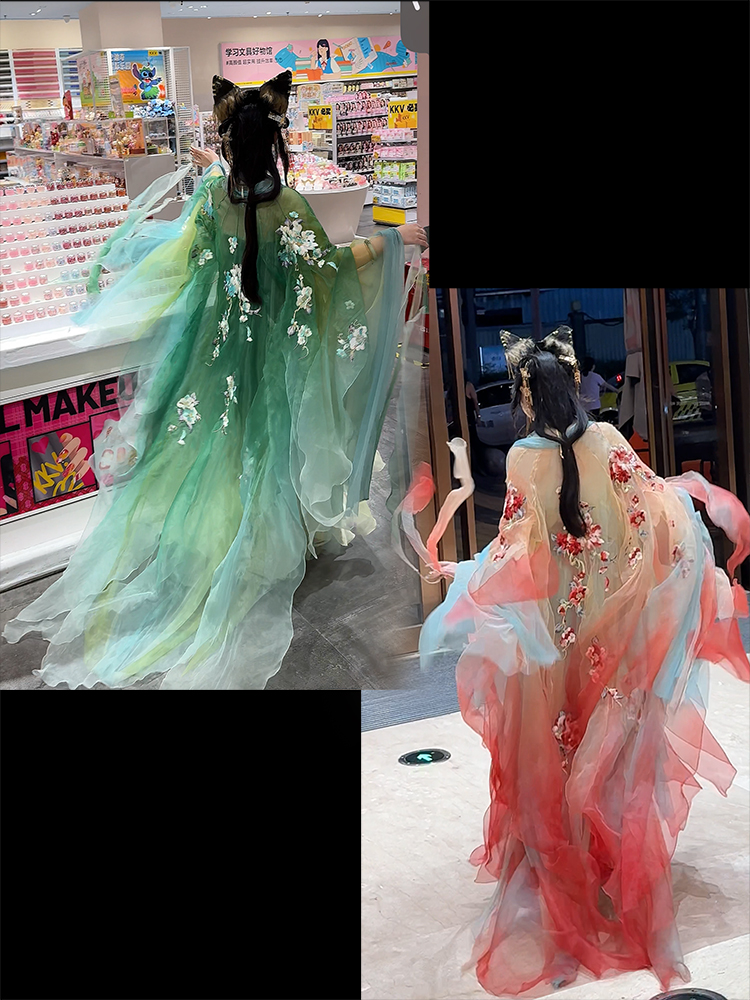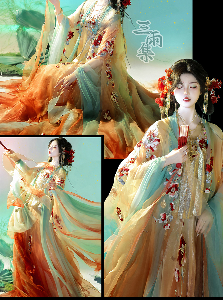 Hanfu is a handmade product, not a mass-produced product in a garment factory. In theory, there are no two completely identical Hanfu. The product details page only shows the shape of this Hanfu, especially the embroidery on the Hanfu. It is impossible for tailors to make it 100% the same. Consumers who cannot accept this please do not buy it