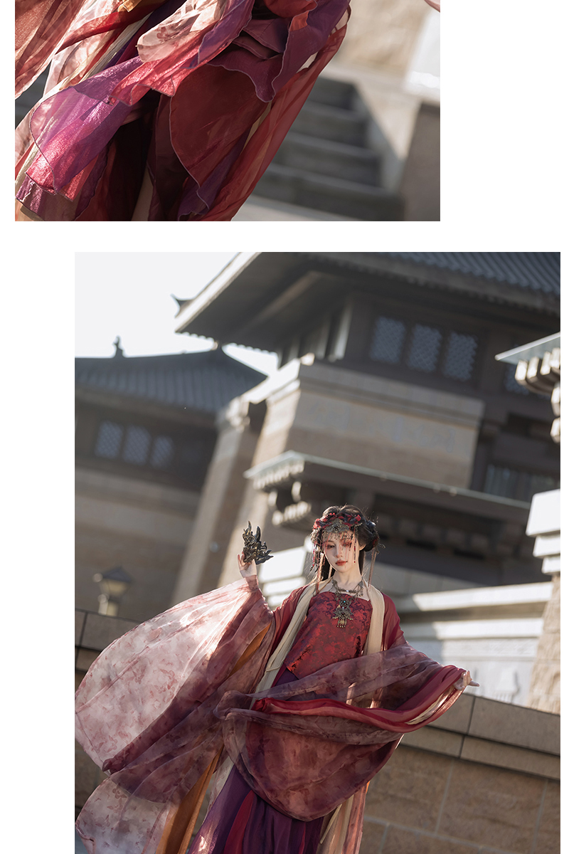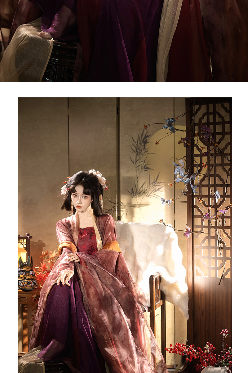 "Silk Road Reverie: Hanfu's Odyssey Through Ethnic Kaleidoscope", your fingers trace the Tang Dynasty roundel-patterned robe, suddenly discovering Sogdian ciphertext hidden in the sleeves—this is the original "Huxuan Dance Gown" An Lushan presented to Yang Guifei, the Persian craftsman whispers, "The lotus paste in this mooncake hides a Sogdian map... Follow the cumin-scented threads." When your gold-sprinkled silk shawl touches the artist's yak-hair brush, Tibetan script from the "Tubo Alliance Stele" emerges, "When Princess Wencheng's silk skirts met Tibetan wool, the Yarlung Tsangpo turned to liquid damask." Under UV light, hemline reveals Guge Kingdom mandala paintings. A Khotanese muralist tugs your sash, "Your 'lion motif' is actually our 'pomegranate dance pattern'!" Hanfu's jia xie resist-dyeing shares roots with Uyghur abrabandi tie-dye. A saukele headdress artisan transforms your bronze belt into modular instruments, left hook holding a Mongolian tovshuur lute, right loop carrying a Tajik eagle-bone flute, centerpiece displaying Xianbei gilded horse ornament, metal components auto-playing Kuchean-Twelve Muqam fusion under full moon. Under grapevines, a Ningxia embroiderer gasps at your "mountain-wave" pattern, "These 'peaks' mirror Helan Mountains, the 'surges' recreate Yellow River eddies!" Pleats woven with Tangut "Pearl in Palm" fragments become scannable with phones. As the Kyrgyz shaman's drum echoes, your composite-flower motifs morph into Yi solar calendar constellations, Khitan death mask filigree, Jurchen sea-eagle feather iridescence, unbuttoning the collar reveals Genghis Khan's multilingual travel permit. QR codes reveal 22 ethnic groups' textile DNA, body heat releases cinnamon/saffron scent capsules, sleeves extend into Mongolian wrestling sashes, each label includes Yi shaman-blessed silver plaque, Zhuang bronze drum soundwave QR, Evenki reindeer tendon thread sample. The capsule collection features Qinghai yak-down woven into Tang transparent-back gauze lined with Yangbajing geothermal film, Xianbei saddle-shaped girdle detaching into Kazakh dombra, Li barkcloth combined with Minnan mermaid silk revealing Zheng He's nautical charts when wet—"This isn't clothing—it's a UNESCO site you can wear to brunch." The cultural codex spans Dai palm-leaf sutra patterns thermo-chromically displaying Water Festival blessings, She mountain songs powering LEDs through friction, Hezhe fish-skin seams GPS-tagging Amur fishing seasons, inviting deeper exploration of Qiang watchtower stone patterns or Daur hockey elements fused with Tang polo robes.