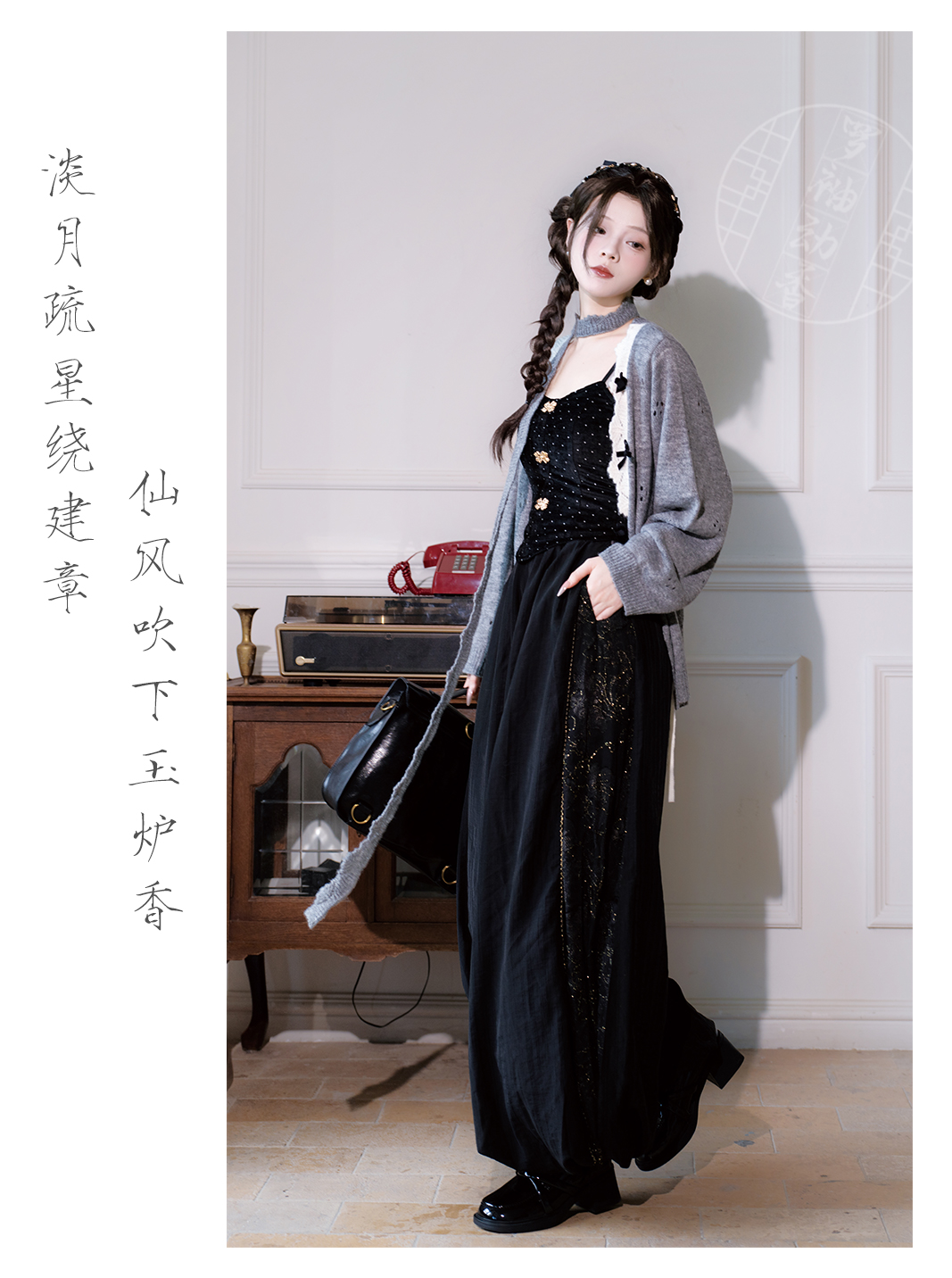 "Silk Road Reverie: Hanfu's Odyssey Through Ethnic Kaleidoscope", your fingers trace the Tang Dynasty roundel-patterned robe, suddenly discovering Sogdian ciphertext hidden in the sleeves—this is the original "Huxuan Dance Gown" An Lushan presented to Yang Guifei, the Persian craftsman whispers, "The lotus paste in this mooncake hides a Sogdian map... Follow the cumin-scented threads." When your gold-sprinkled silk shawl touches the artist's yak-hair brush, Tibetan script from the "Tubo Alliance Stele" emerges, "When Princess Wencheng's silk skirts met Tibetan wool, the Yarlung Tsangpo turned to liquid damask." Under UV light, hemline reveals Guge Kingdom mandala paintings. A Khotanese muralist tugs your sash, "Your 'lion motif' is actually our 'pomegranate dance pattern'!" Hanfu's jia xie resist-dyeing shares roots with Uyghur abrabandi tie-dye. A saukele headdress artisan transforms your bronze belt into modular instruments, left hook holding a Mongolian tovshuur lute, right loop carrying a Tajik eagle-bone flute, centerpiece displaying Xianbei gilded horse ornament, metal components auto-playing Kuchean-Twelve Muqam fusion under full moon. Under grapevines, a Ningxia embroiderer gasps at your "mountain-wave" pattern, "These 'peaks' mirror Helan Mountains, the 'surges' recreate Yellow River eddies!" Pleats woven with Tangut "Pearl in Palm" fragments become scannable with phones. As the Kyrgyz shaman's drum echoes, your composite-flower motifs morph into Yi solar calendar constellations, Khitan death mask filigree, Jurchen sea-eagle feather iridescence, unbuttoning the collar reveals Genghis Khan's multilingual travel permit. QR codes reveal 22 ethnic groups' textile DNA, body heat releases cinnamon/saffron scent capsules, sleeves extend into Mongolian wrestling sashes, each label includes Yi shaman-blessed silver plaque, Zhuang bronze drum soundwave QR, Evenki reindeer tendon thread sample. The capsule collection features Qinghai yak-down woven into Tang transparent-back gauze lined with Yangbajing geothermal film, Xianbei saddle-shaped girdle detaching into Kazakh dombra, Li barkcloth combined with Minnan mermaid silk revealing Zheng He's nautical charts when wet—"This isn't clothing—it's a UNESCO site you can wear to brunch." The cultural codex spans Dai palm-leaf sutra patterns thermo-chromically displaying Water Festival blessings, She mountain songs powering LEDs through friction, Hezhe fish-skin seams GPS-tagging Amur fishing seasons, inviting deeper exploration of Qiang watchtower stone patterns or Daur hockey elements fused with Tang polo robes.