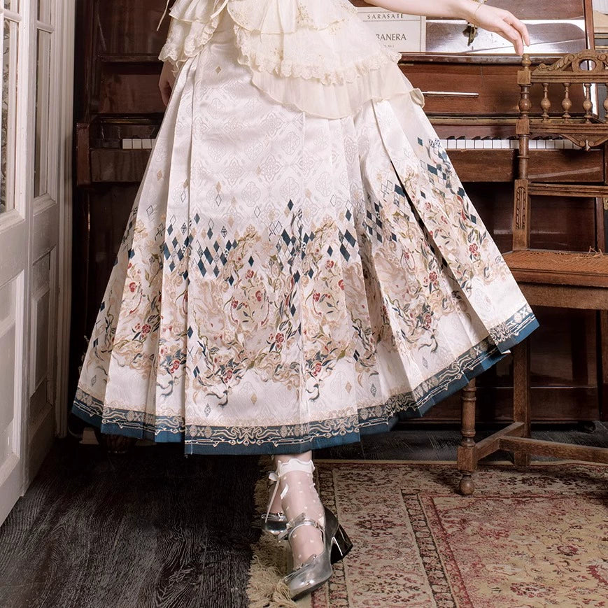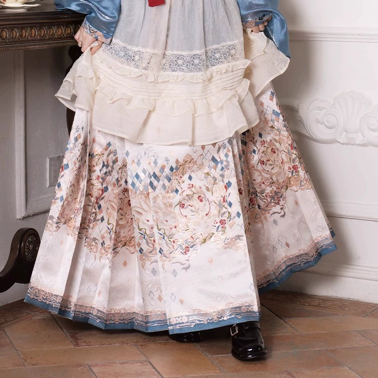 "Silk Road Reverie: Hanfu's Odyssey Through Ethnic Kaleidoscope", your fingers trace the Tang Dynasty roundel-patterned robe, suddenly discovering Sogdian ciphertext hidden in the sleeves—this is the original "Huxuan Dance Gown" An Lushan presented to Yang Guifei, the Persian craftsman whispers, "The lotus paste in this mooncake hides a Sogdian map... Follow the cumin-scented threads." When your gold-sprinkled silk shawl touches the artist's yak-hair brush, Tibetan script from the "Tubo Alliance Stele" emerges, "When Princess Wencheng's silk skirts met Tibetan wool, the Yarlung Tsangpo turned to liquid damask." Under UV light, hemline reveals Guge Kingdom mandala paintings. A Khotanese muralist tugs your sash, "Your 'lion motif' is actually our 'pomegranate dance pattern'!" Hanfu's jia xie resist-dyeing shares roots with Uyghur abrabandi tie-dye. A saukele headdress artisan transforms your bronze belt into modular instruments, left hook holding a Mongolian tovshuur lute, right loop carrying a Tajik eagle-bone flute, centerpiece displaying Xianbei gilded horse ornament, metal components auto-playing Kuchean-Twelve Muqam fusion under full moon. Under grapevines, a Ningxia embroiderer gasps at your "mountain-wave" pattern, "These 'peaks' mirror Helan Mountains, the 'surges' recreate Yellow River eddies!" Pleats woven with Tangut "Pearl in Palm" fragments become scannable with phones. As the Kyrgyz shaman's drum echoes, your composite-flower motifs morph into Yi solar calendar constellations, Khitan death mask filigree, Jurchen sea-eagle feather iridescence, unbuttoning the collar reveals Genghis Khan's multilingual travel permit. QR codes reveal 22 ethnic groups' textile DNA, body heat releases cinnamon/saffron scent capsules, sleeves extend into Mongolian wrestling sashes, each label includes Yi shaman-blessed silver plaque, Zhuang bronze drum soundwave QR, Evenki reindeer tendon thread sample. The capsule collection features Qinghai yak-down woven into Tang transparent-back gauze lined with Yangbajing geothermal film, Xianbei saddle-shaped girdle detaching into Kazakh dombra, Li barkcloth combined with Minnan mermaid silk revealing Zheng He's nautical charts when wet—"This isn't clothing—it's a UNESCO site you can wear to brunch." The cultural codex spans Dai palm-leaf sutra patterns thermo-chromically displaying Water Festival blessings, She mountain songs powering LEDs through friction, Hezhe fish-skin seams GPS-tagging Amur fishing seasons, inviting deeper exploration of Qiang watchtower stone patterns or Daur hockey elements fused with Tang polo robes.