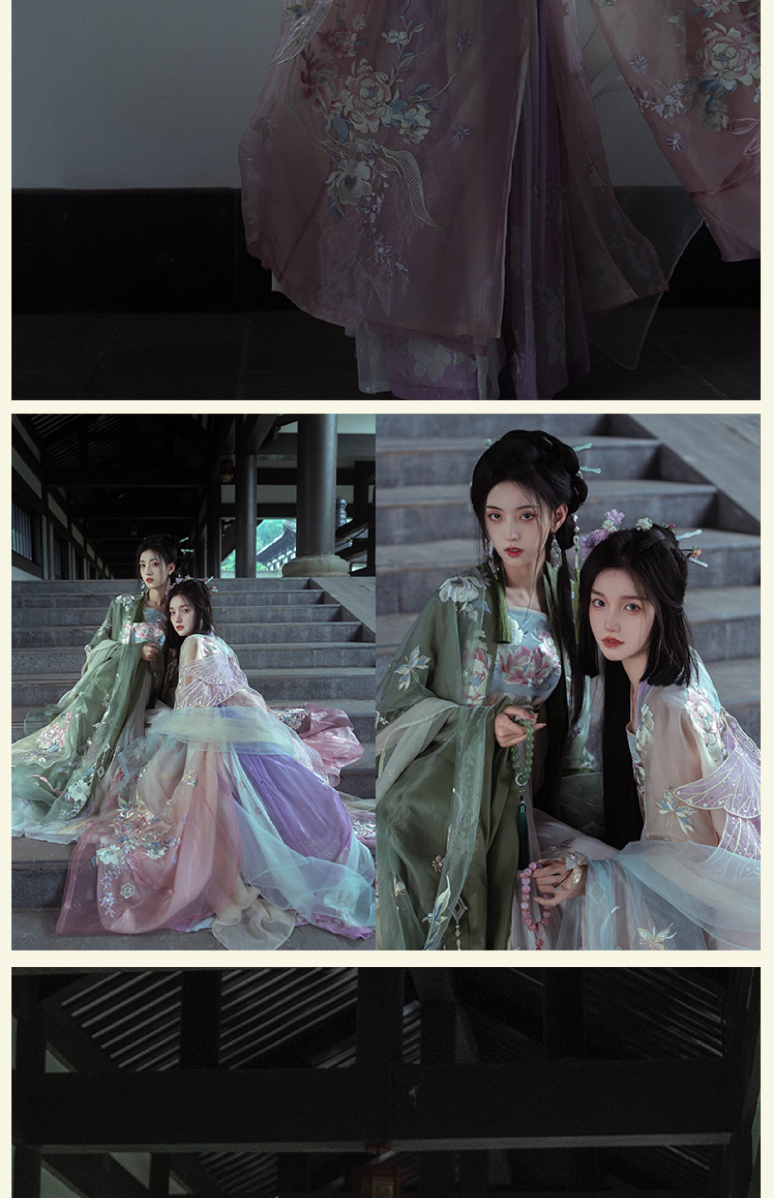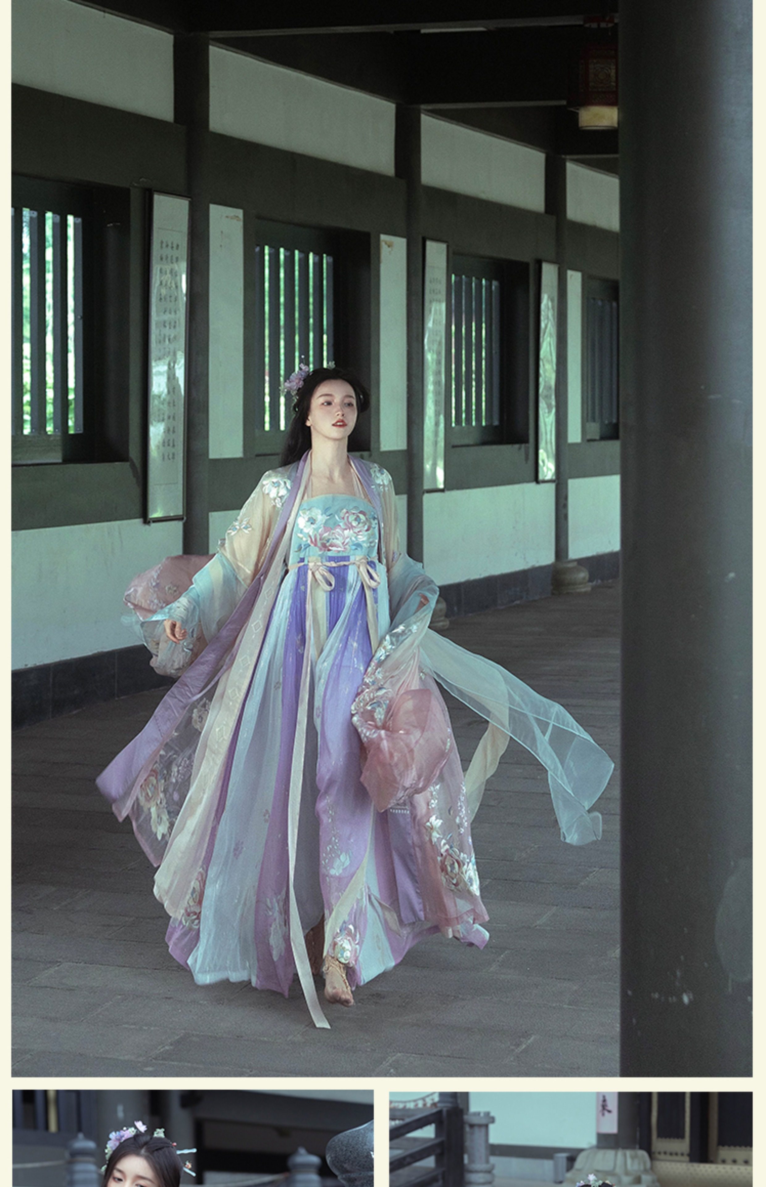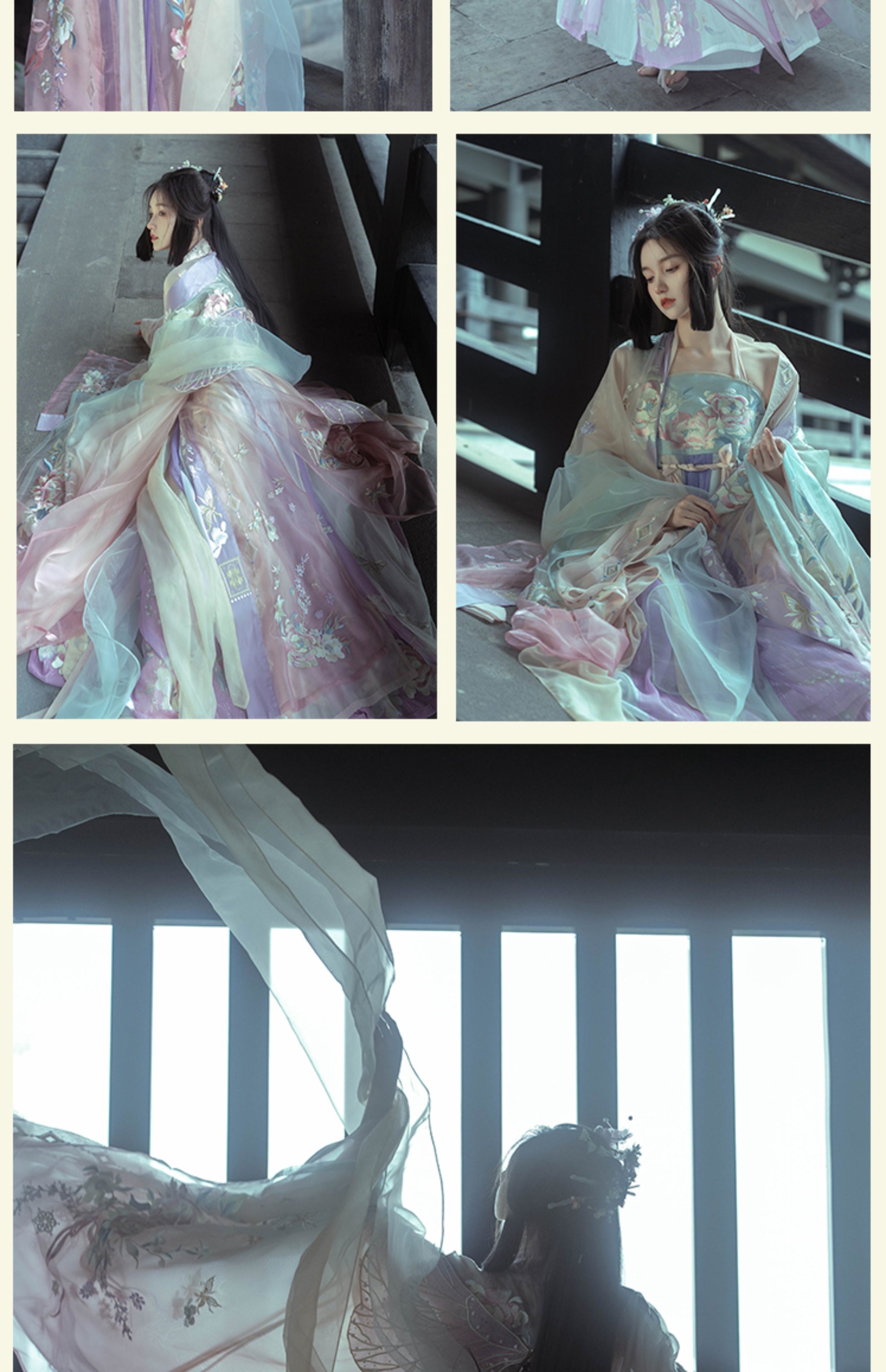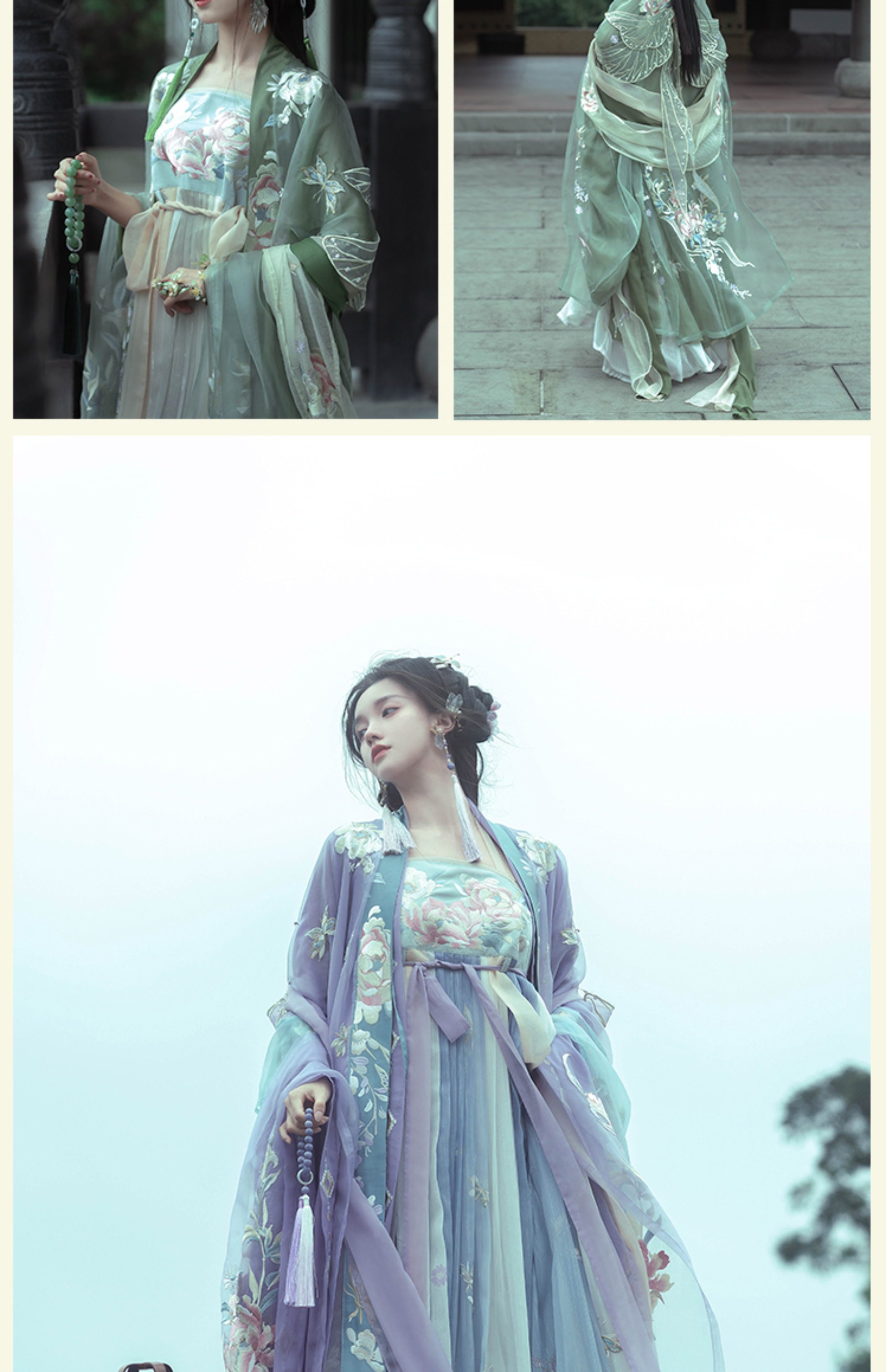 "Silk Road Reverie: Hanfu's Odyssey Through Ethnic Kaleidoscope", your fingers trace the Tang Dynasty roundel-patterned robe, suddenly discovering Sogdian ciphertext hidden in the sleeves—this is the original "Huxuan Dance Gown" An Lushan presented to Yang Guifei, the Persian craftsman whispers, "The lotus paste in this mooncake hides a Sogdian map... Follow the cumin-scented threads." When your gold-sprinkled silk shawl touches the artist's yak-hair brush, Tibetan script from the "Tubo Alliance Stele" emerges, "When Princess Wencheng's silk skirts met Tibetan wool, the Yarlung Tsangpo turned to liquid damask." Under UV light, hemline reveals Guge Kingdom mandala paintings. A Khotanese muralist tugs your sash, "Your 'lion motif' is actually our 'pomegranate dance pattern'!" Hanfu's jia xie resist-dyeing shares roots with Uyghur abrabandi tie-dye. A saukele headdress artisan transforms your bronze belt into modular instruments, left hook holding a Mongolian tovshuur lute, right loop carrying a Tajik eagle-bone flute, centerpiece displaying Xianbei gilded horse ornament, metal components auto-playing Kuchean-Twelve Muqam fusion under full moon. Under grapevines, a Ningxia embroiderer gasps at your "mountain-wave" pattern, "These 'peaks' mirror Helan Mountains, the 'surges' recreate Yellow River eddies!" Pleats woven with Tangut "Pearl in Palm" fragments become scannable with phones. As the Kyrgyz shaman's drum echoes, your composite-flower motifs morph into Yi solar calendar constellations, Khitan death mask filigree, Jurchen sea-eagle feather iridescence, unbuttoning the collar reveals Genghis Khan's multilingual travel permit. QR codes reveal 22 ethnic groups' textile DNA, body heat releases cinnamon/saffron scent capsules, sleeves extend into Mongolian wrestling sashes, each label includes Yi shaman-blessed silver plaque, Zhuang bronze drum soundwave QR, Evenki reindeer tendon thread sample. The capsule collection features Qinghai yak-down woven into Tang transparent-back gauze lined with Yangbajing geothermal film, Xianbei saddle-shaped girdle detaching into Kazakh dombra, Li barkcloth combined with Minnan mermaid silk revealing Zheng He's nautical charts when wet—"This isn't clothing—it's a UNESCO site you can wear to brunch." The cultural codex spans Dai palm-leaf sutra patterns thermo-chromically displaying Water Festival blessings, She mountain songs powering LEDs through friction, Hezhe fish-skin seams GPS-tagging Amur fishing seasons, inviting deeper exploration of Qiang watchtower stone patterns or Daur hockey elements fused with Tang polo robes.