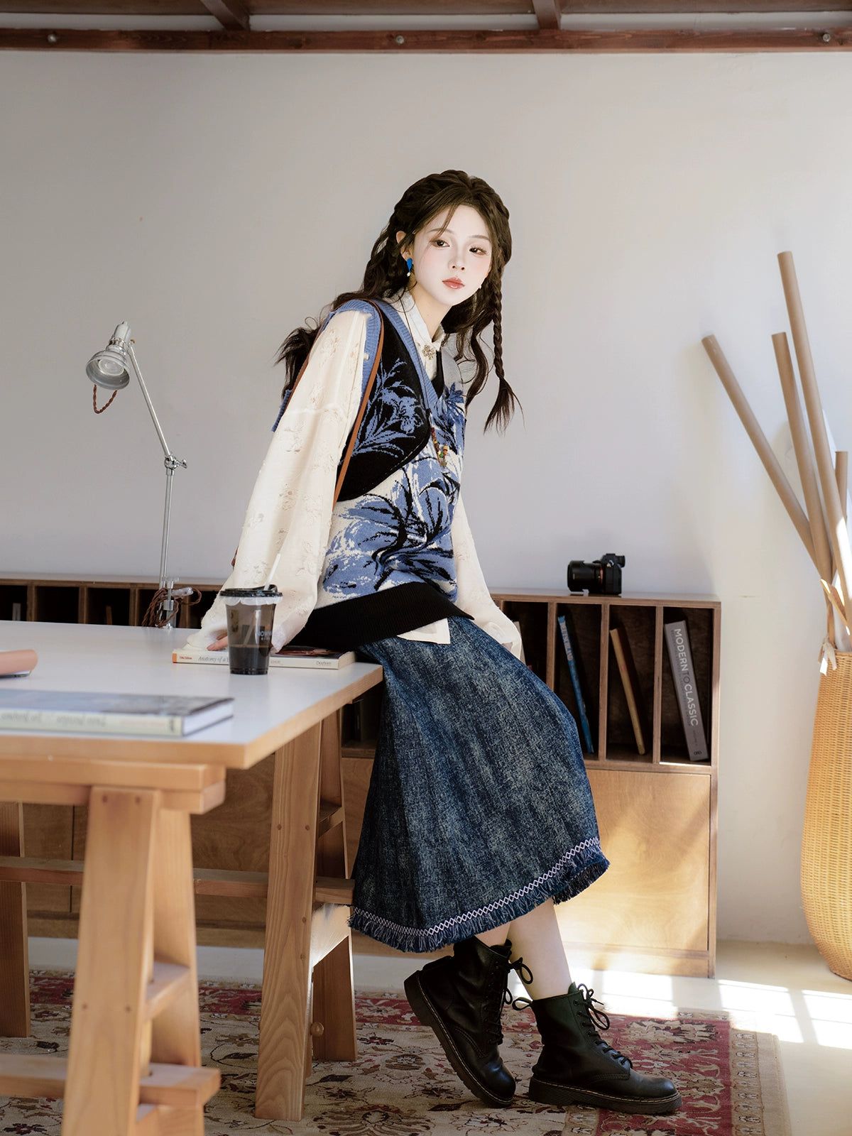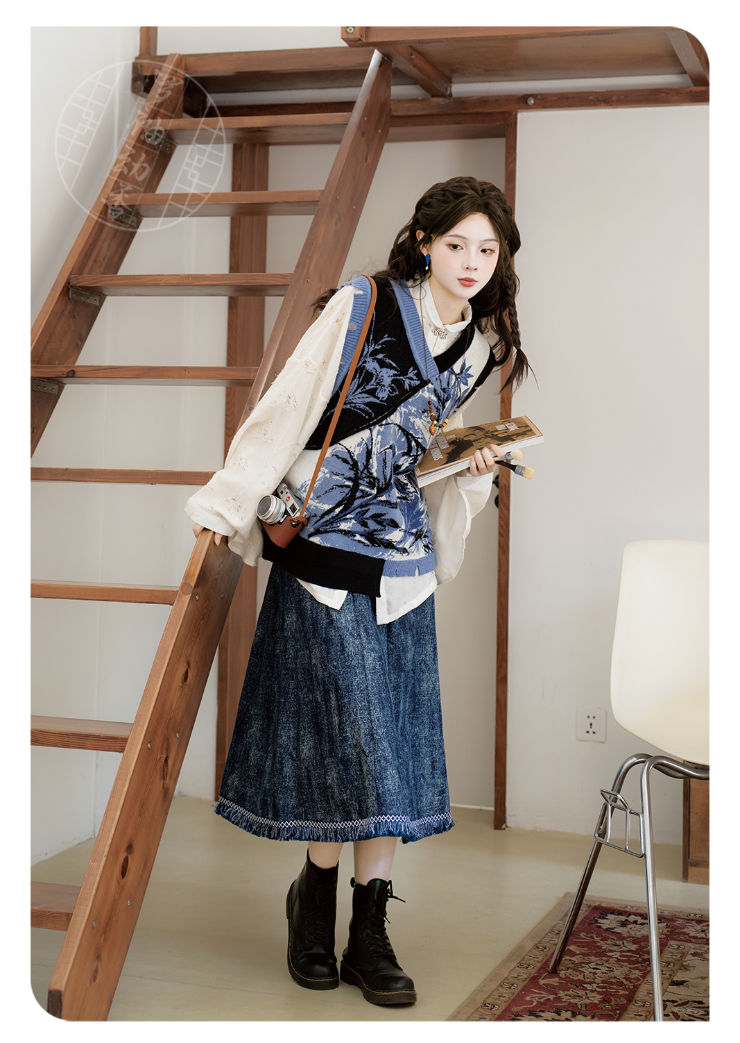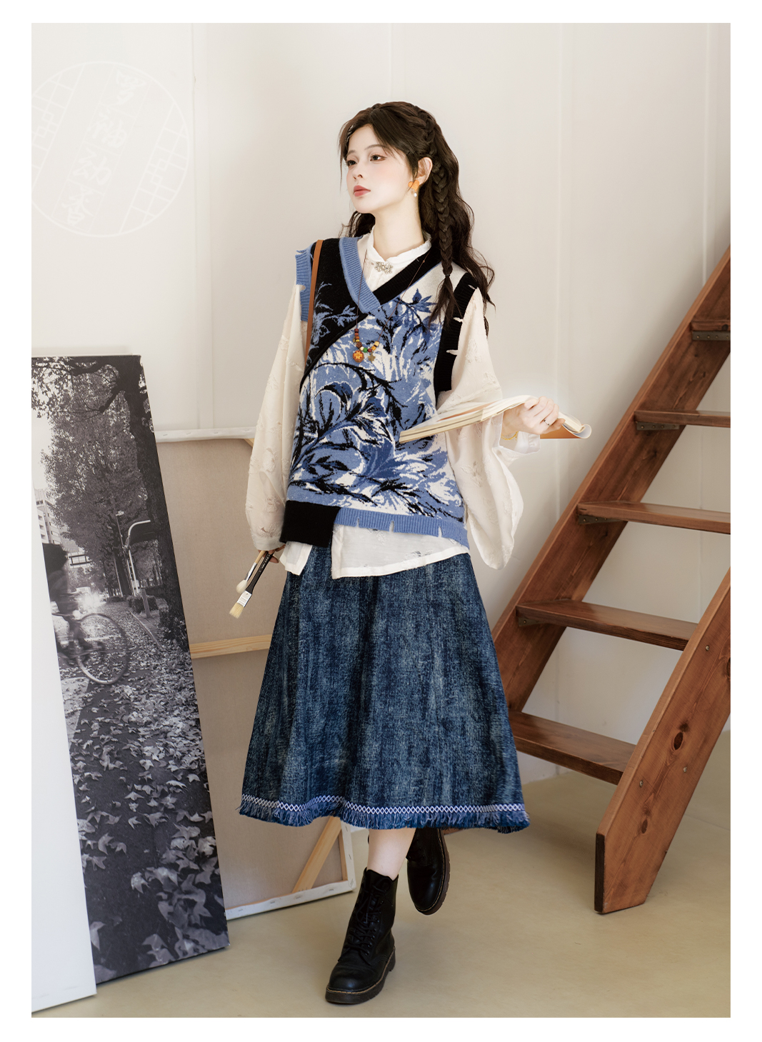 "Silk Road Reverie: Hanfu's Odyssey Through Ethnic Kaleidoscope", your fingers trace the Tang Dynasty roundel-patterned robe, suddenly discovering Sogdian ciphertext hidden in the sleeves—this is the original "Huxuan Dance Gown" An Lushan presented to Yang Guifei, the Persian craftsman whispers, "The lotus paste in this mooncake hides a Sogdian map... Follow the cumin-scented threads." When your gold-sprinkled silk shawl touches the artist's yak-hair brush, Tibetan script from the "Tubo Alliance Stele" emerges, "When Princess Wencheng's silk skirts met Tibetan wool, the Yarlung Tsangpo turned to liquid damask." Under UV light, hemline reveals Guge Kingdom mandala paintings. A Khotanese muralist tugs your sash, "Your 'lion motif' is actually our 'pomegranate dance pattern'!" Hanfu's jia xie resist-dyeing shares roots with Uyghur abrabandi tie-dye. A saukele headdress artisan transforms your bronze belt into modular instruments, left hook holding a Mongolian tovshuur lute, right loop carrying a Tajik eagle-bone flute, centerpiece displaying Xianbei gilded horse ornament, metal components auto-playing Kuchean-Twelve Muqam fusion under full moon. Under grapevines, a Ningxia embroiderer gasps at your "mountain-wave" pattern, "These 'peaks' mirror Helan Mountains, the 'surges' recreate Yellow River eddies!" Pleats woven with Tangut "Pearl in Palm" fragments become scannable with phones. As the Kyrgyz shaman's drum echoes, your composite-flower motifs morph into Yi solar calendar constellations, Khitan death mask filigree, Jurchen sea-eagle feather iridescence, unbuttoning the collar reveals Genghis Khan's multilingual travel permit. QR codes reveal 22 ethnic groups' textile DNA, body heat releases cinnamon/saffron scent capsules, sleeves extend into Mongolian wrestling sashes, each label includes Yi shaman-blessed silver plaque, Zhuang bronze drum soundwave QR, Evenki reindeer tendon thread sample. The capsule collection features Qinghai yak-down woven into Tang transparent-back gauze lined with Yangbajing geothermal film, Xianbei saddle-shaped girdle detaching into Kazakh dombra, Li barkcloth combined with Minnan mermaid silk revealing Zheng He's nautical charts when wet—"This isn't clothing—it's a UNESCO site you can wear to brunch." The cultural codex spans Dai palm-leaf sutra patterns thermo-chromically displaying Water Festival blessings, She mountain songs powering LEDs through friction, Hezhe fish-skin seams GPS-tagging Amur fishing seasons, inviting deeper exploration of Qiang watchtower stone patterns or Daur hockey elements fused with Tang polo robes.