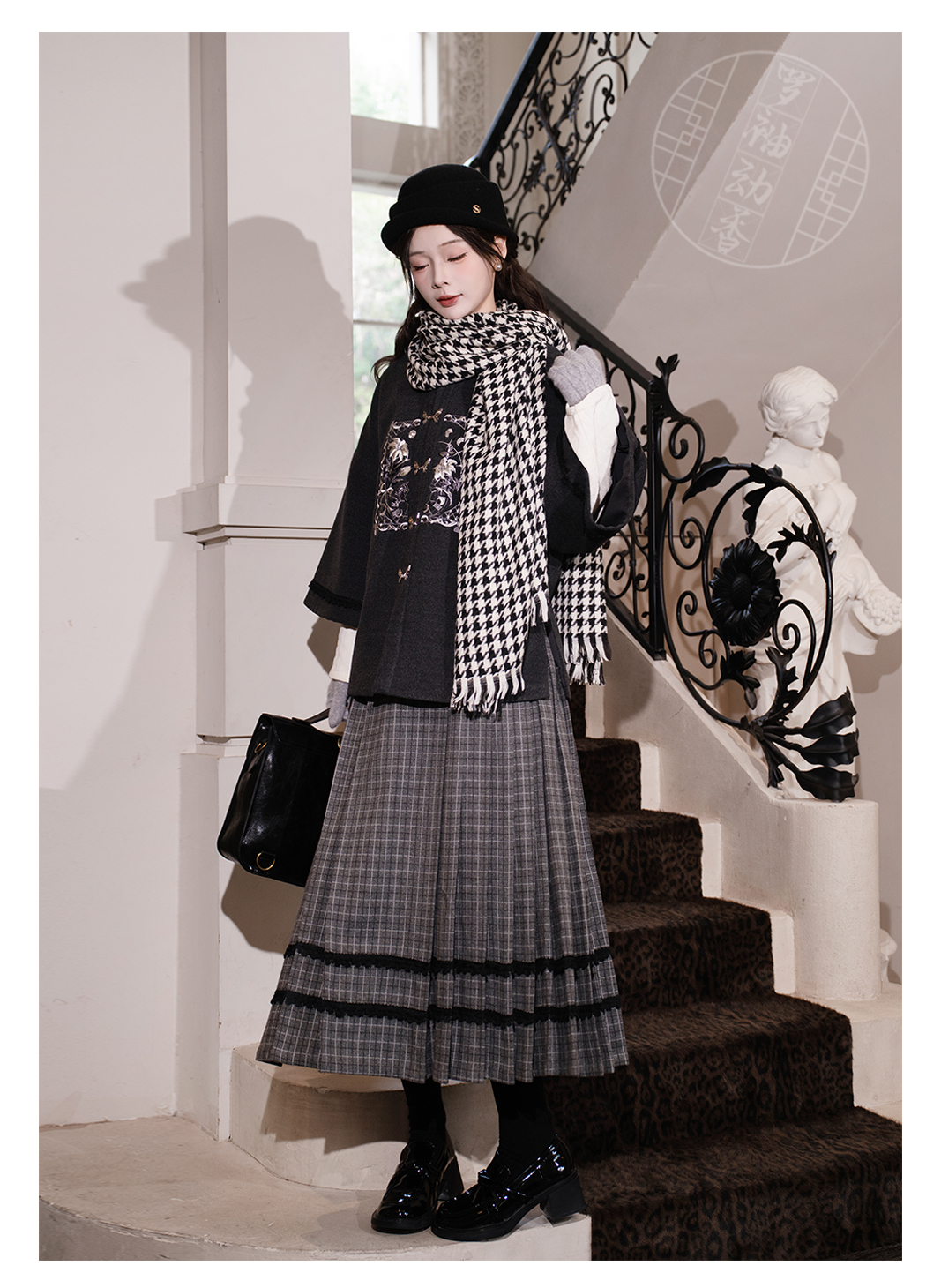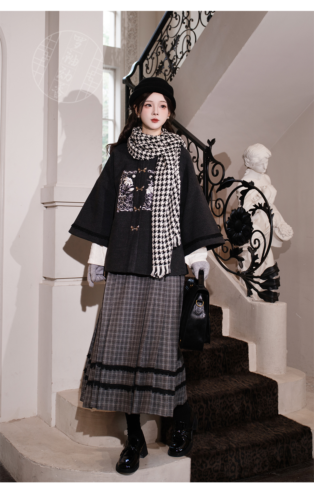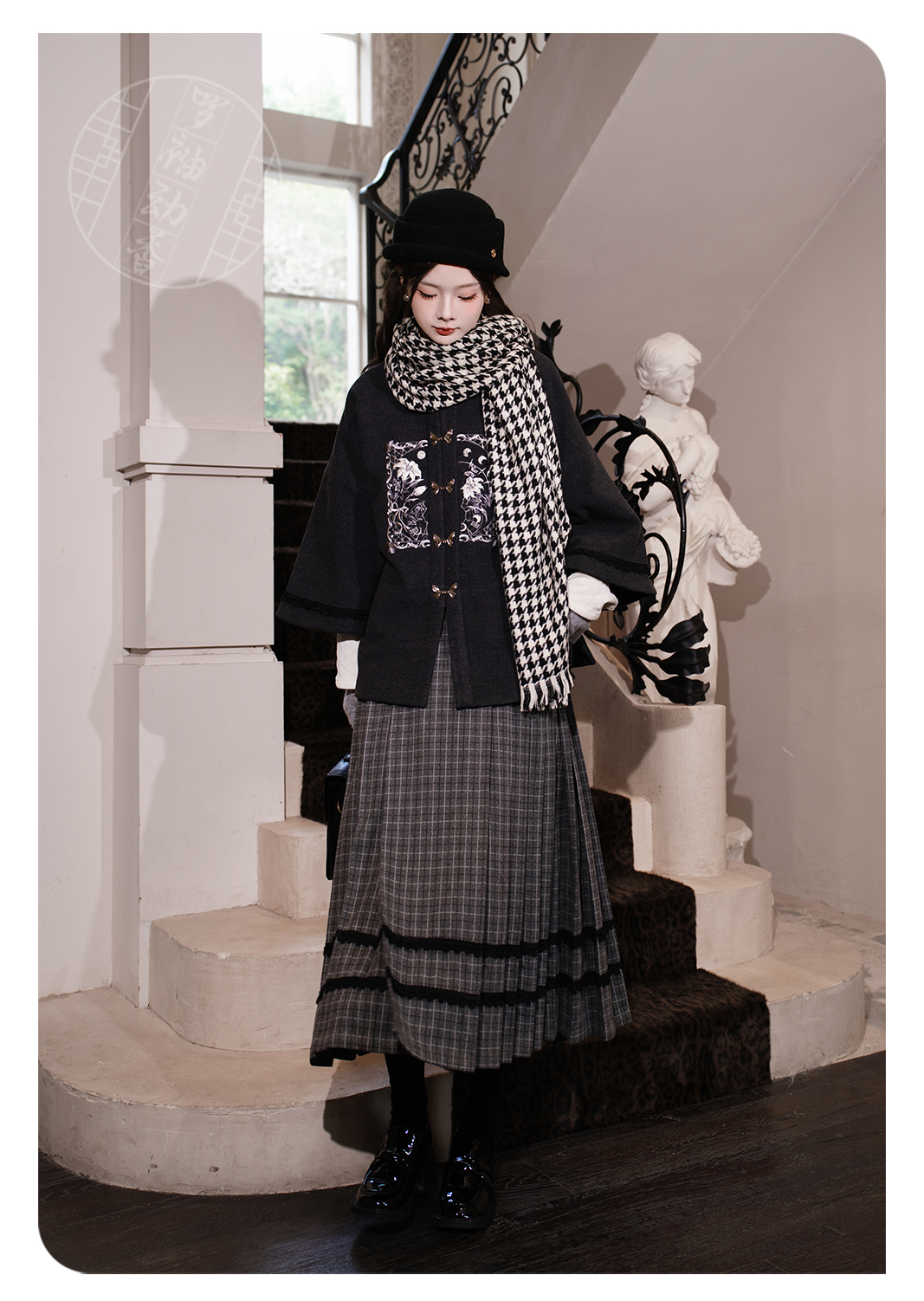 "Silk Road Reverie: Hanfu's Odyssey Through Ethnic Kaleidoscope", your fingers trace the Tang Dynasty roundel-patterned robe, suddenly discovering Sogdian ciphertext hidden in the sleeves—this is the original "Huxuan Dance Gown" An Lushan presented to Yang Guifei, the Persian craftsman whispers, "The lotus paste in this mooncake hides a Sogdian map... Follow the cumin-scented threads." When your gold-sprinkled silk shawl touches the artist's yak-hair brush, Tibetan script from the "Tubo Alliance Stele" emerges, "When Princess Wencheng's silk skirts met Tibetan wool, the Yarlung Tsangpo turned to liquid damask." Under UV light, hemline reveals Guge Kingdom mandala paintings. A Khotanese muralist tugs your sash, "Your 'lion motif' is actually our 'pomegranate dance pattern'!" Hanfu's jia xie resist-dyeing shares roots with Uyghur abrabandi tie-dye. A saukele headdress artisan transforms your bronze belt into modular instruments, left hook holding a Mongolian tovshuur lute, right loop carrying a Tajik eagle-bone flute, centerpiece displaying Xianbei gilded horse ornament, metal components auto-playing Kuchean-Twelve Muqam fusion under full moon. Under grapevines, a Ningxia embroiderer gasps at your "mountain-wave" pattern, "These 'peaks' mirror Helan Mountains, the 'surges' recreate Yellow River eddies!" Pleats woven with Tangut "Pearl in Palm" fragments become scannable with phones. As the Kyrgyz shaman's drum echoes, your composite-flower motifs morph into Yi solar calendar constellations, Khitan death mask filigree, Jurchen sea-eagle feather iridescence, unbuttoning the collar reveals Genghis Khan's multilingual travel permit. QR codes reveal 22 ethnic groups' textile DNA, body heat releases cinnamon/saffron scent capsules, sleeves extend into Mongolian wrestling sashes, each label includes Yi shaman-blessed silver plaque, Zhuang bronze drum soundwave QR, Evenki reindeer tendon thread sample. The capsule collection features Qinghai yak-down woven into Tang transparent-back gauze lined with Yangbajing geothermal film, Xianbei saddle-shaped girdle detaching into Kazakh dombra, Li barkcloth combined with Minnan mermaid silk revealing Zheng He's nautical charts when wet—"This isn't clothing—it's a UNESCO site you can wear to brunch." The cultural codex spans Dai palm-leaf sutra patterns thermo-chromically displaying Water Festival blessings, She mountain songs powering LEDs through friction, Hezhe fish-skin seams GPS-tagging Amur fishing seasons, inviting deeper exploration of Qiang watchtower stone patterns or Daur hockey elements fused with Tang polo robes.