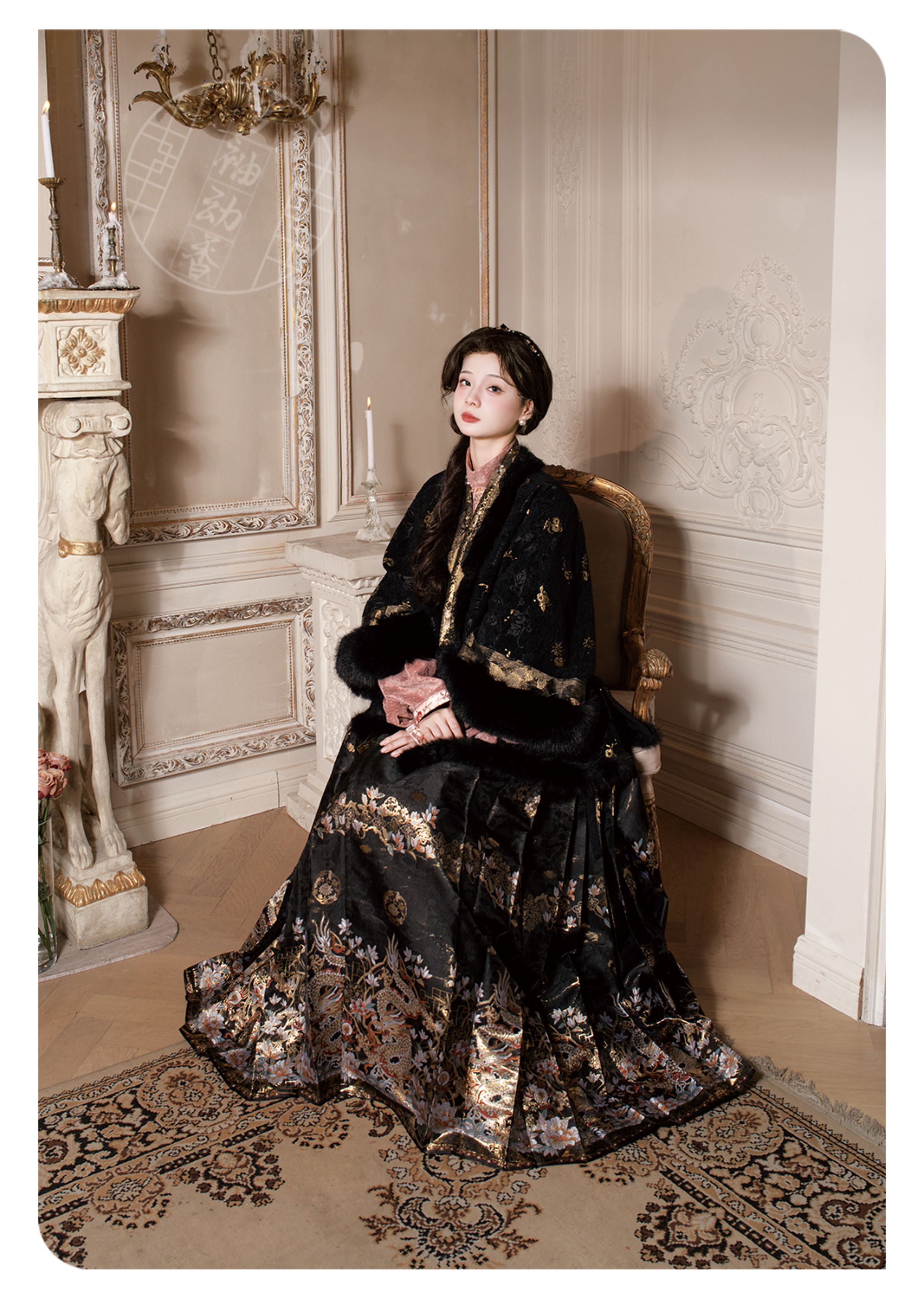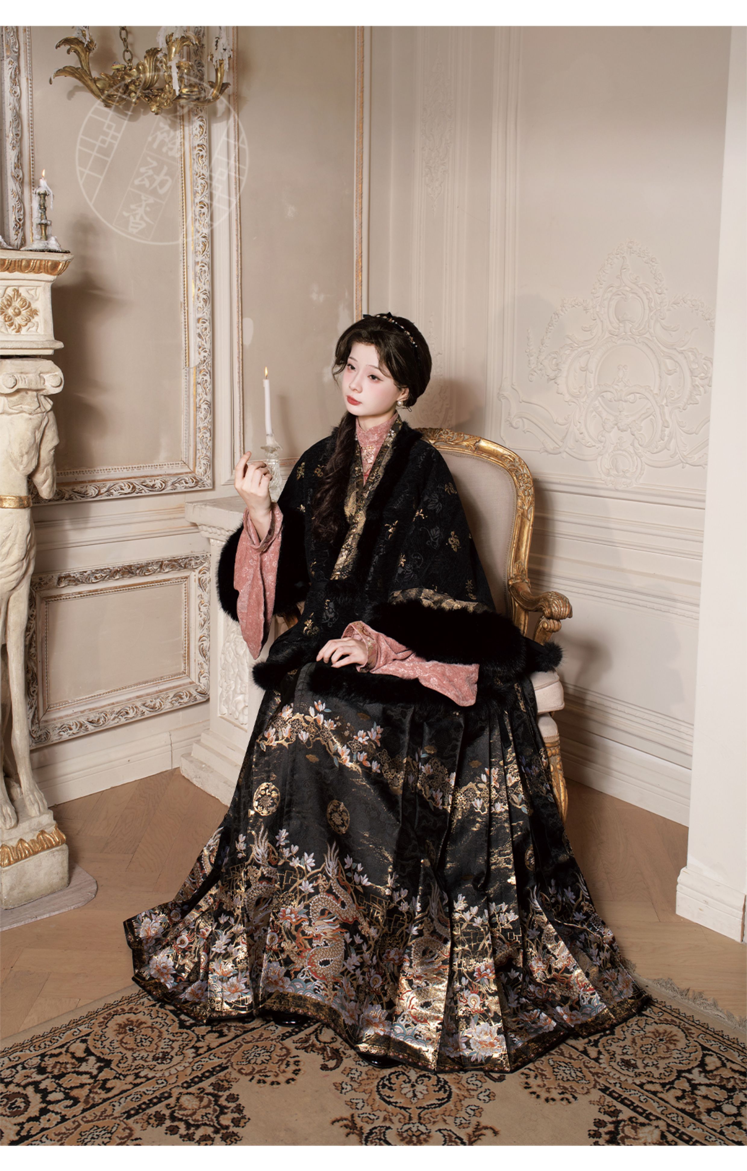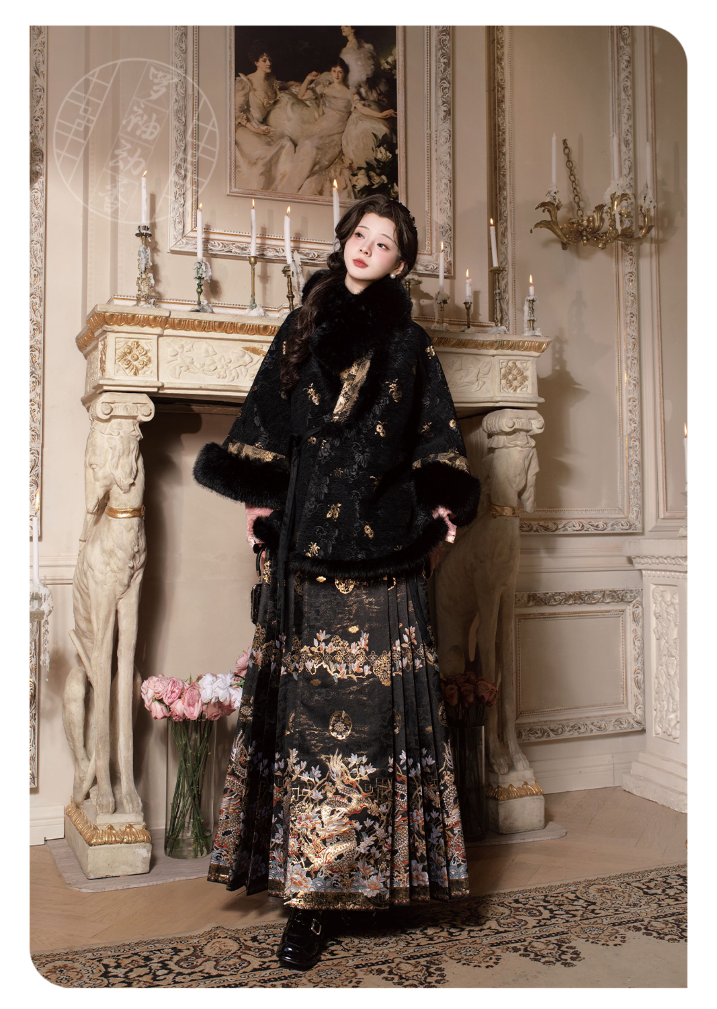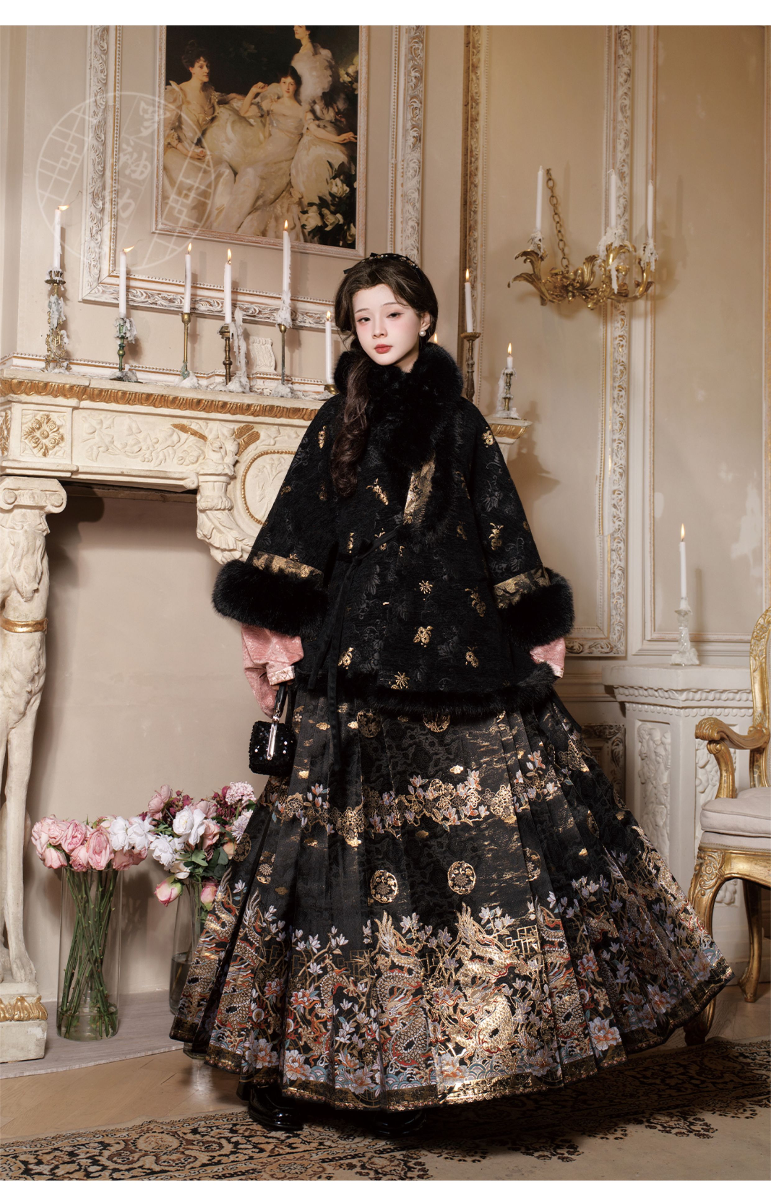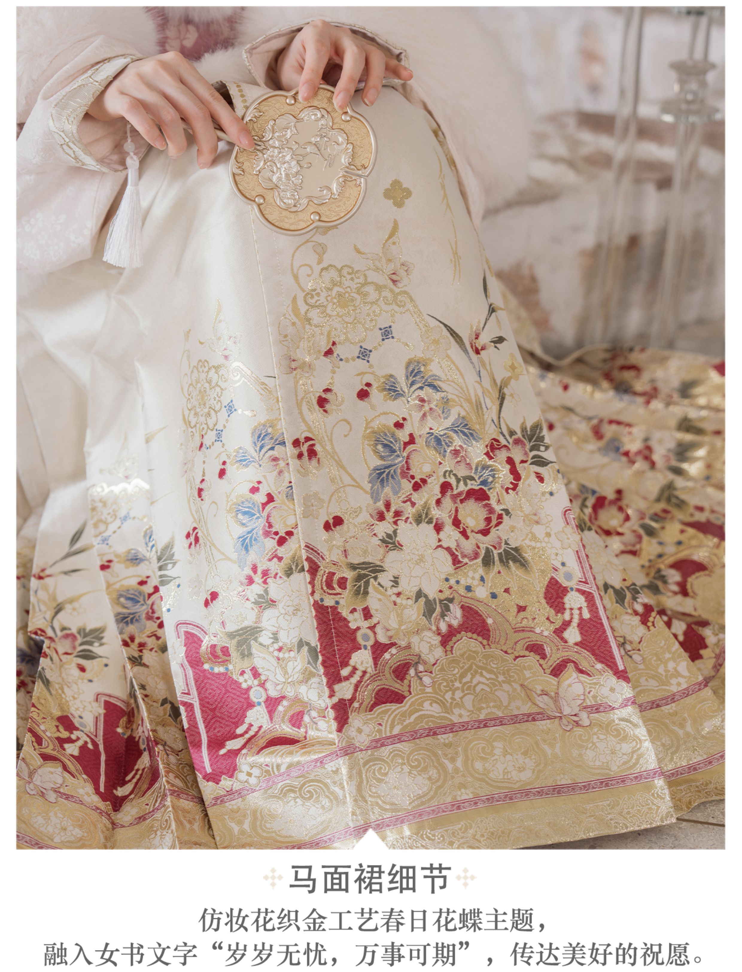"Silk Road Reverie: Hanfu's Odyssey Through Ethnic Kaleidoscope", your fingers trace the Tang Dynasty roundel-patterned robe, suddenly discovering Sogdian ciphertext hidden in the sleeves—this is the original "Huxuan Dance Gown" An Lushan presented to Yang Guifei, the Persian craftsman whispers, "The lotus paste in this mooncake hides a Sogdian map... Follow the cumin-scented threads." When your gold-sprinkled silk shawl touches the artist's yak-hair brush, Tibetan script from the "Tubo Alliance Stele" emerges, "When Princess Wencheng's silk skirts met Tibetan wool, the Yarlung Tsangpo turned to liquid damask." Under UV light, hemline reveals Guge Kingdom mandala paintings. A Khotanese muralist tugs your sash, "Your 'lion motif' is actually our 'pomegranate dance pattern'!" Hanfu's jia xie resist-dyeing shares roots with Uyghur abrabandi tie-dye. A saukele headdress artisan transforms your bronze belt into modular instruments, left hook holding a Mongolian tovshuur lute, right loop carrying a Tajik eagle-bone flute, centerpiece displaying Xianbei gilded horse ornament, metal components auto-playing Kuchean-Twelve Muqam fusion under full moon. Under grapevines, a Ningxia embroiderer gasps at your "mountain-wave" pattern, "These 'peaks' mirror Helan Mountains, the 'surges' recreate Yellow River eddies!" Pleats woven with Tangut "Pearl in Palm" fragments become scannable with phones. As the Kyrgyz shaman's drum echoes, your composite-flower motifs morph into Yi solar calendar constellations, Khitan death mask filigree, Jurchen sea-eagle feather iridescence, unbuttoning the collar reveals Genghis Khan's multilingual travel permit. QR codes reveal 22 ethnic groups' textile DNA, body heat releases cinnamon/saffron scent capsules, sleeves extend into Mongolian wrestling sashes, each label includes Yi shaman-blessed silver plaque, Zhuang bronze drum soundwave QR, Evenki reindeer tendon thread sample. The capsule collection features Qinghai yak-down woven into Tang transparent-back gauze lined with Yangbajing geothermal film, Xianbei saddle-shaped girdle detaching into Kazakh dombra, Li barkcloth combined with Minnan mermaid silk revealing Zheng He's nautical charts when wet—"This isn't clothing—it's a UNESCO site you can wear to brunch." The cultural codex spans Dai palm-leaf sutra patterns thermo-chromically displaying Water Festival blessings, She mountain songs powering LEDs through friction, Hezhe fish-skin seams GPS-tagging Amur fishing seasons, inviting deeper exploration of Qiang watchtower stone patterns or Daur hockey elements fused with Tang polo robes.