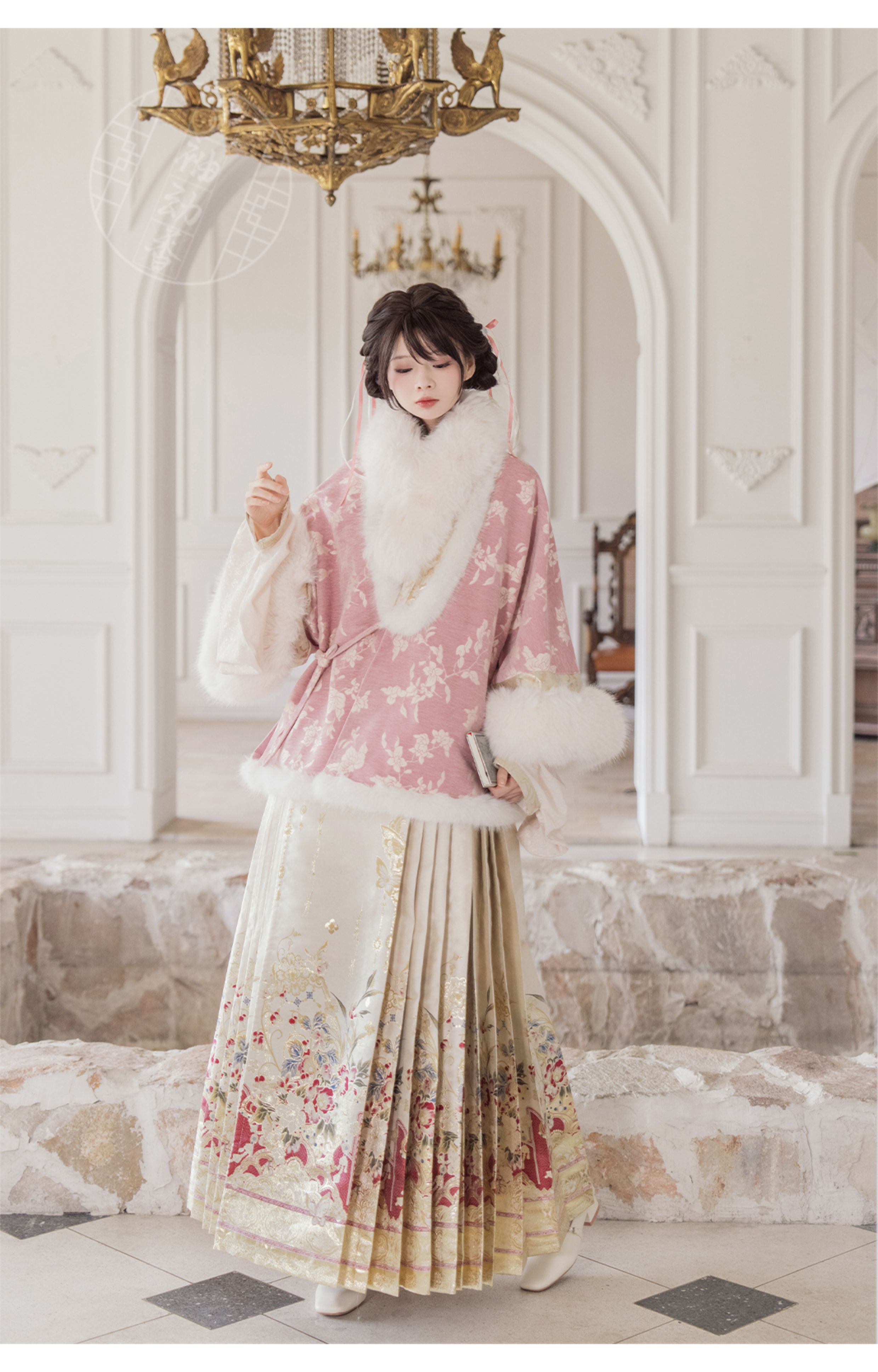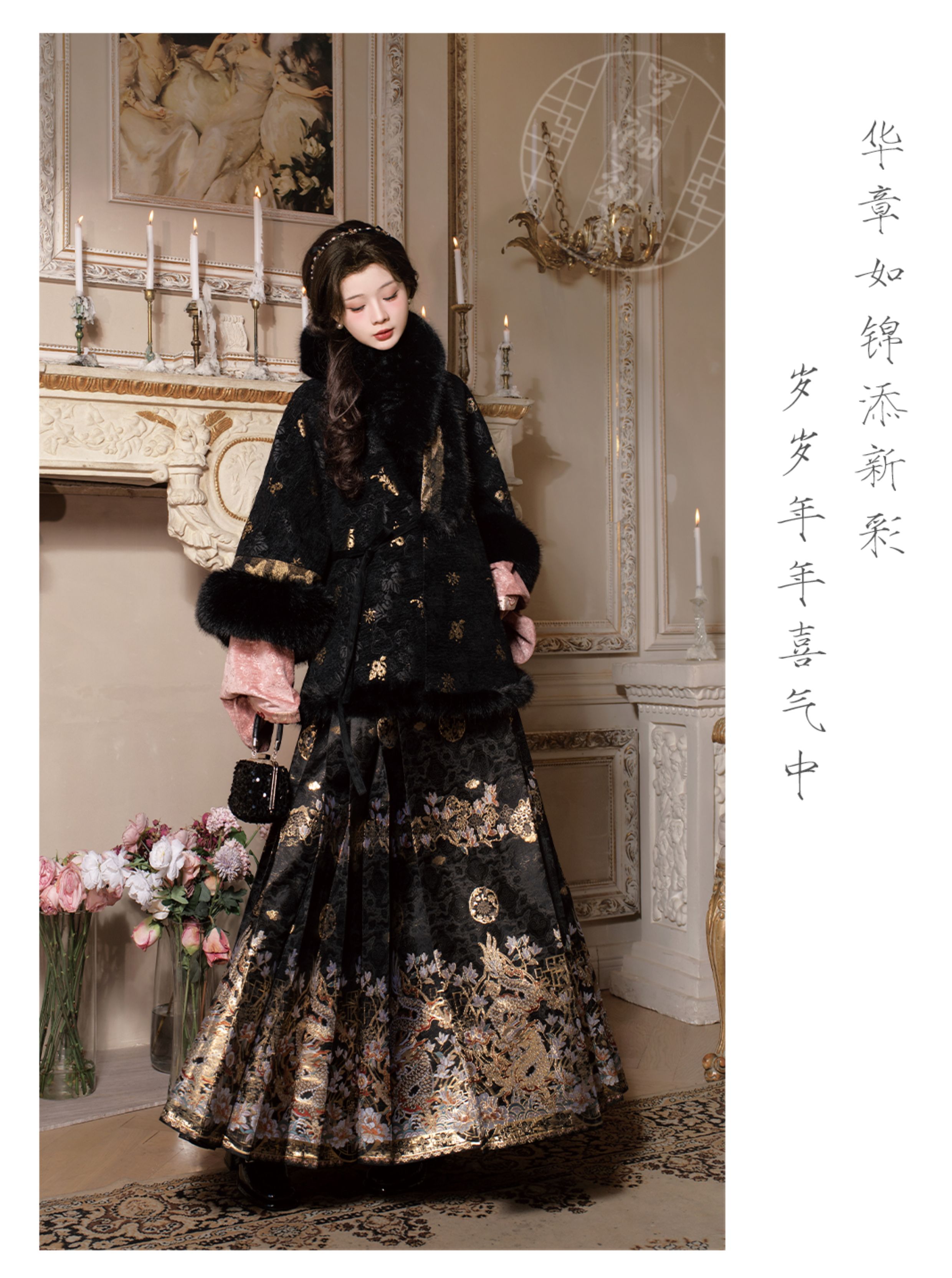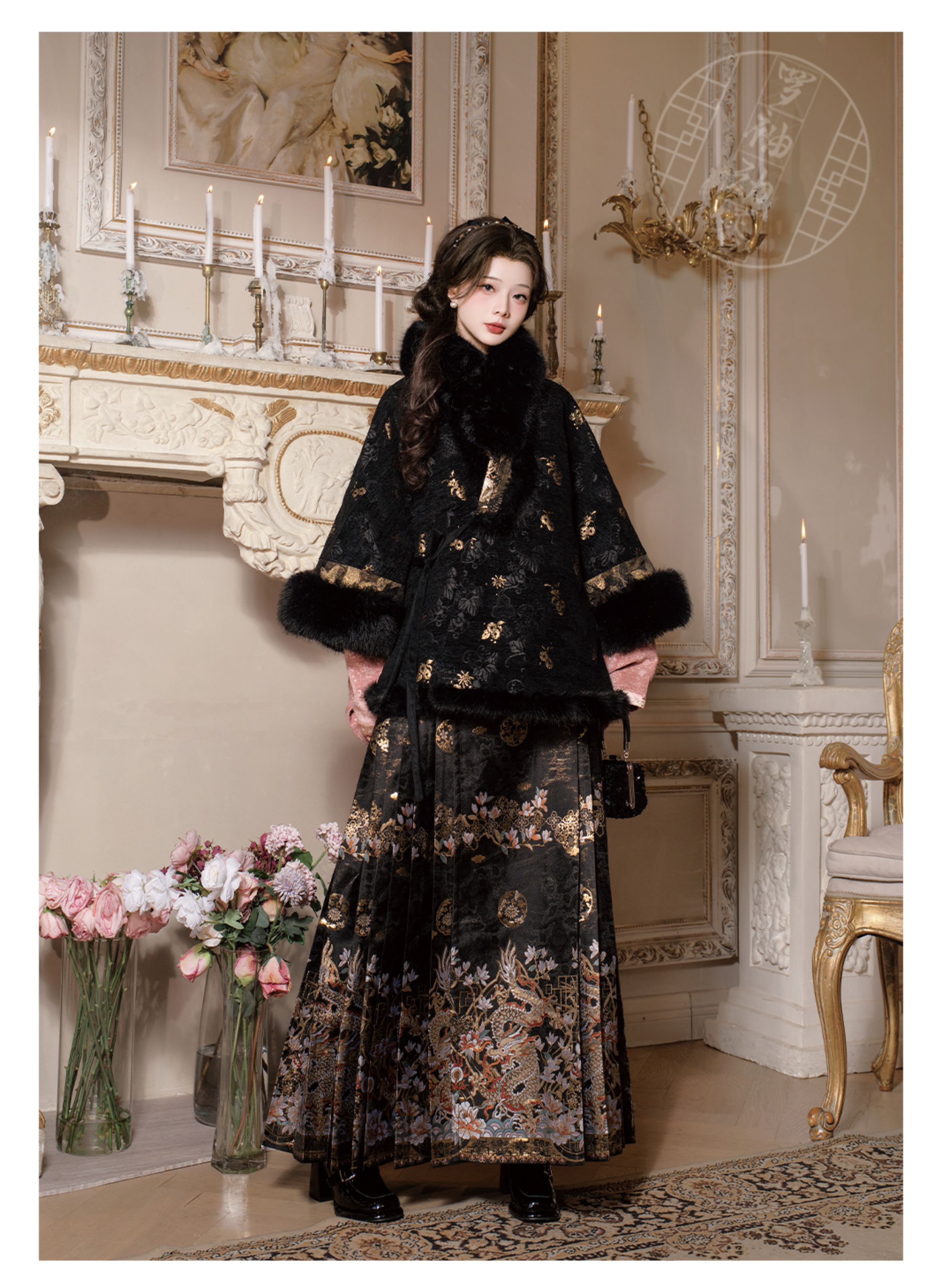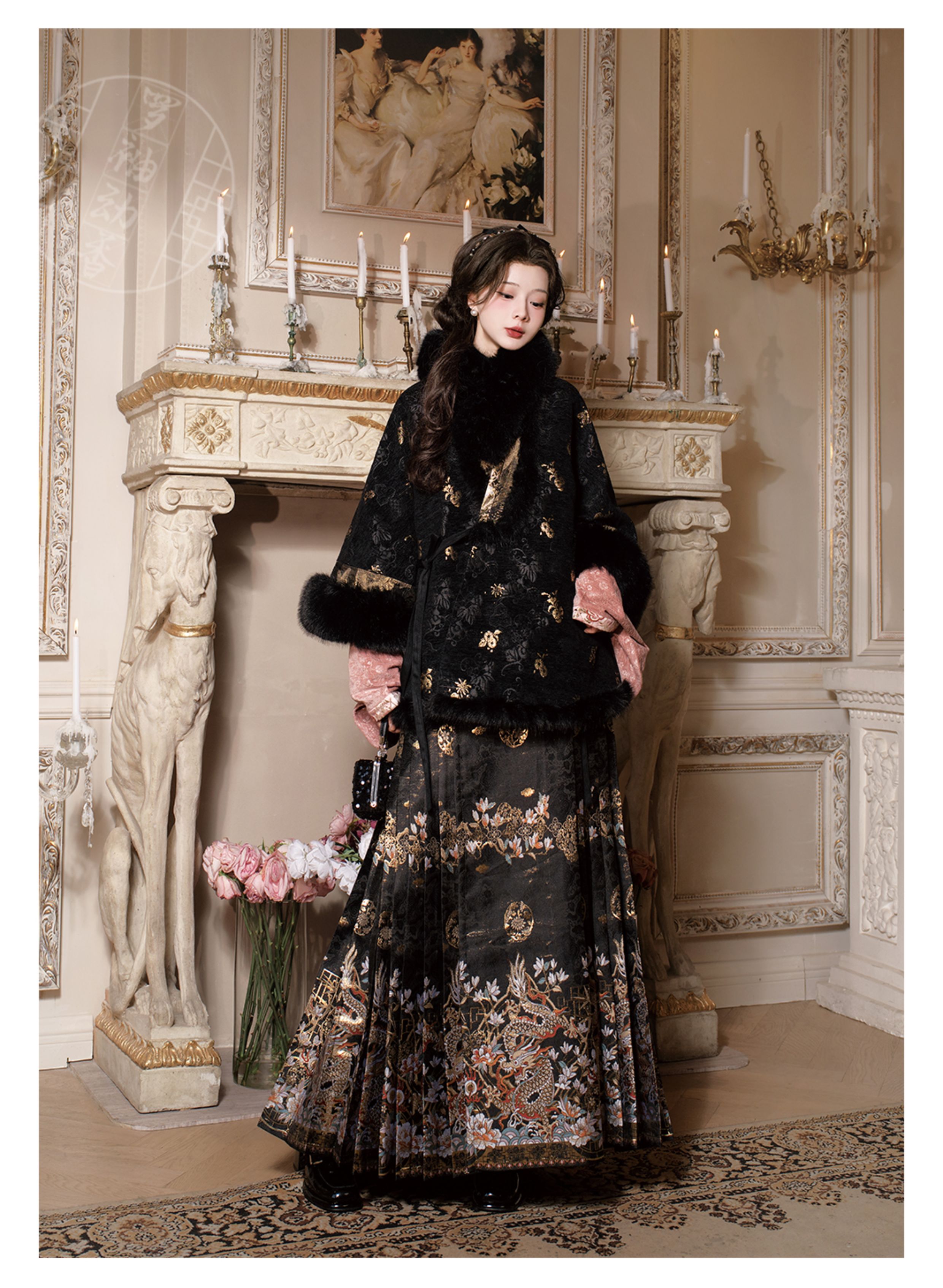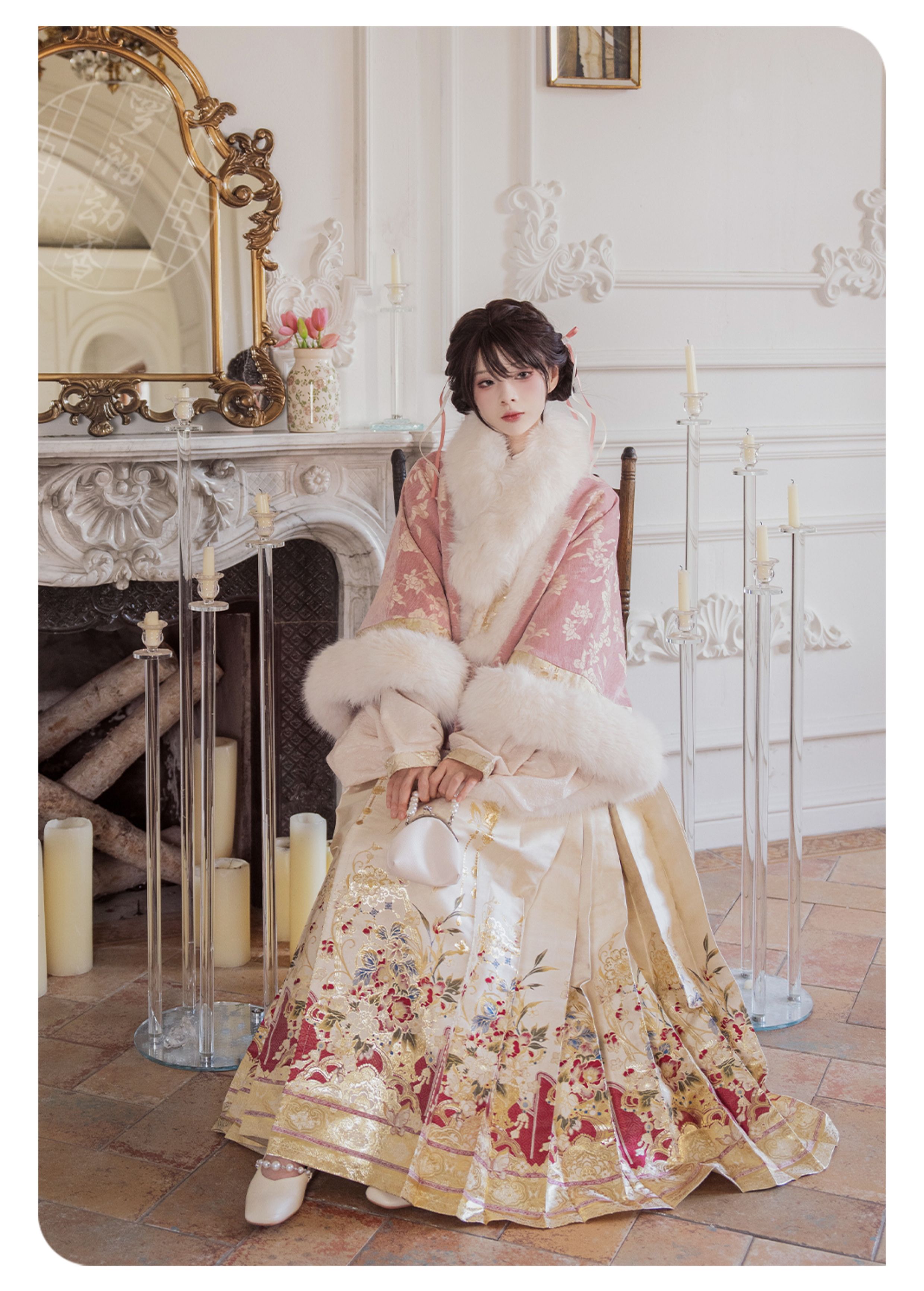 "Silk Road Reverie: Hanfu's Odyssey Through Ethnic Kaleidoscope", your fingers trace the Tang Dynasty roundel-patterned robe, suddenly discovering Sogdian ciphertext hidden in the sleeves—this is the original "Huxuan Dance Gown" An Lushan presented to Yang Guifei, the Persian craftsman whispers, "The lotus paste in this mooncake hides a Sogdian map... Follow the cumin-scented threads." When your gold-sprinkled silk shawl touches the artist's yak-hair brush, Tibetan script from the "Tubo Alliance Stele" emerges, "When Princess Wencheng's silk skirts met Tibetan wool, the Yarlung Tsangpo turned to liquid damask." Under UV light, hemline reveals Guge Kingdom mandala paintings. A Khotanese muralist tugs your sash, "Your 'lion motif' is actually our 'pomegranate dance pattern'!" Hanfu's jia xie resist-dyeing shares roots with Uyghur abrabandi tie-dye. A saukele headdress artisan transforms your bronze belt into modular instruments, left hook holding a Mongolian tovshuur lute, right loop carrying a Tajik eagle-bone flute, centerpiece displaying Xianbei gilded horse ornament, metal components auto-playing Kuchean-Twelve Muqam fusion under full moon. Under grapevines, a Ningxia embroiderer gasps at your "mountain-wave" pattern, "These 'peaks' mirror Helan Mountains, the 'surges' recreate Yellow River eddies!" Pleats woven with Tangut "Pearl in Palm" fragments become scannable with phones. As the Kyrgyz shaman's drum echoes, your composite-flower motifs morph into Yi solar calendar constellations, Khitan death mask filigree, Jurchen sea-eagle feather iridescence, unbuttoning the collar reveals Genghis Khan's multilingual travel permit. QR codes reveal 22 ethnic groups' textile DNA, body heat releases cinnamon/saffron scent capsules, sleeves extend into Mongolian wrestling sashes, each label includes Yi shaman-blessed silver plaque, Zhuang bronze drum soundwave QR, Evenki reindeer tendon thread sample. The capsule collection features Qinghai yak-down woven into Tang transparent-back gauze lined with Yangbajing geothermal film, Xianbei saddle-shaped girdle detaching into Kazakh dombra, Li barkcloth combined with Minnan mermaid silk revealing Zheng He's nautical charts when wet—"This isn't clothing—it's a UNESCO site you can wear to brunch." The cultural codex spans Dai palm-leaf sutra patterns thermo-chromically displaying Water Festival blessings, She mountain songs powering LEDs through friction, Hezhe fish-skin seams GPS-tagging Amur fishing seasons, inviting deeper exploration of Qiang watchtower stone patterns or Daur hockey elements fused with Tang polo robes.