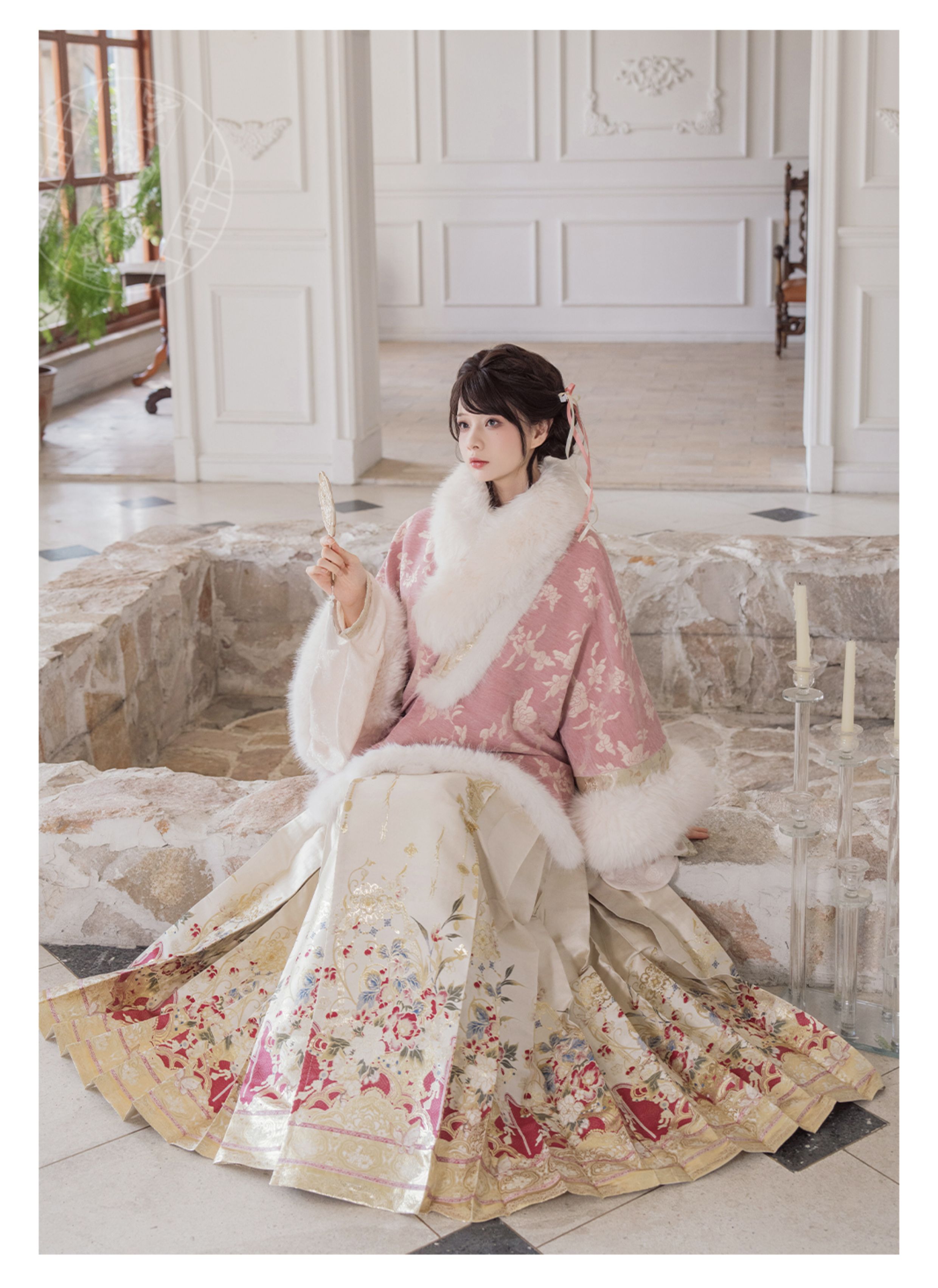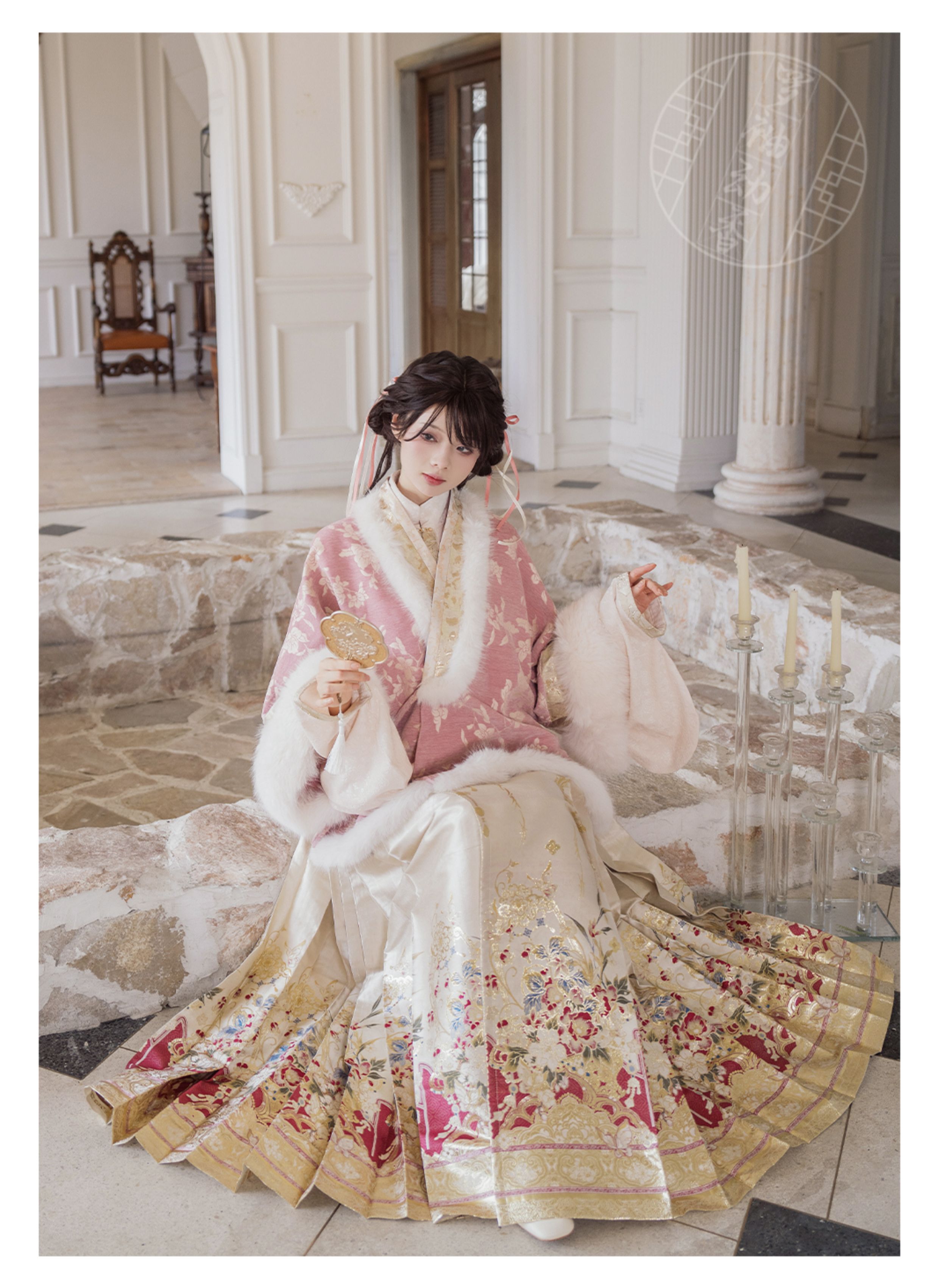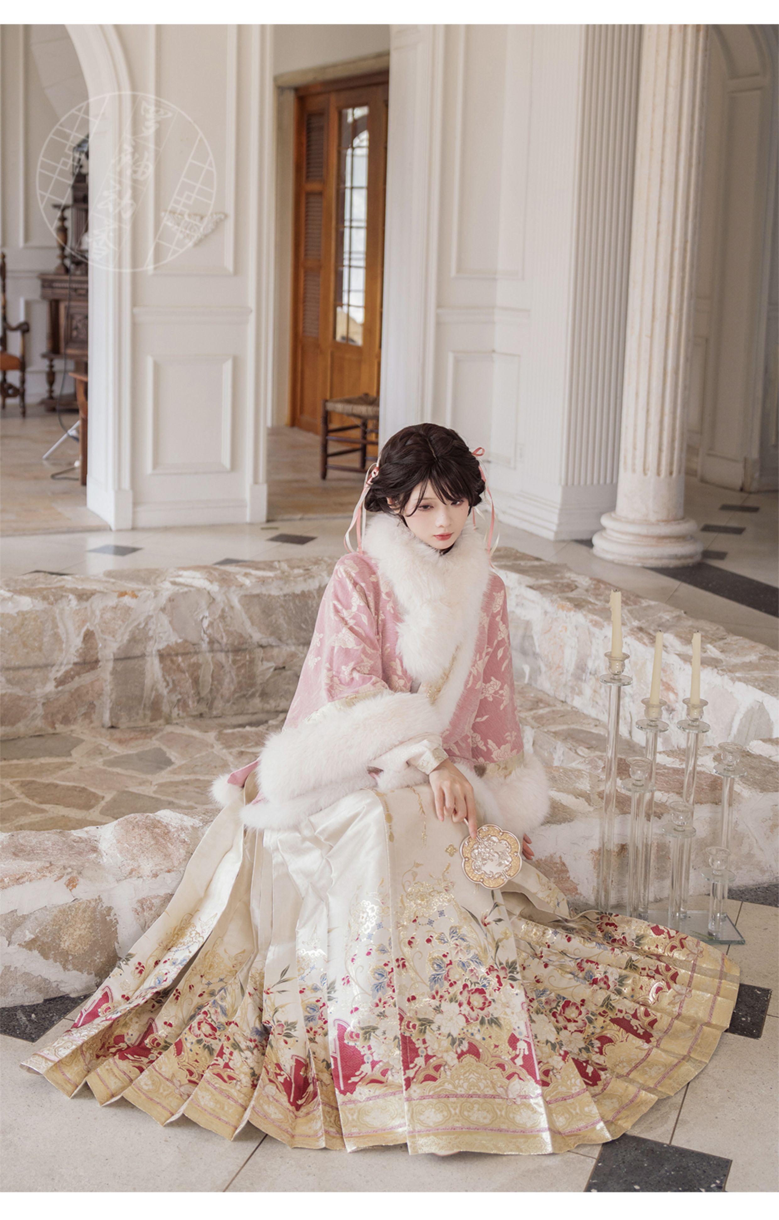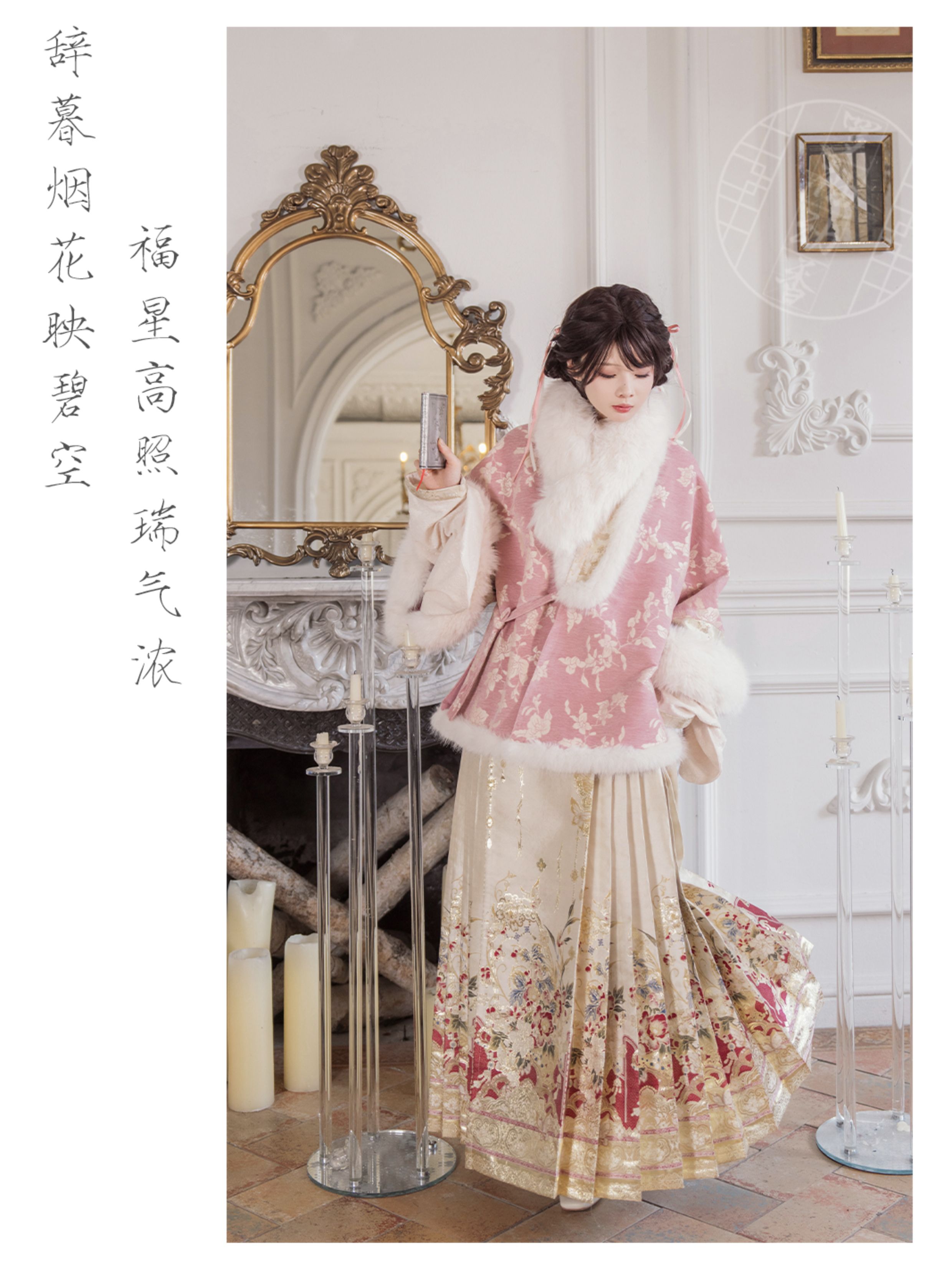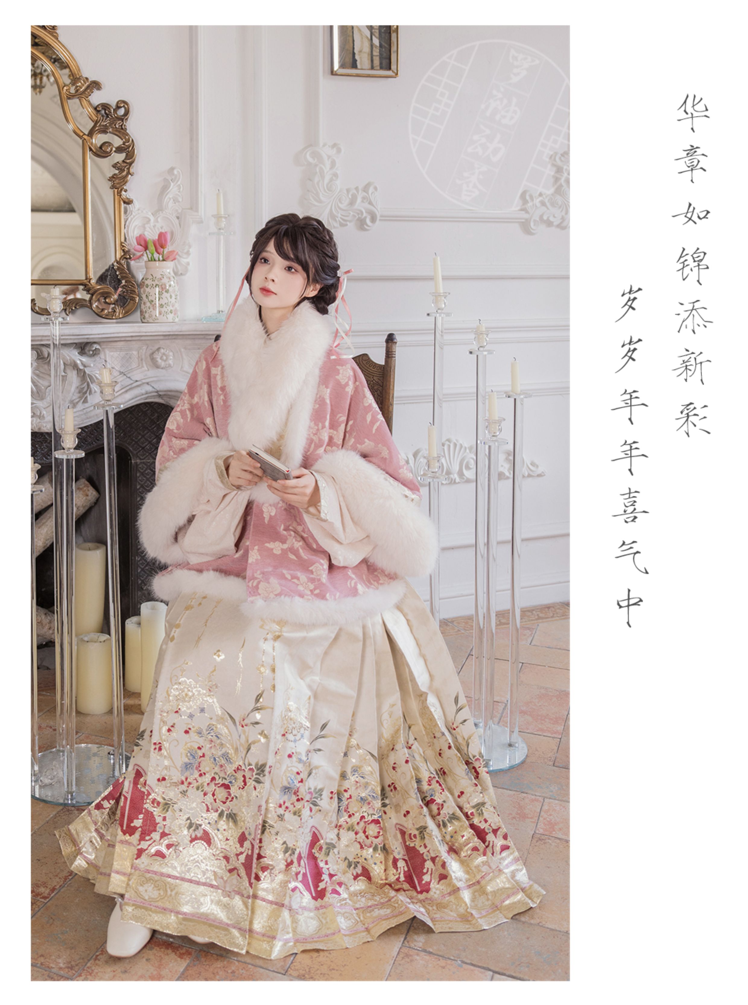 "Silk Road Reverie: Hanfu's Odyssey Through Ethnic Kaleidoscope", your fingers trace the Tang Dynasty roundel-patterned robe, suddenly discovering Sogdian ciphertext hidden in the sleeves—this is the original "Huxuan Dance Gown" An Lushan presented to Yang Guifei, the Persian craftsman whispers, "The lotus paste in this mooncake hides a Sogdian map... Follow the cumin-scented threads." When your gold-sprinkled silk shawl touches the artist's yak-hair brush, Tibetan script from the "Tubo Alliance Stele" emerges, "When Princess Wencheng's silk skirts met Tibetan wool, the Yarlung Tsangpo turned to liquid damask." Under UV light, hemline reveals Guge Kingdom mandala paintings. A Khotanese muralist tugs your sash, "Your 'lion motif' is actually our 'pomegranate dance pattern'!" Hanfu's jia xie resist-dyeing shares roots with Uyghur abrabandi tie-dye. A saukele headdress artisan transforms your bronze belt into modular instruments, left hook holding a Mongolian tovshuur lute, right loop carrying a Tajik eagle-bone flute, centerpiece displaying Xianbei gilded horse ornament, metal components auto-playing Kuchean-Twelve Muqam fusion under full moon. Under grapevines, a Ningxia embroiderer gasps at your "mountain-wave" pattern, "These 'peaks' mirror Helan Mountains, the 'surges' recreate Yellow River eddies!" Pleats woven with Tangut "Pearl in Palm" fragments become scannable with phones. As the Kyrgyz shaman's drum echoes, your composite-flower motifs morph into Yi solar calendar constellations, Khitan death mask filigree, Jurchen sea-eagle feather iridescence, unbuttoning the collar reveals Genghis Khan's multilingual travel permit. QR codes reveal 22 ethnic groups' textile DNA, body heat releases cinnamon/saffron scent capsules, sleeves extend into Mongolian wrestling sashes, each label includes Yi shaman-blessed silver plaque, Zhuang bronze drum soundwave QR, Evenki reindeer tendon thread sample. The capsule collection features Qinghai yak-down woven into Tang transparent-back gauze lined with Yangbajing geothermal film, Xianbei saddle-shaped girdle detaching into Kazakh dombra, Li barkcloth combined with Minnan mermaid silk revealing Zheng He's nautical charts when wet—"This isn't clothing—it's a UNESCO site you can wear to brunch." The cultural codex spans Dai palm-leaf sutra patterns thermo-chromically displaying Water Festival blessings, She mountain songs powering LEDs through friction, Hezhe fish-skin seams GPS-tagging Amur fishing seasons, inviting deeper exploration of Qiang watchtower stone patterns or Daur hockey elements fused with Tang polo robes.