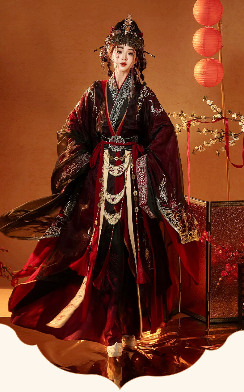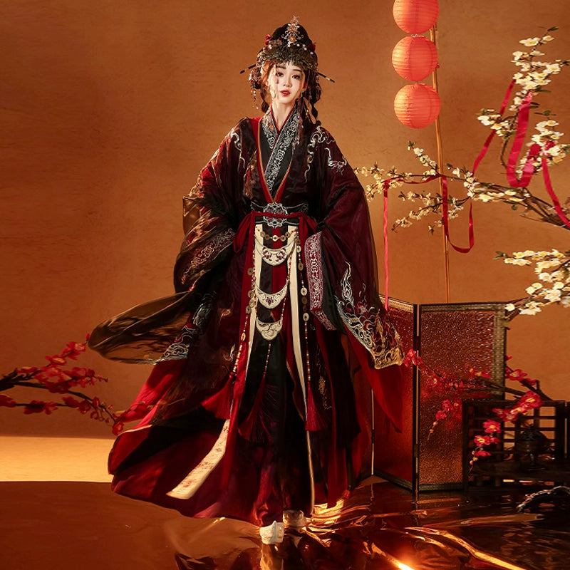 "Silk Road Reverie: Hanfu's Odyssey Through Ethnic Kaleidoscope", your fingers trace the Tang Dynasty roundel-patterned robe, suddenly discovering Sogdian ciphertext hidden in the sleeves—this is the original "Huxuan Dance Gown" An Lushan presented to Yang Guifei, the Persian craftsman whispers, "The lotus paste in this mooncake hides a Sogdian map... Follow the cumin-scented threads." When your gold-sprinkled silk shawl touches the artist's yak-hair brush, Tibetan script from the "Tubo Alliance Stele" emerges, "When Princess Wencheng's silk skirts met Tibetan wool, the Yarlung Tsangpo turned to liquid damask." Under UV light, hemline reveals Guge Kingdom mandala paintings. A Khotanese muralist tugs your sash, "Your 'lion motif' is actually our 'pomegranate dance pattern'!" Hanfu's jia xie resist-dyeing shares roots with Uyghur abrabandi tie-dye. A saukele headdress artisan transforms your bronze belt into modular instruments, left hook holding a Mongolian tovshuur lute, right loop carrying a Tajik eagle-bone flute, centerpiece displaying Xianbei gilded horse ornament, metal components auto-playing Kuchean-Twelve Muqam fusion under full moon. Under grapevines, a Ningxia embroiderer gasps at your "mountain-wave" pattern, "These 'peaks' mirror Helan Mountains, the 'surges' recreate Yellow River eddies!" Pleats woven with Tangut "Pearl in Palm" fragments become scannable with phones. As the Kyrgyz shaman's drum echoes, your composite-flower motifs morph into Yi solar calendar constellations, Khitan death mask filigree, Jurchen sea-eagle feather iridescence, unbuttoning the collar reveals Genghis Khan's multilingual travel permit. QR codes reveal 22 ethnic groups' textile DNA, body heat releases cinnamon/saffron scent capsules, sleeves extend into Mongolian wrestling sashes, each label includes Yi shaman-blessed silver plaque, Zhuang bronze drum soundwave QR, Evenki reindeer tendon thread sample. The capsule collection features Qinghai yak-down woven into Tang transparent-back gauze lined with Yangbajing geothermal film, Xianbei saddle-shaped girdle detaching into Kazakh dombra, Li barkcloth combined with Minnan mermaid silk revealing Zheng He's nautical charts when wet—"This isn't clothing—it's a UNESCO site you can wear to brunch." The cultural codex spans Dai palm-leaf sutra patterns thermo-chromically displaying Water Festival blessings, She mountain songs powering LEDs through friction, Hezhe fish-skin seams GPS-tagging Amur fishing seasons, inviting deeper exploration of Qiang watchtower stone patterns or Daur hockey elements fused with Tang polo robes.