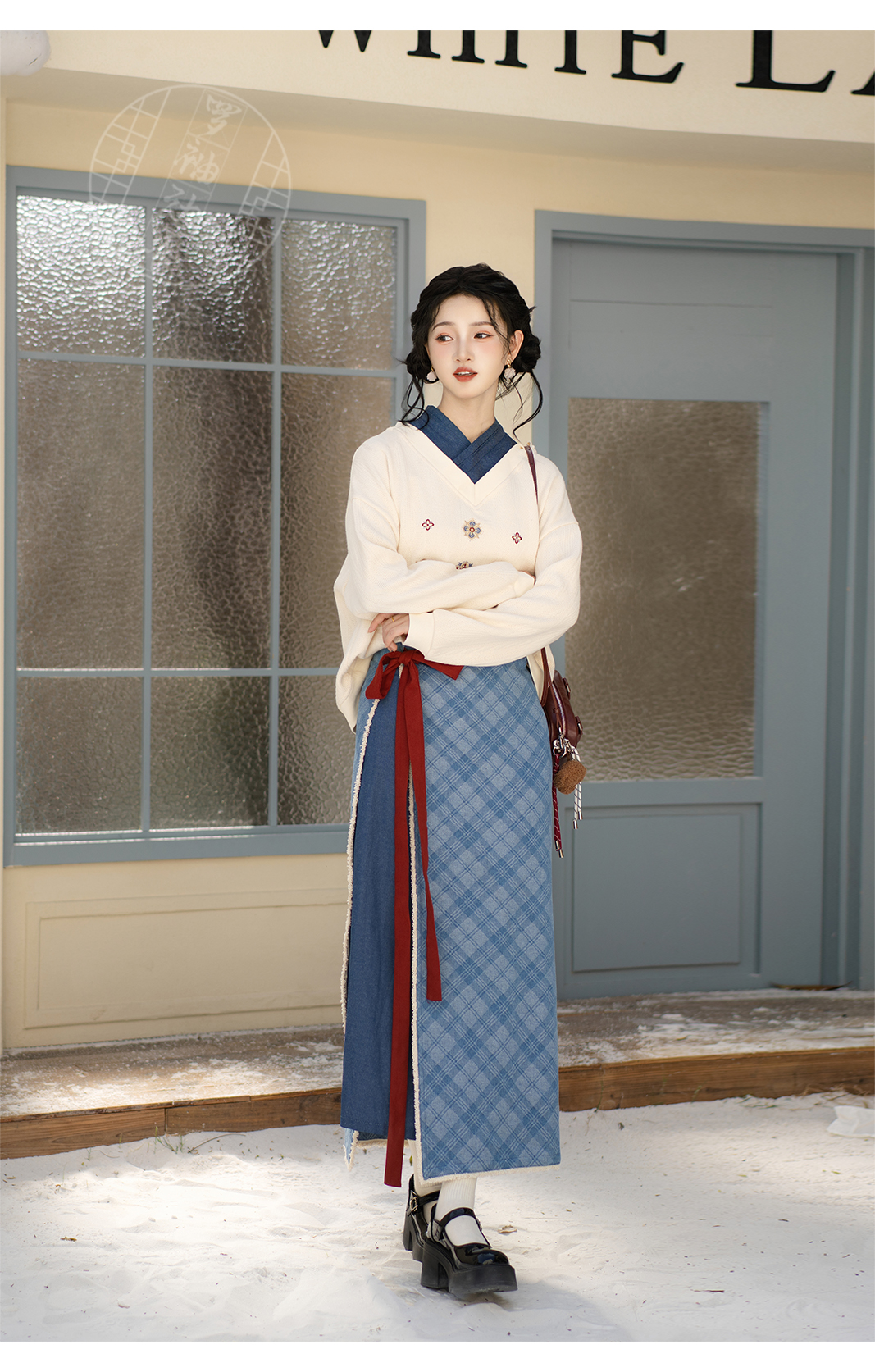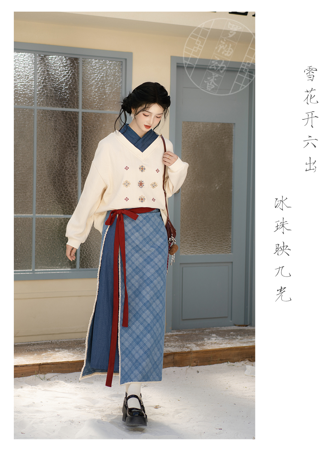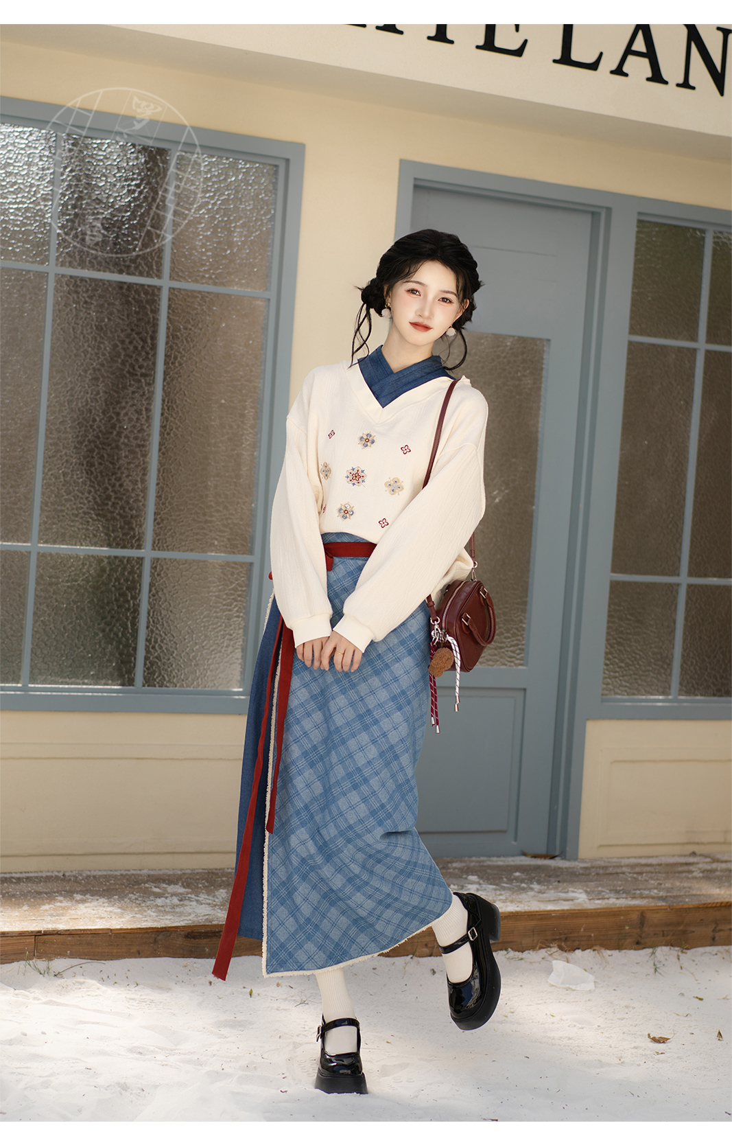 "Silk Road Reverie: Hanfu's Odyssey Through Ethnic Kaleidoscope", your fingers trace the Tang Dynasty roundel-patterned robe, suddenly discovering Sogdian ciphertext hidden in the sleeves—this is the original "Huxuan Dance Gown" An Lushan presented to Yang Guifei, the Persian craftsman whispers, "The lotus paste in this mooncake hides a Sogdian map... Follow the cumin-scented threads." When your gold-sprinkled silk shawl touches the artist's yak-hair brush, Tibetan script from the "Tubo Alliance Stele" emerges, "When Princess Wencheng's silk skirts met Tibetan wool, the Yarlung Tsangpo turned to liquid damask." Under UV light, hemline reveals Guge Kingdom mandala paintings. A Khotanese muralist tugs your sash, "Your 'lion motif' is actually our 'pomegranate dance pattern'!" Hanfu's jia xie resist-dyeing shares roots with Uyghur abrabandi tie-dye. A saukele headdress artisan transforms your bronze belt into modular instruments, left hook holding a Mongolian tovshuur lute, right loop carrying a Tajik eagle-bone flute, centerpiece displaying Xianbei gilded horse ornament, metal components auto-playing Kuchean-Twelve Muqam fusion under full moon. Under grapevines, a Ningxia embroiderer gasps at your "mountain-wave" pattern, "These 'peaks' mirror Helan Mountains, the 'surges' recreate Yellow River eddies!" Pleats woven with Tangut "Pearl in Palm" fragments become scannable with phones. As the Kyrgyz shaman's drum echoes, your composite-flower motifs morph into Yi solar calendar constellations, Khitan death mask filigree, Jurchen sea-eagle feather iridescence, unbuttoning the collar reveals Genghis Khan's multilingual travel permit. QR codes reveal 22 ethnic groups' textile DNA, body heat releases cinnamon/saffron scent capsules, sleeves extend into Mongolian wrestling sashes, each label includes Yi shaman-blessed silver plaque, Zhuang bronze drum soundwave QR, Evenki reindeer tendon thread sample. The capsule collection features Qinghai yak-down woven into Tang transparent-back gauze lined with Yangbajing geothermal film, Xianbei saddle-shaped girdle detaching into Kazakh dombra, Li barkcloth combined with Minnan mermaid silk revealing Zheng He's nautical charts when wet—"This isn't clothing—it's a UNESCO site you can wear to brunch." The cultural codex spans Dai palm-leaf sutra patterns thermo-chromically displaying Water Festival blessings, She mountain songs powering LEDs through friction, Hezhe fish-skin seams GPS-tagging Amur fishing seasons, inviting deeper exploration of Qiang watchtower stone patterns or Daur hockey elements fused with Tang polo robes.