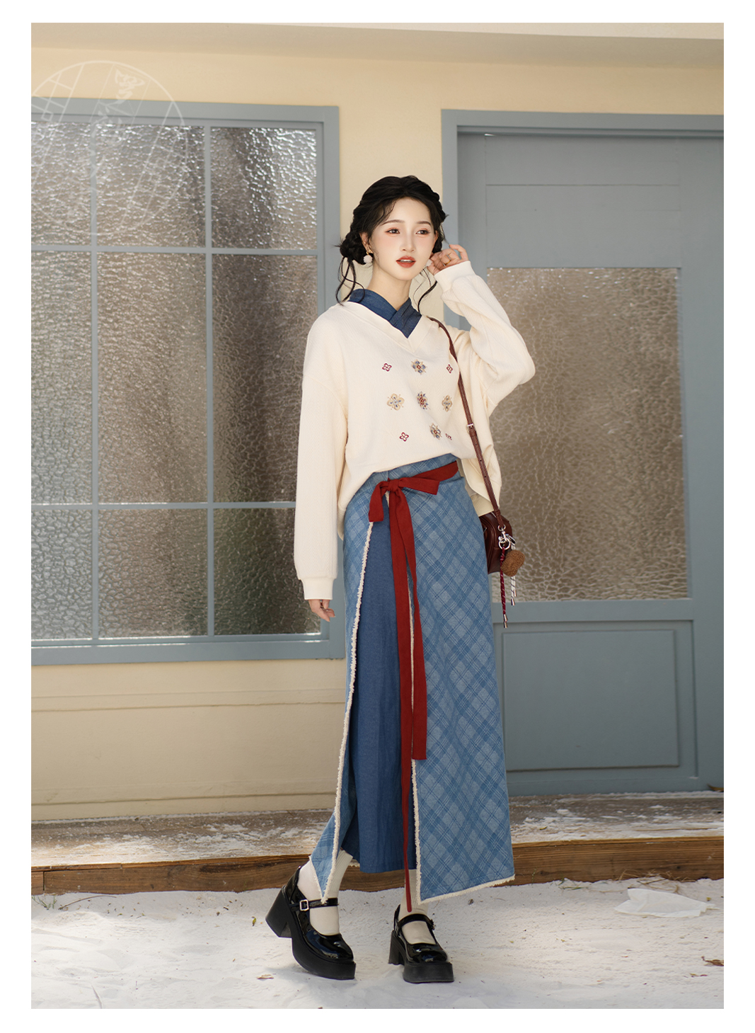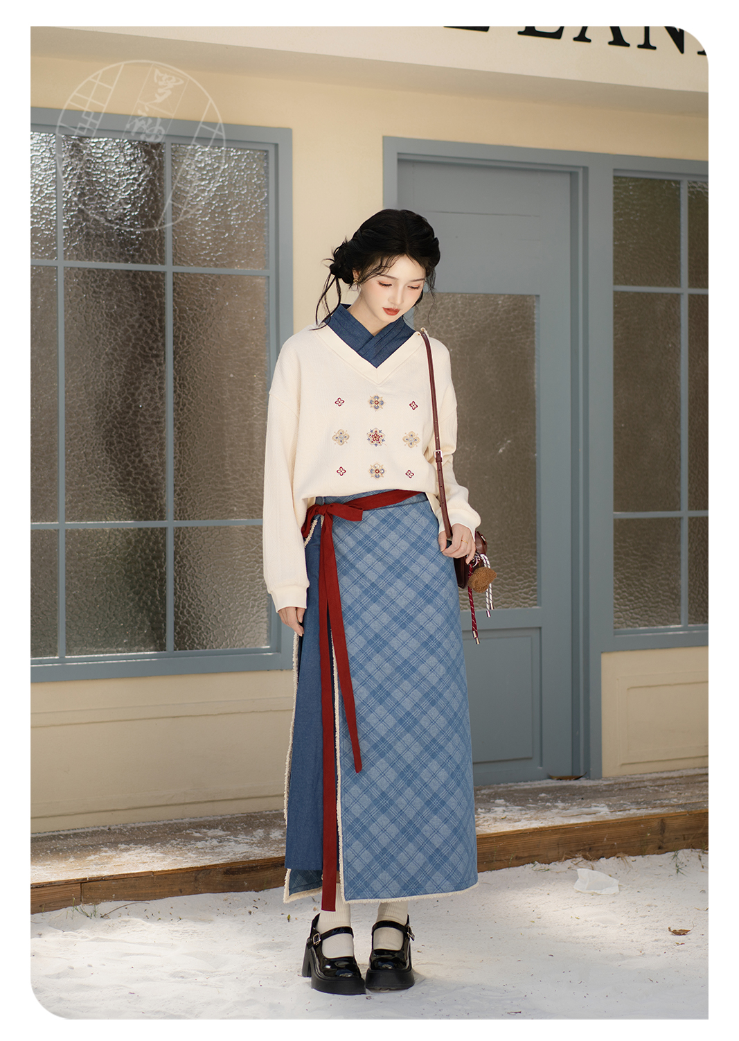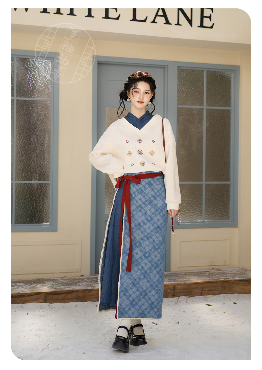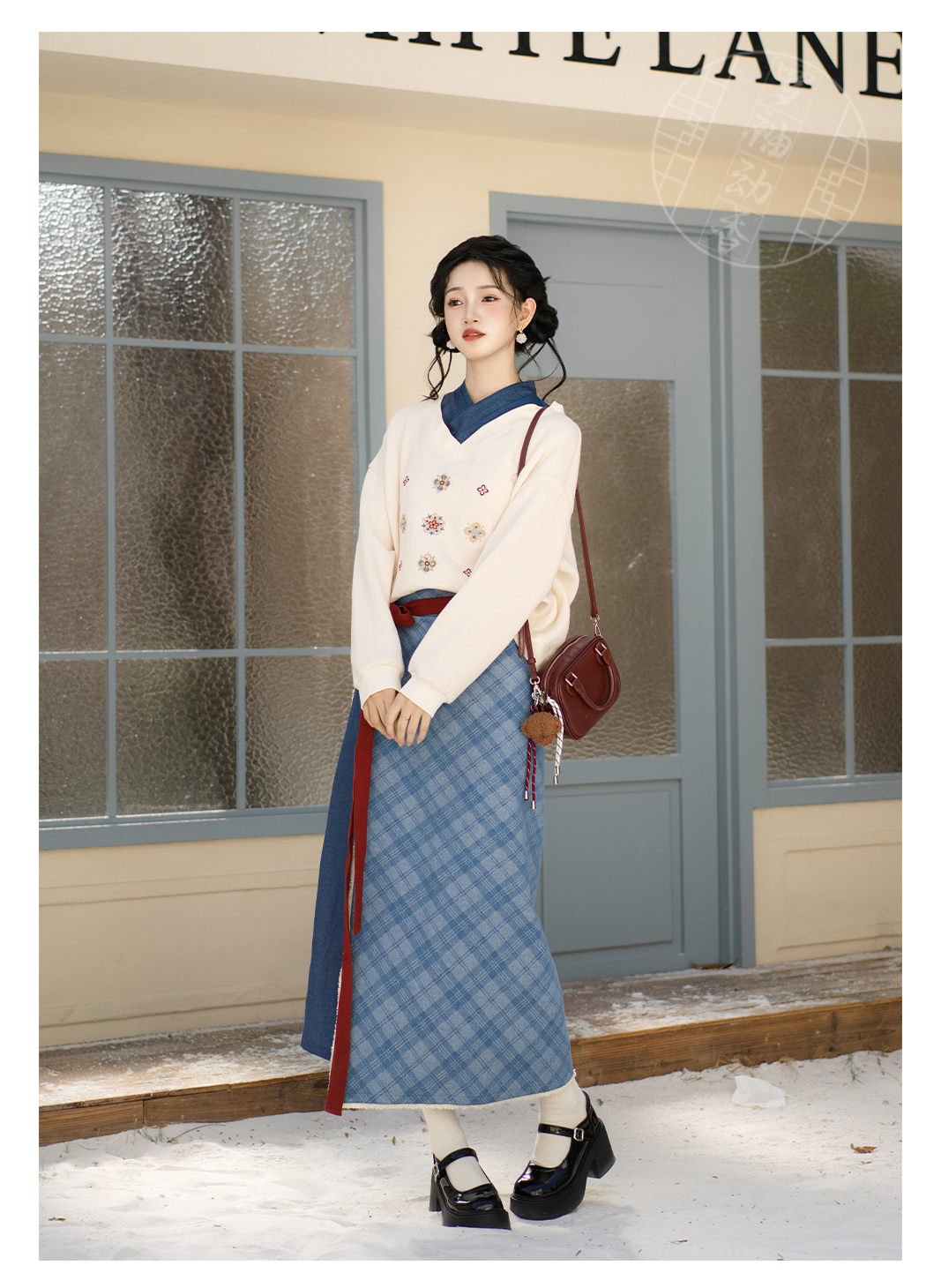 "Silk Road Reverie: Hanfu's Odyssey Through Ethnic Kaleidoscope", your fingers trace the Tang Dynasty roundel-patterned robe, suddenly discovering Sogdian ciphertext hidden in the sleeves—this is the original "Huxuan Dance Gown" An Lushan presented to Yang Guifei, the Persian craftsman whispers, "The lotus paste in this mooncake hides a Sogdian map... Follow the cumin-scented threads." When your gold-sprinkled silk shawl touches the artist's yak-hair brush, Tibetan script from the "Tubo Alliance Stele" emerges, "When Princess Wencheng's silk skirts met Tibetan wool, the Yarlung Tsangpo turned to liquid damask." Under UV light, hemline reveals Guge Kingdom mandala paintings. A Khotanese muralist tugs your sash, "Your 'lion motif' is actually our 'pomegranate dance pattern'!" Hanfu's jia xie resist-dyeing shares roots with Uyghur abrabandi tie-dye. A saukele headdress artisan transforms your bronze belt into modular instruments, left hook holding a Mongolian tovshuur lute, right loop carrying a Tajik eagle-bone flute, centerpiece displaying Xianbei gilded horse ornament, metal components auto-playing Kuchean-Twelve Muqam fusion under full moon. Under grapevines, a Ningxia embroiderer gasps at your "mountain-wave" pattern, "These 'peaks' mirror Helan Mountains, the 'surges' recreate Yellow River eddies!" Pleats woven with Tangut "Pearl in Palm" fragments become scannable with phones. As the Kyrgyz shaman's drum echoes, your composite-flower motifs morph into Yi solar calendar constellations, Khitan death mask filigree, Jurchen sea-eagle feather iridescence, unbuttoning the collar reveals Genghis Khan's multilingual travel permit. QR codes reveal 22 ethnic groups' textile DNA, body heat releases cinnamon/saffron scent capsules, sleeves extend into Mongolian wrestling sashes, each label includes Yi shaman-blessed silver plaque, Zhuang bronze drum soundwave QR, Evenki reindeer tendon thread sample. The capsule collection features Qinghai yak-down woven into Tang transparent-back gauze lined with Yangbajing geothermal film, Xianbei saddle-shaped girdle detaching into Kazakh dombra, Li barkcloth combined with Minnan mermaid silk revealing Zheng He's nautical charts when wet—"This isn't clothing—it's a UNESCO site you can wear to brunch." The cultural codex spans Dai palm-leaf sutra patterns thermo-chromically displaying Water Festival blessings, She mountain songs powering LEDs through friction, Hezhe fish-skin seams GPS-tagging Amur fishing seasons, inviting deeper exploration of Qiang watchtower stone patterns or Daur hockey elements fused with Tang polo robes.