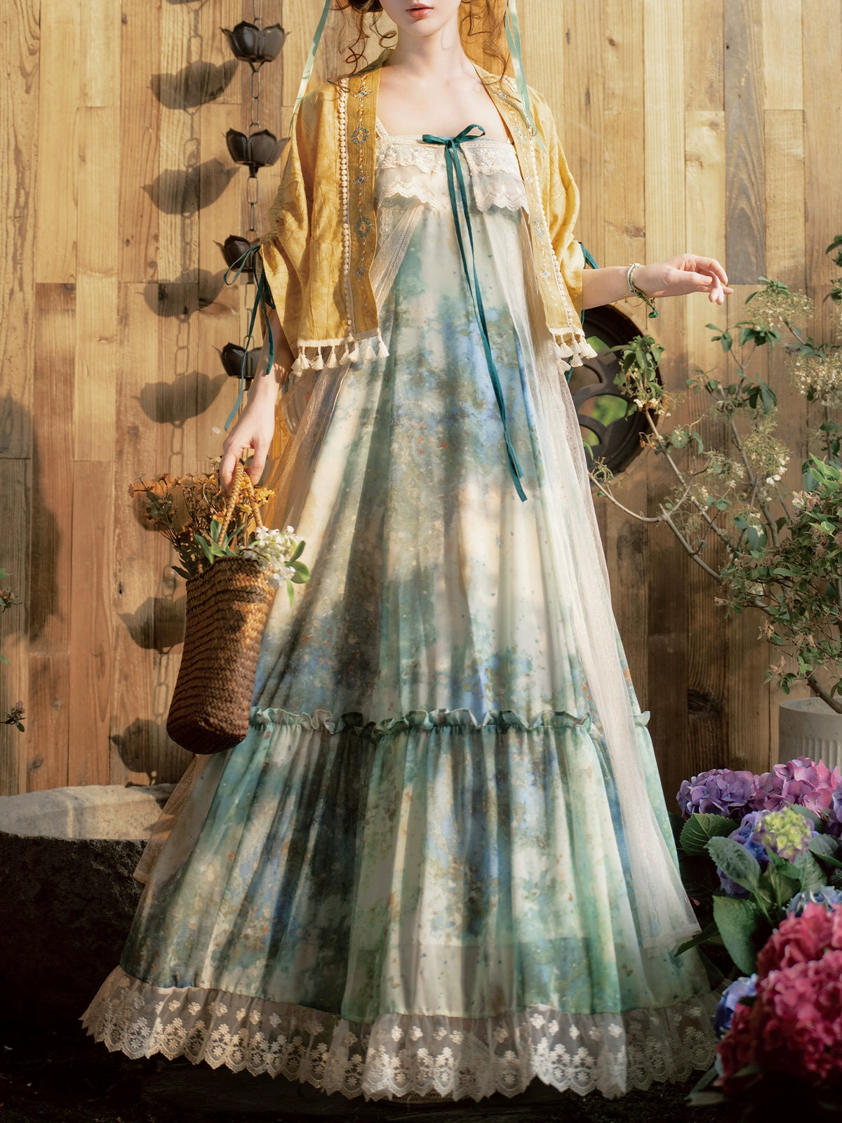 "Silk Road Reverie: Hanfu's Odyssey Through Ethnic Kaleidoscope", your fingers trace the Tang Dynasty roundel-patterned robe, suddenly discovering Sogdian ciphertext hidden in the sleeves—this is the original "Huxuan Dance Gown" An Lushan presented to Yang Guifei, the Persian craftsman whispers, "The lotus paste in this mooncake hides a Sogdian map... Follow the cumin-scented threads." When your gold-sprinkled silk shawl touches the artist's yak-hair brush, Tibetan script from the "Tubo Alliance Stele" emerges, "When Princess Wencheng's silk skirts met Tibetan wool, the Yarlung Tsangpo turned to liquid damask." Under UV light, hemline reveals Guge Kingdom mandala paintings. A Khotanese muralist tugs your sash, "Your 'lion motif' is actually our 'pomegranate dance pattern'!" Hanfu's jia xie resist-dyeing shares roots with Uyghur abrabandi tie-dye. A saukele headdress artisan transforms your bronze belt into modular instruments, left hook holding a Mongolian tovshuur lute, right loop carrying a Tajik eagle-bone flute, centerpiece displaying Xianbei gilded horse ornament, metal components auto-playing Kuchean-Twelve Muqam fusion under full moon. Under grapevines, a Ningxia embroiderer gasps at your "mountain-wave" pattern, "These 'peaks' mirror Helan Mountains, the 'surges' recreate Yellow River eddies!" Pleats woven with Tangut "Pearl in Palm" fragments become scannable with phones. As the Kyrgyz shaman's drum echoes, your composite-flower motifs morph into Yi solar calendar constellations, Khitan death mask filigree, Jurchen sea-eagle feather iridescence, unbuttoning the collar reveals Genghis Khan's multilingual travel permit. QR codes reveal 22 ethnic groups' textile DNA, body heat releases cinnamon/saffron scent capsules, sleeves extend into Mongolian wrestling sashes, each label includes Yi shaman-blessed silver plaque, Zhuang bronze drum soundwave QR, Evenki reindeer tendon thread sample. The capsule collection features Qinghai yak-down woven into Tang transparent-back gauze lined with Yangbajing geothermal film, Xianbei saddle-shaped girdle detaching into Kazakh dombra, Li barkcloth combined with Minnan mermaid silk revealing Zheng He's nautical charts when wet—"This isn't clothing—it's a UNESCO site you can wear to brunch." The cultural codex spans Dai palm-leaf sutra patterns thermo-chromically displaying Water Festival blessings, She mountain songs powering LEDs through friction, Hezhe fish-skin seams GPS-tagging Amur fishing seasons, inviting deeper exploration of Qiang watchtower stone patterns or Daur hockey elements fused with Tang polo robes.