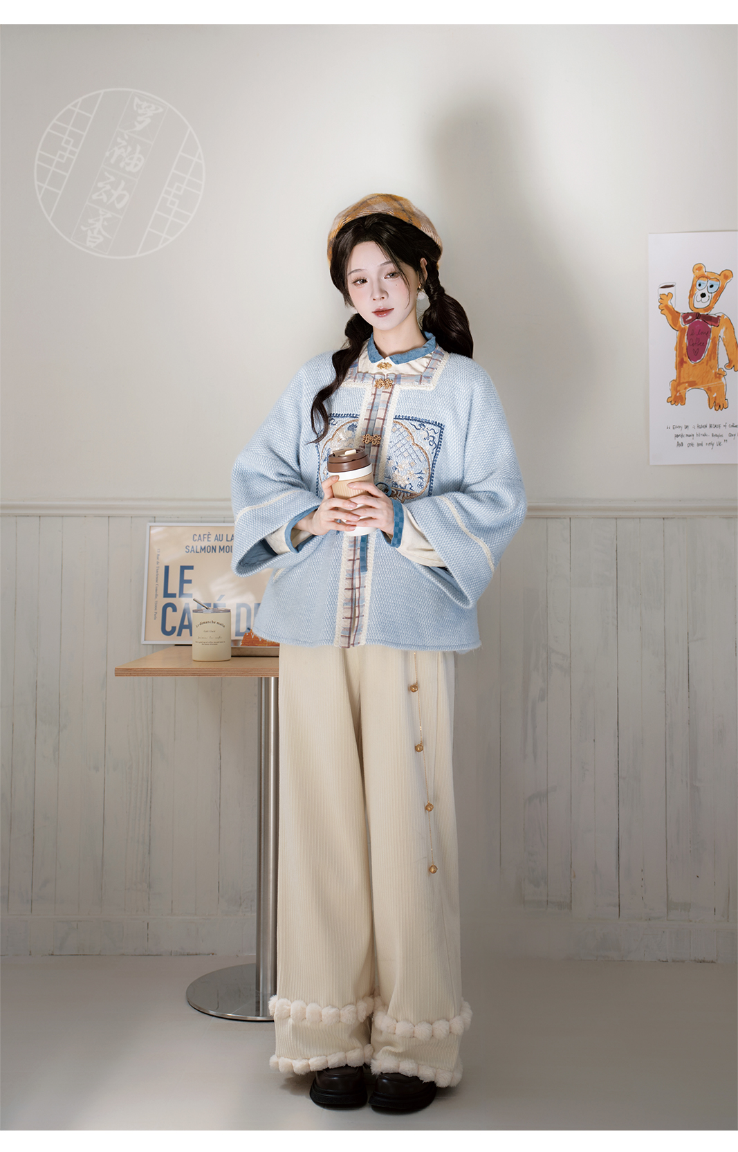 "Silk Road Reverie: Hanfu's Odyssey Through Ethnic Kaleidoscope", your fingers trace the Tang Dynasty roundel-patterned robe, suddenly discovering Sogdian ciphertext hidden in the sleeves—this is the original "Huxuan Dance Gown" An Lushan presented to Yang Guifei, the Persian craftsman whispers, "The lotus paste in this mooncake hides a Sogdian map... Follow the cumin-scented threads." When your gold-sprinkled silk shawl touches the artist's yak-hair brush, Tibetan script from the "Tubo Alliance Stele" emerges, "When Princess Wencheng's silk skirts met Tibetan wool, the Yarlung Tsangpo turned to liquid damask." Under UV light, hemline reveals Guge Kingdom mandala paintings. A Khotanese muralist tugs your sash, "Your 'lion motif' is actually our 'pomegranate dance pattern'!" Hanfu's jia xie resist-dyeing shares roots with Uyghur abrabandi tie-dye. A saukele headdress artisan transforms your bronze belt into modular instruments, left hook holding a Mongolian tovshuur lute, right loop carrying a Tajik eagle-bone flute, centerpiece displaying Xianbei gilded horse ornament, metal components auto-playing Kuchean-Twelve Muqam fusion under full moon. Under grapevines, a Ningxia embroiderer gasps at your "mountain-wave" pattern, "These 'peaks' mirror Helan Mountains, the 'surges' recreate Yellow River eddies!" Pleats woven with Tangut "Pearl in Palm" fragments become scannable with phones. As the Kyrgyz shaman's drum echoes, your composite-flower motifs morph into Yi solar calendar constellations, Khitan death mask filigree, Jurchen sea-eagle feather iridescence, unbuttoning the collar reveals Genghis Khan's multilingual travel permit. QR codes reveal 22 ethnic groups' textile DNA, body heat releases cinnamon/saffron scent capsules, sleeves extend into Mongolian wrestling sashes, each label includes Yi shaman-blessed silver plaque, Zhuang bronze drum soundwave QR, Evenki reindeer tendon thread sample. The capsule collection features Qinghai yak-down woven into Tang transparent-back gauze lined with Yangbajing geothermal film, Xianbei saddle-shaped girdle detaching into Kazakh dombra, Li barkcloth combined with Minnan mermaid silk revealing Zheng He's nautical charts when wet—"This isn't clothing—it's a UNESCO site you can wear to brunch." The cultural codex spans Dai palm-leaf sutra patterns thermo-chromically displaying Water Festival blessings, She mountain songs powering LEDs through friction, Hezhe fish-skin seams GPS-tagging Amur fishing seasons, inviting deeper exploration of Qiang watchtower stone patterns or Daur hockey elements fused with Tang polo robes.