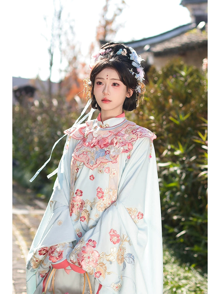 Hanfu is a handmade product, not a mass-produced product in a garment factory. In theory, there are no two completely identical Hanfu. The product details page only shows the shape of this Hanfu, especially the embroidery on the Hanfu. It is impossible for tailors to make it 100% the same. Consumers who cannot accept this please do not buy it
