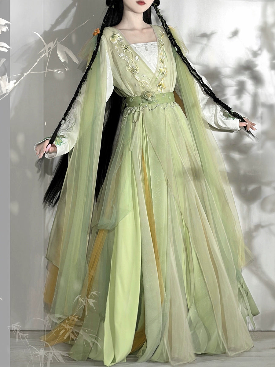Hanfu is a handmade product, not a mass-produced product in a garment factory. In theory, there are no two completely identical Hanfu. The product details page only shows the shape of this Hanfu, especially the embroidery on the Hanfu. It is impossible for tailors to make it 100% the same. Consumers who cannot accept this please do not buy it