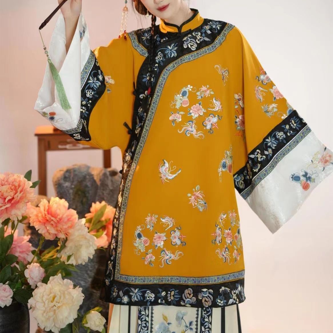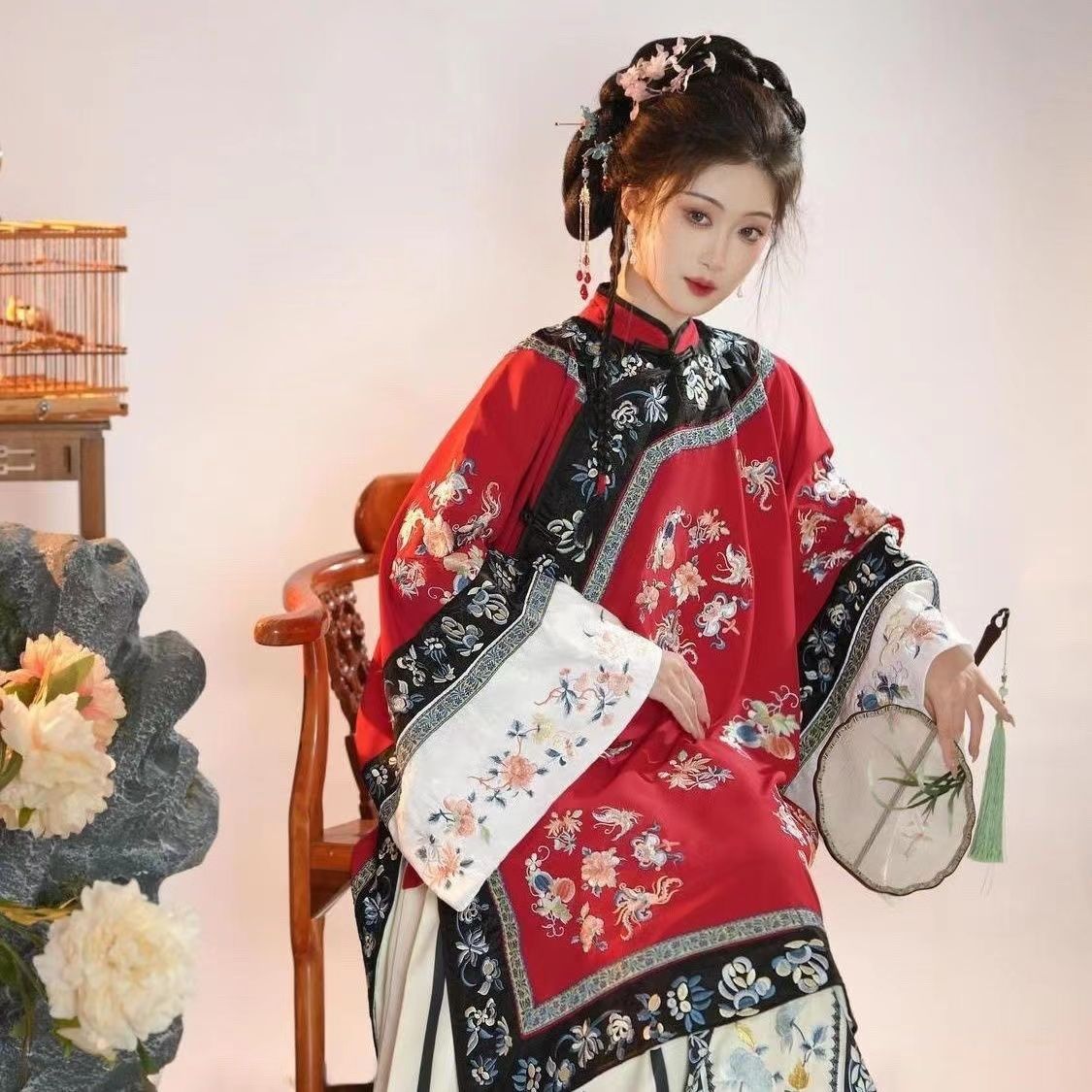 The Dress Of Han Women In The Qing Dynasty Has Been Integrated With Modern Aesthetics And The Convenience Of Daily Wear, But It Still Maintains Its Unique Traditional Charm. The Clothing Of Han Women In The Qing Dynasty Is Not Only Suitable For Various Traditional Cultural Activities, Exhibitions And Other Occasions, But Can Also Be Used As A Choice For Daily Wear. The Clothing Of Han Women In The Qing Dynasty Has A Wide Version, A Top And A Skirt, And Exquisite Embroidery. This Kind Of Clothing Combines The Elements Of Ming Dynasty Clothing, Such As Stand-Up Collars And Slanting Lapels, And Also Has The Characteristics Of Qing Dynasty Clothing, Such As Horse-Faced Skirts.